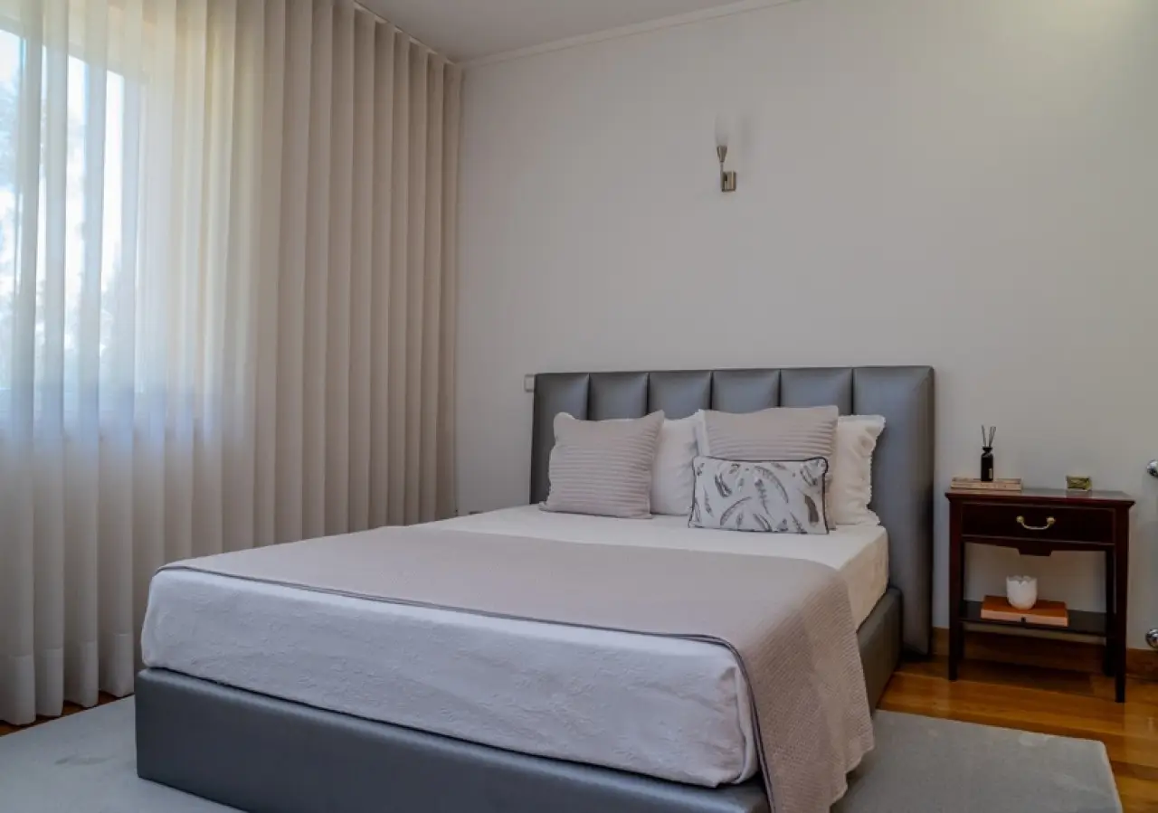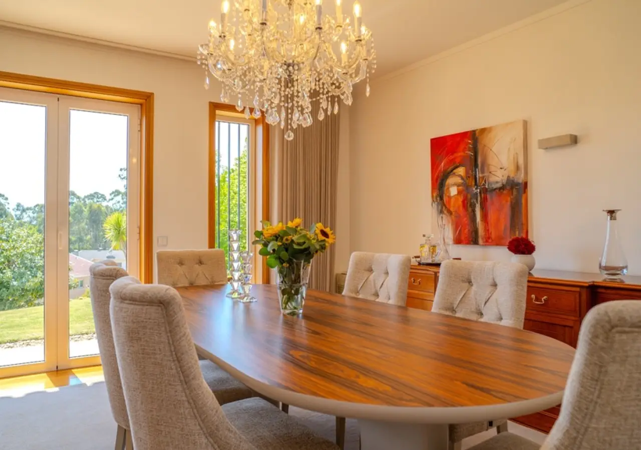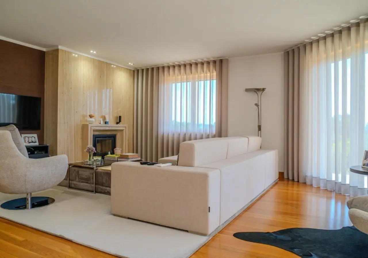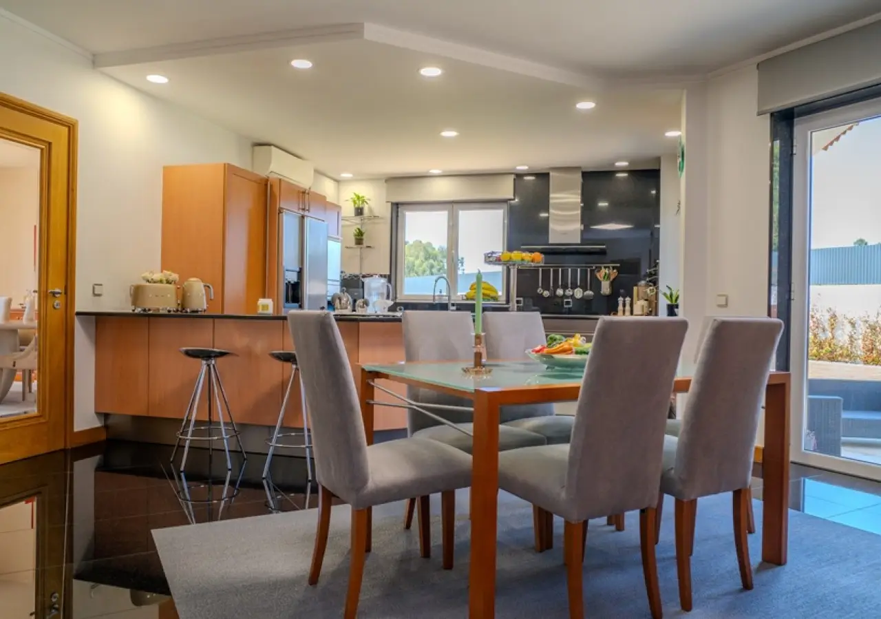 Excellent detached villa set in a plot of around 1,650 m², for sale in Santa Maria da Feira. This is a true haven for those seeking quality of life and exclusivity, with large spaces bathed in natural light, in which each room has been designed to provide well-being and functionality. The private area of this property includes four magnificent suites, all with excellent finishes, including marble in all the bathrooms, wooden floors and generous areas, central heating and air conditioning, providing comfort and privacy. But what really sets this property apart are its social areas: on the first floor, the living room and dining room, extremely comfortable and bright, have a cozy and elegant atmosphere; the kitchen, in turn, is modern and fully equipped, combining design and practicality, ideal for family gatherings or friends. In the basement there is a distinctive space with a bar, games area, wine cellar, TV room and gym, perfect for entertaining or simply relaxing in the comfort of home, plus a large laundry room and a toilet. And outside, the setting is simply stunning: a vast, meticulously tended garden surrounds the house, creating an atmosphere of tranquillity and beauty, with an automatic irrigation system. There is also a magnificent swimming pool with a covered lounge area, equipped with a kitchen and a guest toilet, ideal for enjoying sunny days in total privacy. The garage with capacity for three cars ensures day-to-day convenience. All this in a villa that is in excellent condition and where top quality materials and finishes have been used, reflecting exemplary care in every detail. About 25 minutes from Porto. CHARACTERISTICS: Plot Area: 1 650 m2 | 17 760 sq ft Deployment Area: 255 m2 | 2 745 sq ft Building Area: 530 m2 | 5 702 sq ft Bedrooms: 4 Bathrooms: 6 Garage: 3 Energy efficiency: B- FEATURES: Central heating; Air conditioning; Marble in bathrooms; Fireplace; Swimming pool.