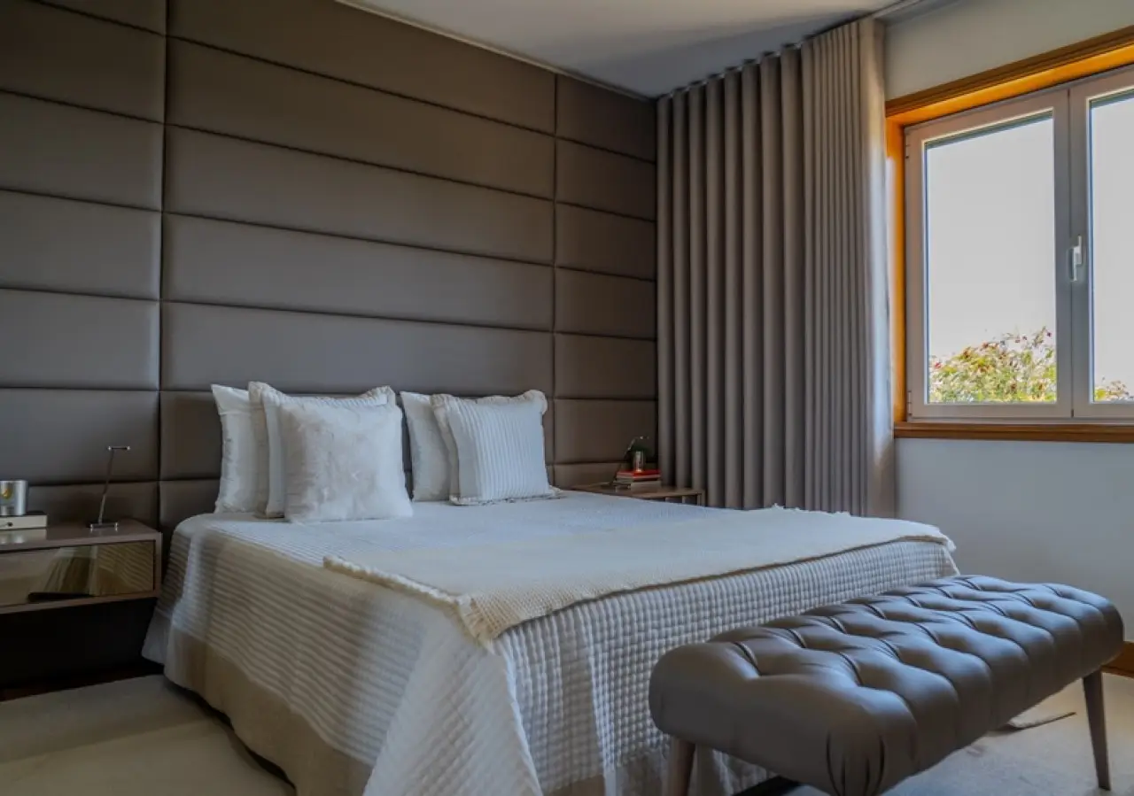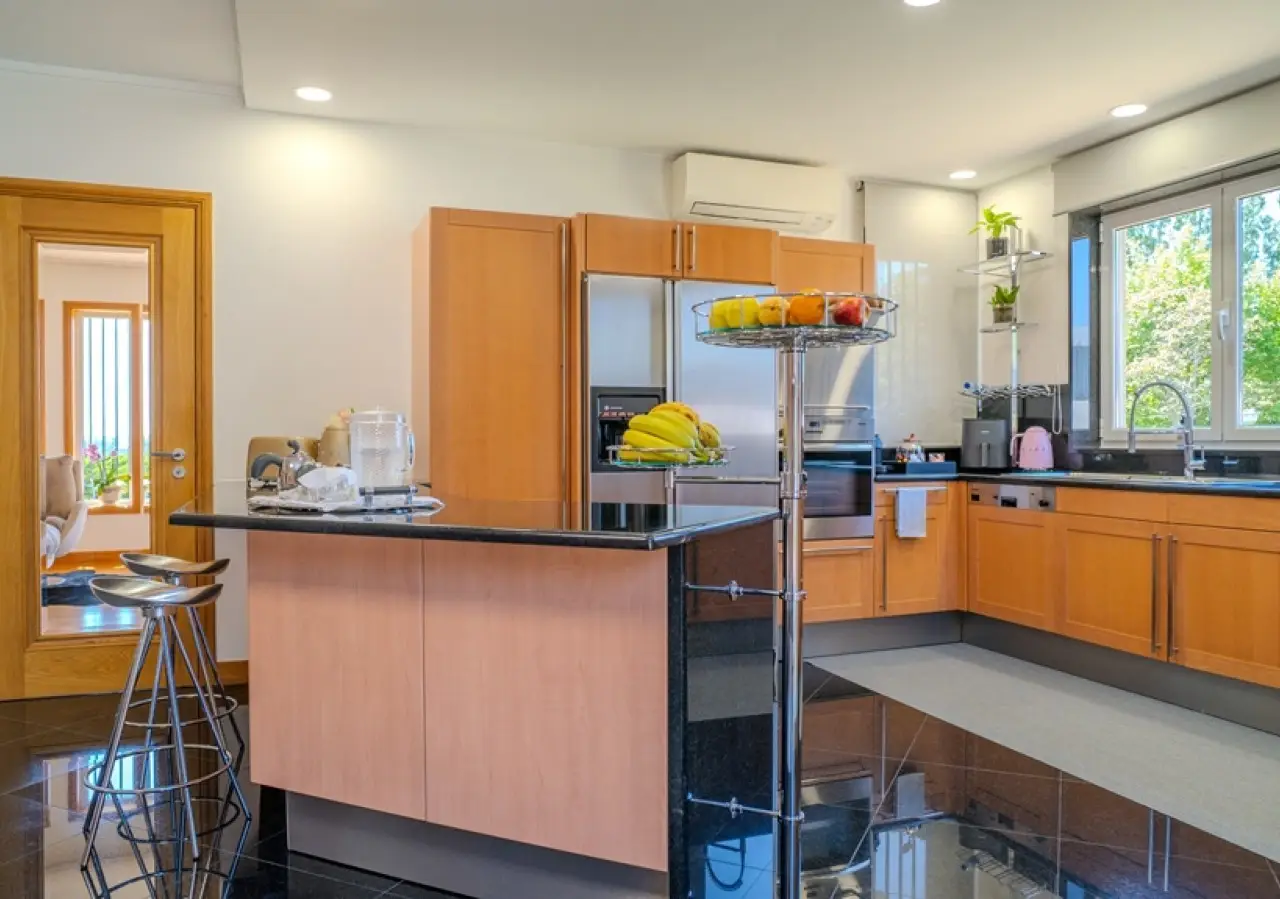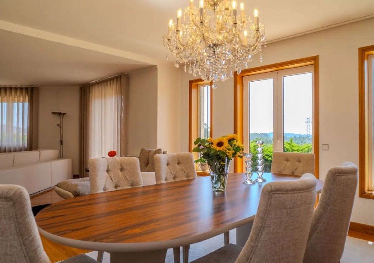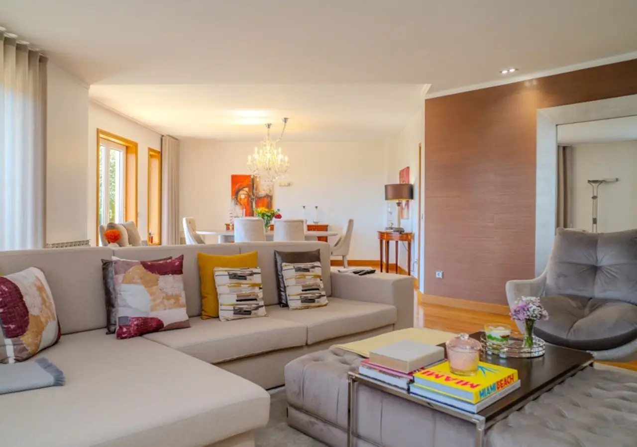 Excellent detached villa set in a plot of around 1,650 m², for sale in Santa Maria da Feira. This is a true haven for those seeking quality of life and exclusivity, with large spaces bathed in natural light, in which each room has been designed to provide well-being and functionality. The private area of this property includes four magnificent suites, all with excellent finishes, including marble in all the bathrooms, wooden floors and generous areas, central heating and air conditioning, providing comfort and privacy. But what really sets this property apart are its social areas: on the first floor, the living room and dining room, extremely comfortable and bright, have a cozy and elegant atmosphere; the kitchen, in turn, is modern and fully equipped, combining design and practicality, ideal for family gatherings or friends. In the basement there is a distinctive space with a bar, games area, wine cellar, TV room and gym, perfect for entertaining or simply relaxing in the comfort of home, plus a large laundry room and a toilet. And outside, the setting is simply stunning: a vast, meticulously tended garden surrounds the house, creating an atmosphere of tranquillity and beauty, with an automatic irrigation system. There is also a magnificent swimming pool with a covered lounge area, equipped with a kitchen and a guest toilet, ideal for enjoying sunny days in total privacy. The garage with capacity for three cars ensures day-to-day convenience. All this in a villa that is in excellent condition and where top quality materials and finishes have been used, reflecting exemplary care in every detail. About 25 minutes from Porto. CHARACTERISTICS: Plot Area: 1 650 m2 | 17 760 sq ft Deployment Area: 255 m2 | 2 745 sq ft Building Area: 530 m2 | 5 702 sq ft Bedrooms: 4 Bathrooms: 6 Garage: 3 Energy efficiency: B- FEATURES: Central heating; Air conditioning; Marble in bathrooms; Fireplace; Swimming pool.