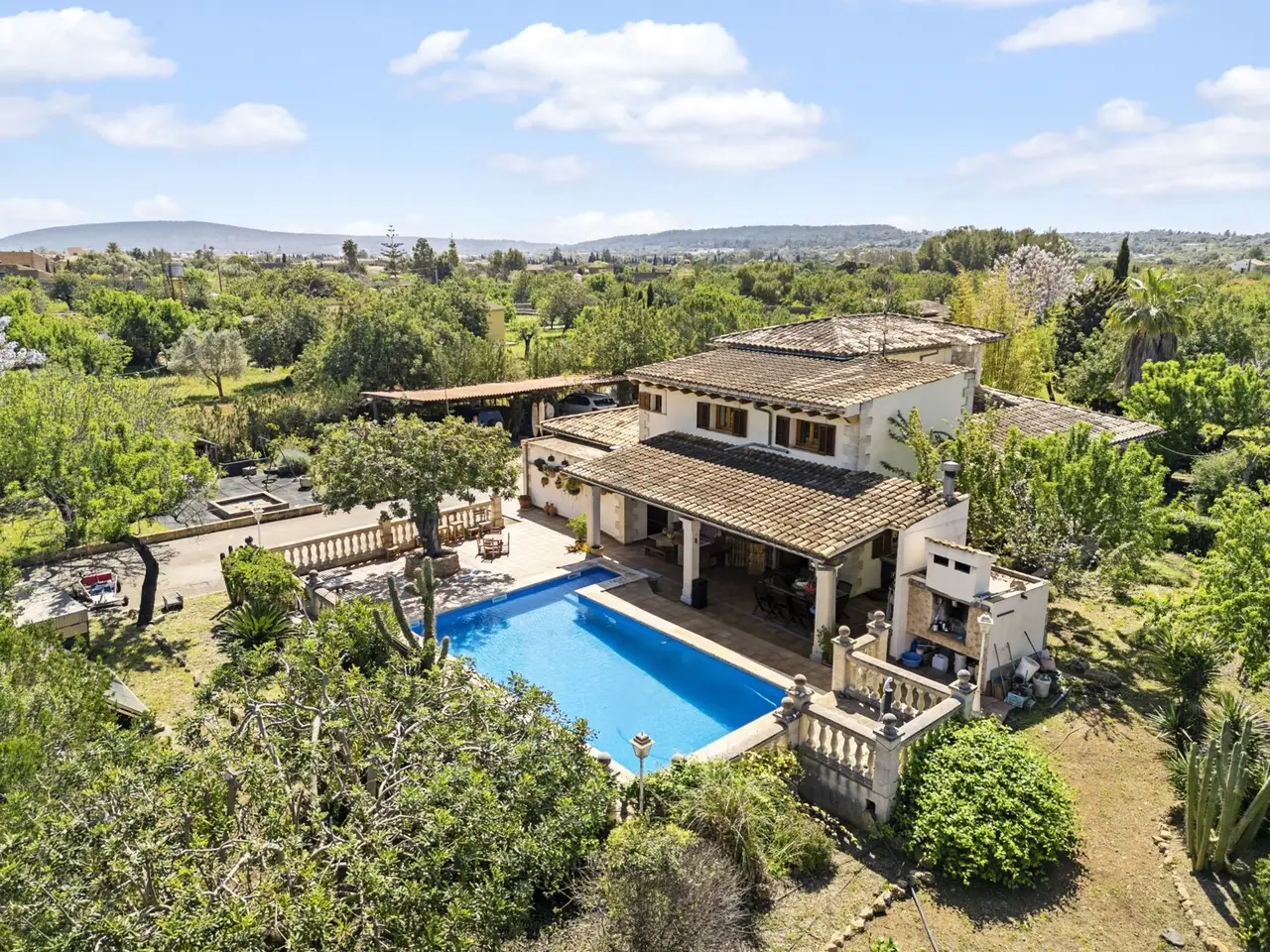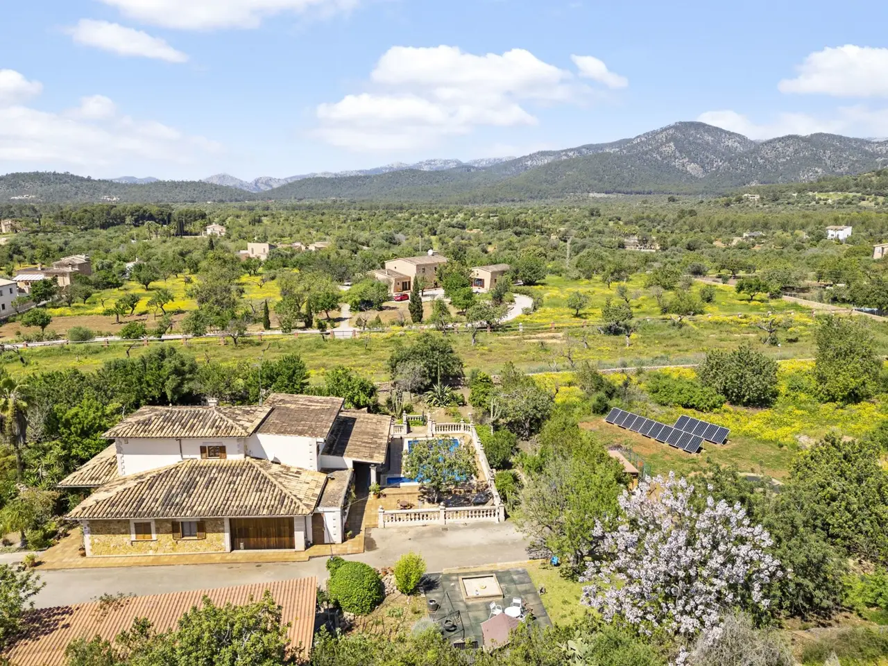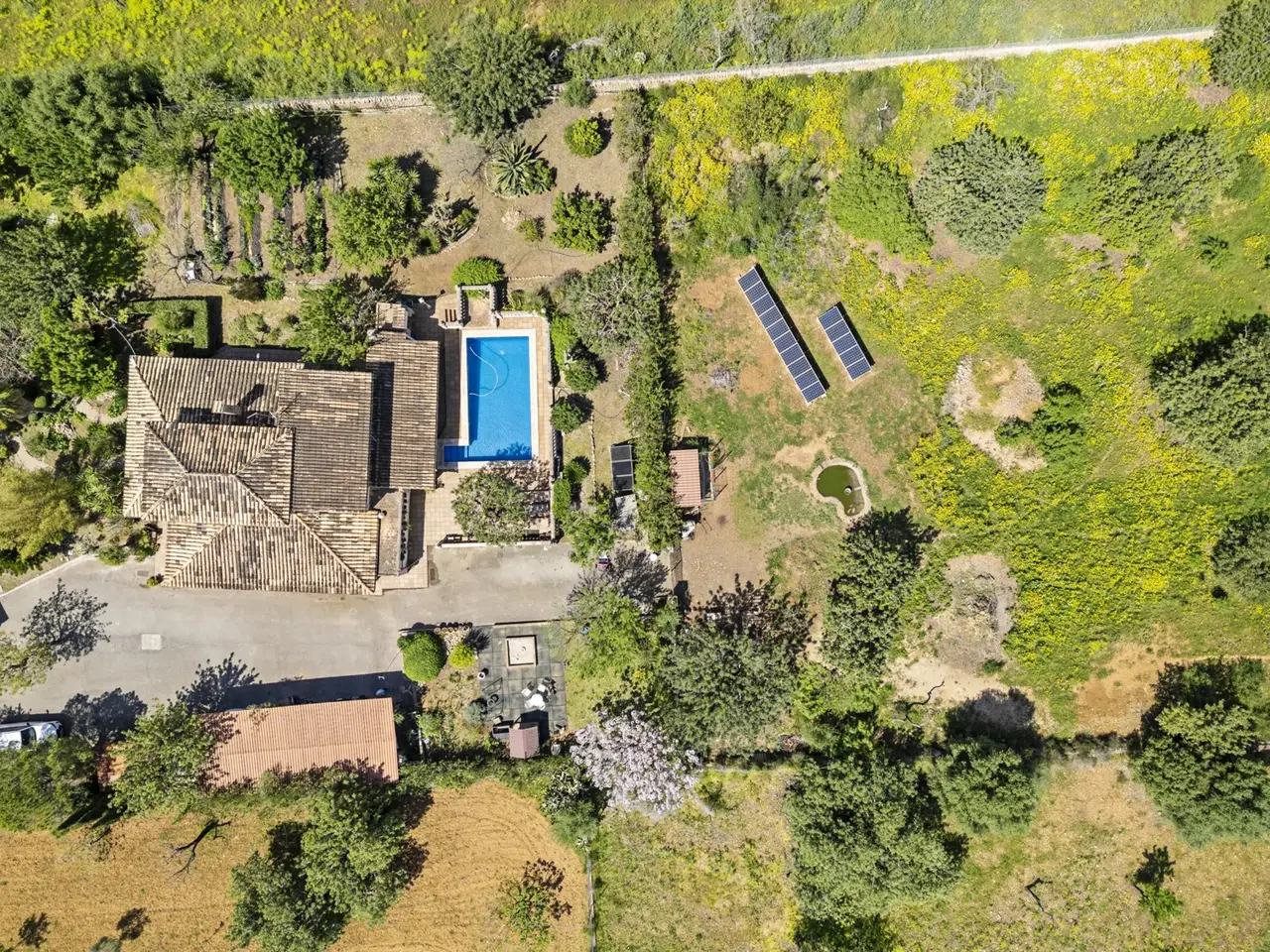 Welcome to your dream finca in Santa Maria del Camí! This exceptional property offers a perfect symbiosis of Mediterranean charm and modern comfort. Built in 1995 and modernized and expanded in 2001, the property is located on the quiet edge of the picturesque village, nestled in an idyllic landscape dotted with Mediterranean flora. Access is via a paved, traffic-calmed cul-de-sac, ensuring absolute peace and quiet. With a generous living area of approximately 289 m² spread over two floors, the finca offers ample space for families or guests. A total of six rooms, including five bedrooms and three bathrooms, are available. An additional separate toilet is located on the terrace directly adjacent to the swimming pool. Covered terraces of approximately 184 m² invite you to relax. The finca is built in solid construction and is characterized by its excellent condition. The living area features stylish tiled floors. The fitted kitchen will delight any amateur chef, and the wine cellar completes the space. On cooler days, the fireplace in the living room creates a cozy atmosphere, while the air conditioning ensures pleasant temperatures year-round. A great potential for this property lies in its flexibility for conversions. For example, there is the option of combining the garage with the living room to create additional living space and further expand the living experience. The garage has space for two cars, while the carport protects up to five vehicles. The 19 solar panels with a combined output of 6,200 W and the fiber optic connection round out the comfortable living experience. The spacious property extends over approximately 6,859 m² and offers a variety of possible uses. A private well, a rainwater cistern, and a connection to the municipal water system ensure a reliable water supply at all times. Fruit trees, including almond trees, as well as a fenced-in animal area and automatic garden irrigation, underline the rural charm of the finca. This exclusive property is your oasis of peace and relaxation amidst Mallorcan nature, waiting to be discovered by you. Don't miss the chance to live in a paradisiacal setting and schedule a viewing today! Position Santa María del Camí, a picturesque village in the heart of Mallorca with approximately 7,000 inhabitants, has developed into a highly desirable location, combining traditional charm with modern amenities. The imposing parish church, with its distinctive bell tower, is an architectural gem that reflects the village's history. Another attraction is the wine grown in Santa María, which draws many visitors. The weekly market takes place on Sundays, offering fresh produce, handmade goods, and local specialties. The landscape, characterized by rolling hills and vineyards, invites you to take walks and bike rides, and the nearby Tramuntana Mountains can be explored. Santa María's central location, only about 20 km from Palma, makes it an attractive place to live for those who appreciate the tranquility of village life while having the amenities of the city within easy reach. The airport and beaches are also within a similar distance. There are high-quality restaurants and shopping opportunities here, and in addition to the renowned international school "The Montessori School," there is also a public school. The leisure center "Mallorca Fashion Outlet," just a few minutes' drive away, offers numerous fashion stores, bars, restaurants, and a large cinema. equipment - Pool - Fireplace - Air conditioning hot/cold - Garage and carport - Solar panels - Private well, rainwater cistern, automatic irrigation - Garden with almond trees parking space 5 x carport, 2 x garage Other Information We generally recommend having the building regulations reviewed by a specialist lawyer. All information is based exclusively on information provided by the owner or client. We assume no liability for the completeness, accuracy, or timeliness of the information. The brokerage fee is borne by the seller. Any taxes, notary fees, and land registry fees incurred upon purchase are the responsibility of the buyer.