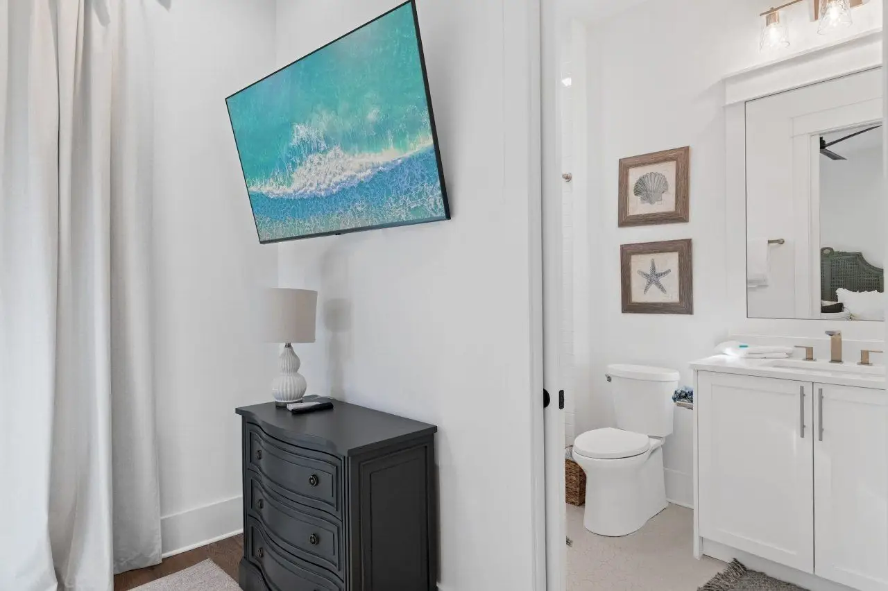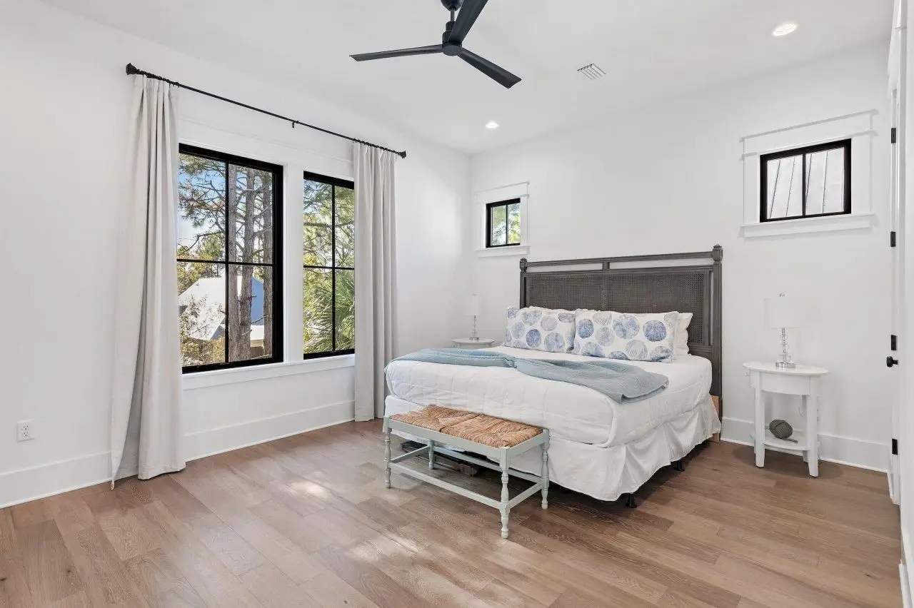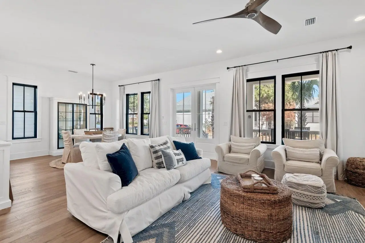 Experience the ultimate in coastal living with this turnkey, fully furnished 4-bedroom, 3-bathroom masterpiece located in the prestigious gated community of Cypress Dunes on Scenic 30A. Every detail of this newly constructed home has been thoughtfully designed to deliver a perfect balance of comfort, elegance, and functionality, with richly appointed spaces that combine sophistication and style. The reimagined open floorplan creates a spacious family room that seamlessly flows into the kitchen and dining areas, making it ideal for entertaining or enjoying quiet moments with loved ones. The chef-inspired kitchen is a true showstopper, featuring a Wolf stainless steel gas cooktop, double wall oven, Sub-Zero refrigerator, large central island, and custom shaker-style cabinetry for unmatched style and practicality. Added upgrades include a tankless water heater and thermostatic controls in the bathrooms for enhanced convenience and efficiency. Coastal charm radiates throughout the home, from the first-floor bedroom and bath to the striking wood and shiplap accents along the stairway. Bathrooms are meticulously crafted to capture the essence of breezy coastal design, with abundant natural light creating airy, refreshing, and inviting spaces. Luxury finishes elevate the home, including soaring 10-foot ceilings and stunning wood floors that enhance its warmth and natural light. Step outside to enjoy two full-length front porches and a serene rear screened porch perfect for soaking in the tranquil, park-like surroundings. Cypress Dunes offers an array of world-class amenities, including two resort-style pools, a fitness center, a jetted spa, an Owners Clubhouse, an outdoor fireplace, recreational greens, tennis courts, and picturesque nature walkovers. The natural beauty of this community perfectly complements the relaxed sophistication of 30A living. Don't miss this opportunity to own a fully furnished coastal retreat that epitomizes luxury, charm, and the vibrant lifestyle of Scenic 30A.