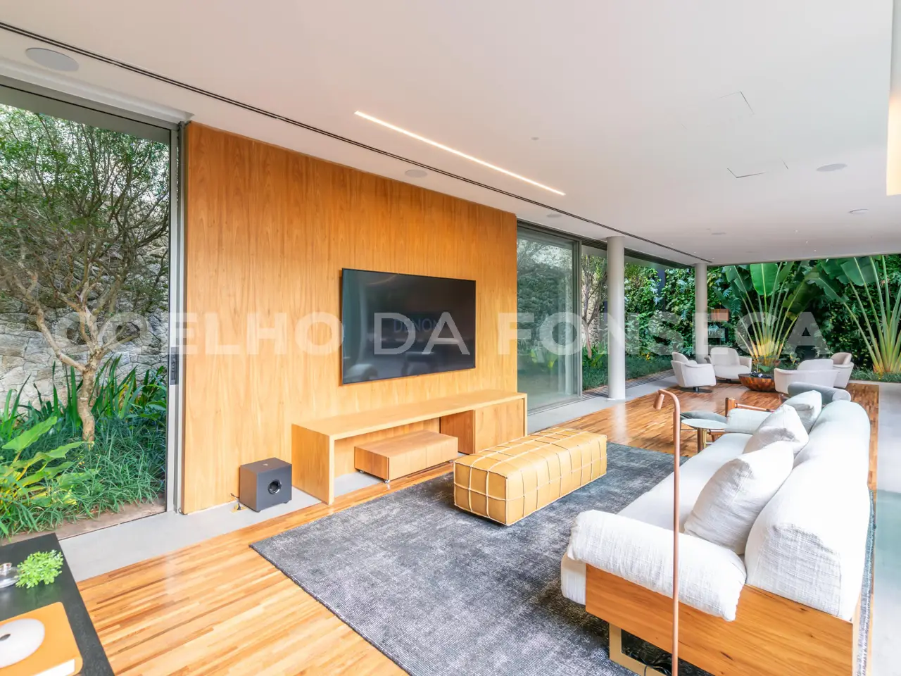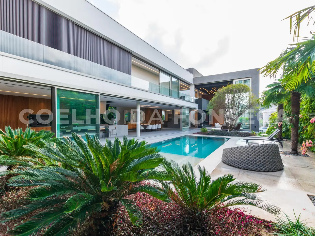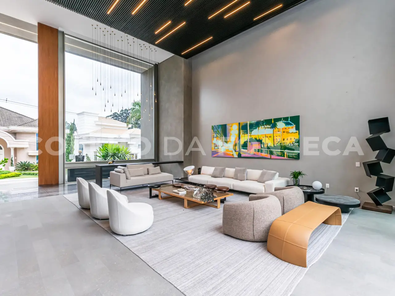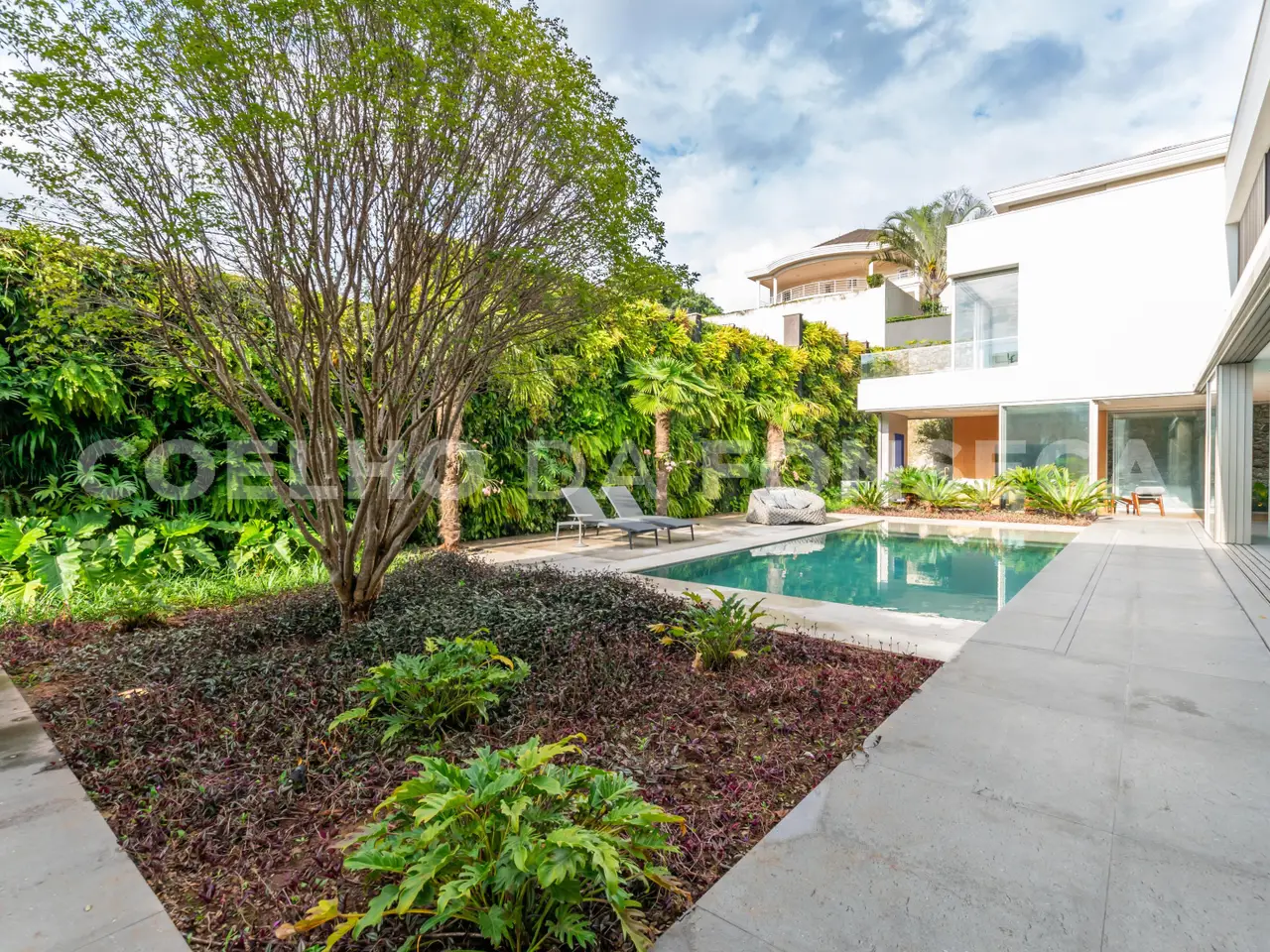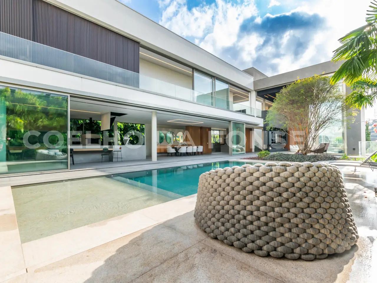 With elegant and smooth architecture, the inspiration for this project is quality of life and well-being. The house is complete and automated. There are 5 suites, one of which is for guests on the ground floor, all with Ornare closets. Italian marble coverings, kitchen and gourmet area complete with Ornare cabinets and imported appliances by Viking, Eletromax, Betazoni. Wine cellar for 600 bottles by Lieu du Vin, impeccable sound system, state-of-the-art cinema on 3 levels and with 13 seats. Covered garage for 10 cars with two chargers for electric cars. Landscaping project by Marcelo Belotto, ready and already formed, green walls on the entire side of the house. House in the TAMBORÉ II condominium, with 1266m² built area, 5 bedroom(s), 5 suite(s), 10 parking space(s), 7 bathroom(s), swimming pool, generator, office, sauna, storage room, furnished, dead-end street, air conditioning, dep. of employees, balcony, elevator, solar heater.