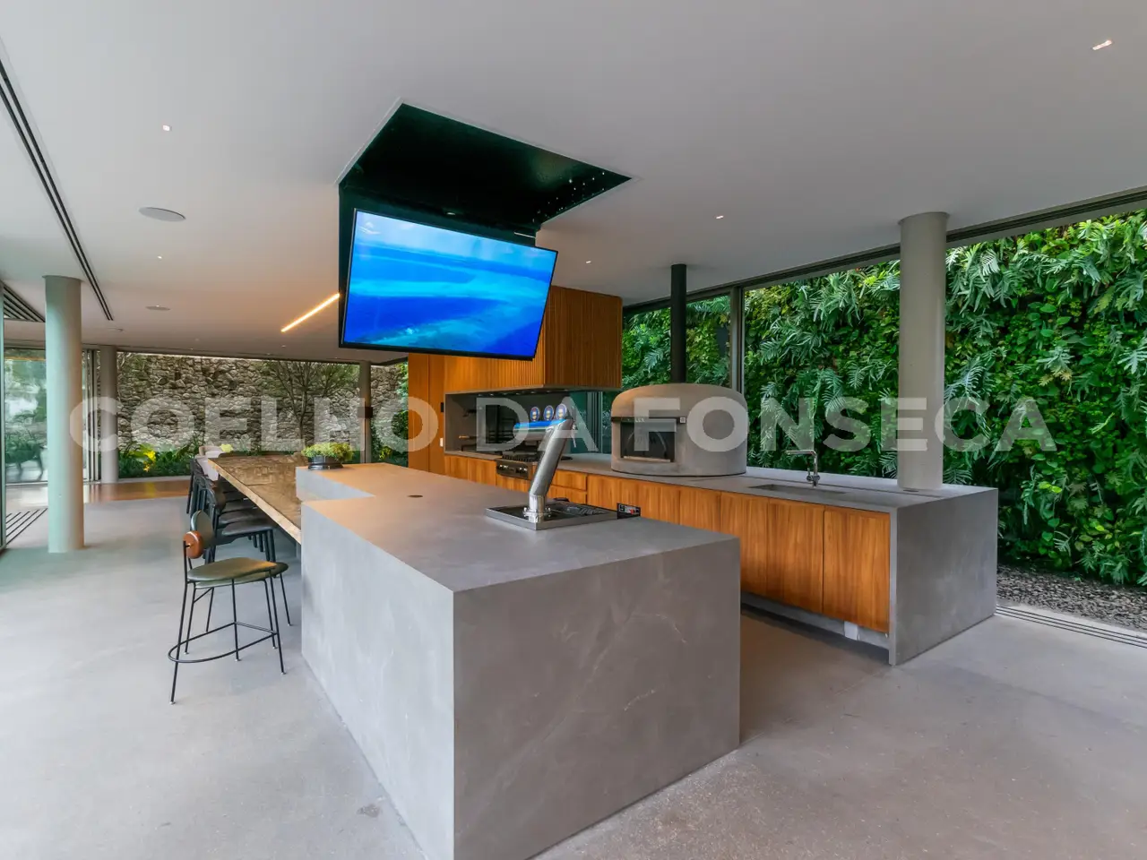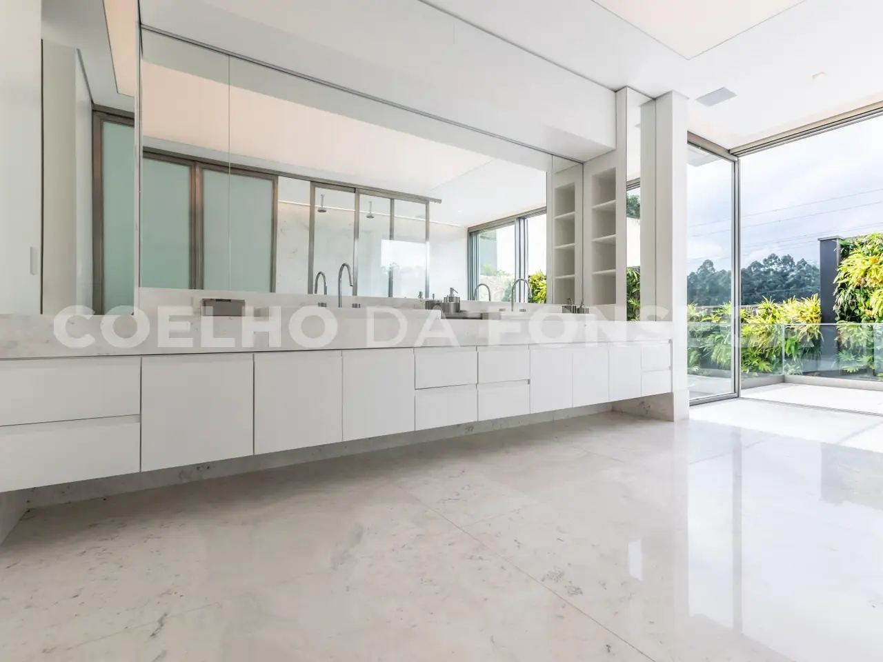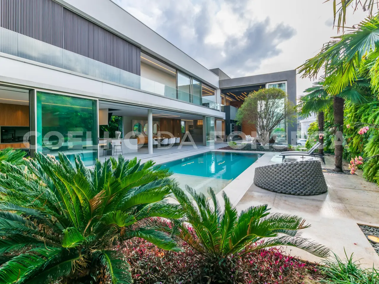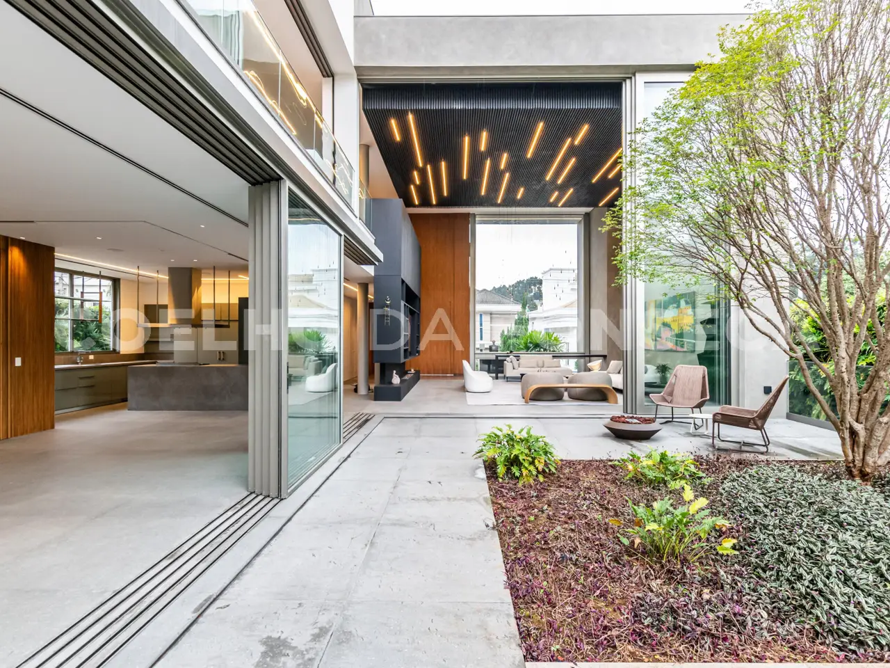 With elegant and smooth architecture, the inspiration for this project is quality of life and well-being. The house is complete and automated. There are 5 suites, one of which is for guests on the ground floor, all with Ornare closets. Italian marble coverings, kitchen and gourmet area complete with Ornare cabinets and imported appliances by Viking, Eletromax, Betazoni. Wine cellar for 600 bottles by Lieu du Vin, impeccable sound system, state-of-the-art cinema on 3 levels and with 13 seats. Covered garage for 10 cars with two chargers for electric cars. Landscaping project by Marcelo Belotto, ready and already formed, green walls on the entire side of the house. House in the TAMBORÉ II condominium, with 1266m² built area, 5 bedroom(s), 5 suite(s), 10 parking space(s), 7 bathroom(s), swimming pool, generator, office, sauna, storage room, furnished, dead-end street, air conditioning, dep. of employees, balcony, elevator, solar heater.