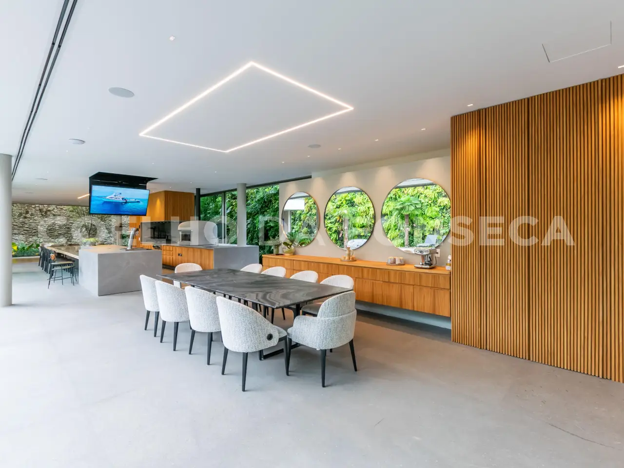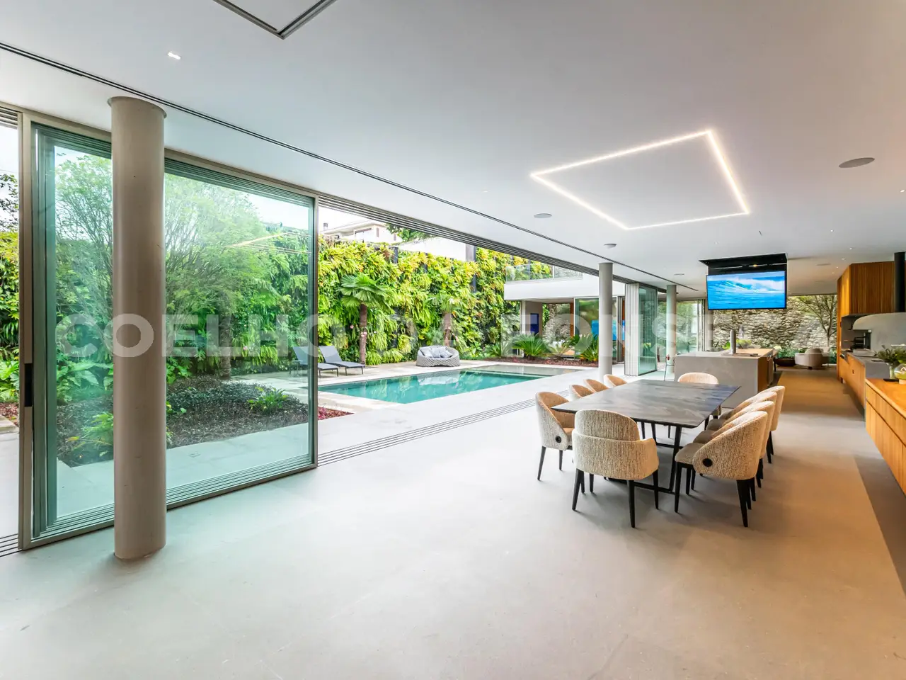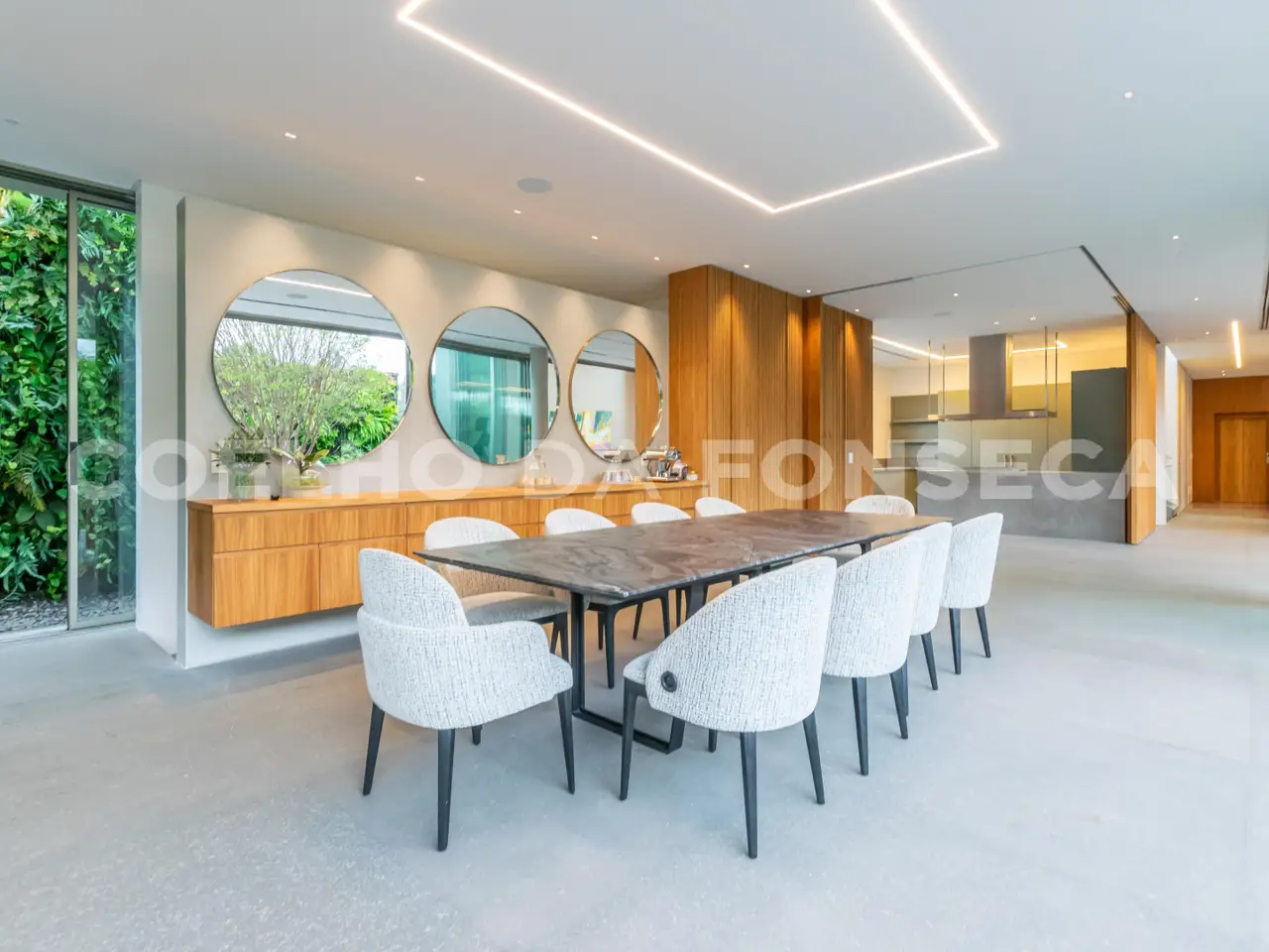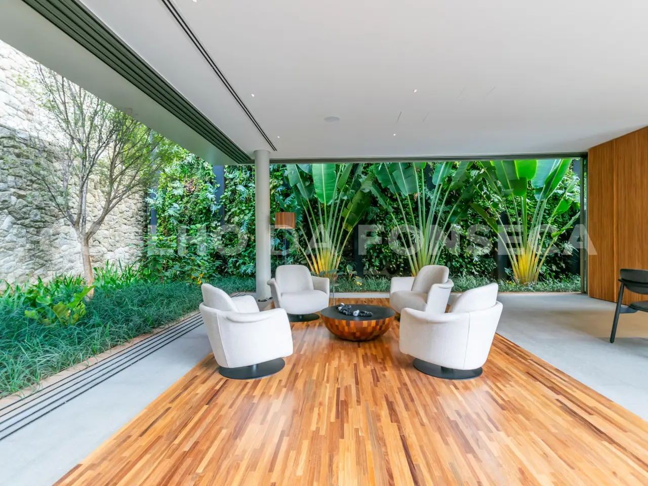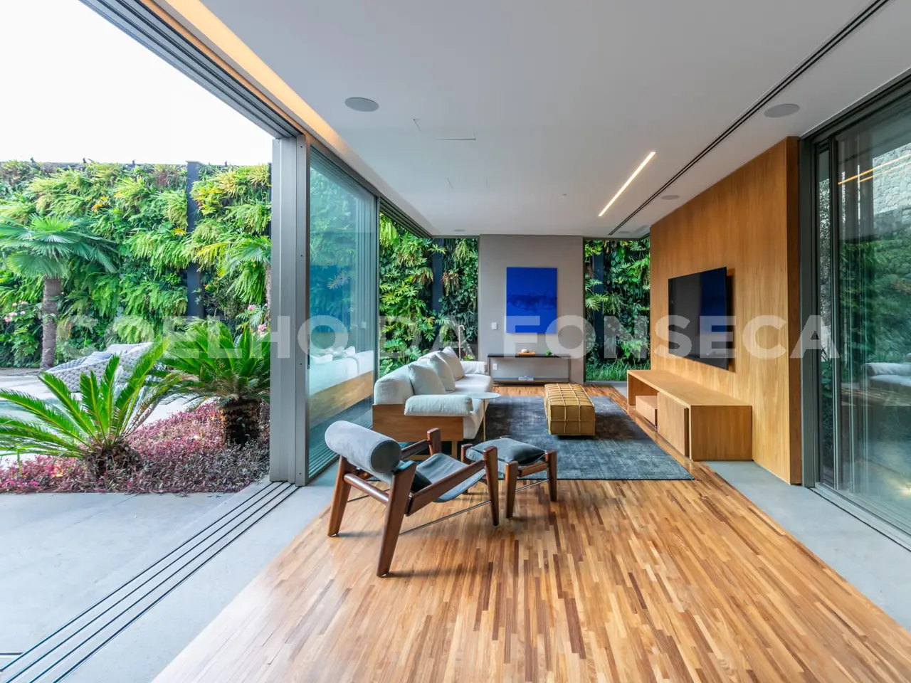 With elegant and smooth architecture, the inspiration for this project is quality of life and well-being. The house is complete and automated. There are 5 suites, one of which is for guests on the ground floor, all with Ornare closets. Italian marble coverings, kitchen and gourmet area complete with Ornare cabinets and imported appliances by Viking, Eletromax, Betazoni. Wine cellar for 600 bottles by Lieu du Vin, impeccable sound system, state-of-the-art cinema on 3 levels and with 13 seats. Covered garage for 10 cars with two chargers for electric cars. Landscaping project by Marcelo Belotto, ready and already formed, green walls on the entire side of the house. House in the TAMBORÉ II condominium, with 1266m² built area, 5 bedroom(s), 5 suite(s), 10 parking space(s), 7 bathroom(s), swimming pool, generator, office, sauna, storage room, furnished, dead-end street, air conditioning, dep. of employees, balcony, elevator, solar heater.