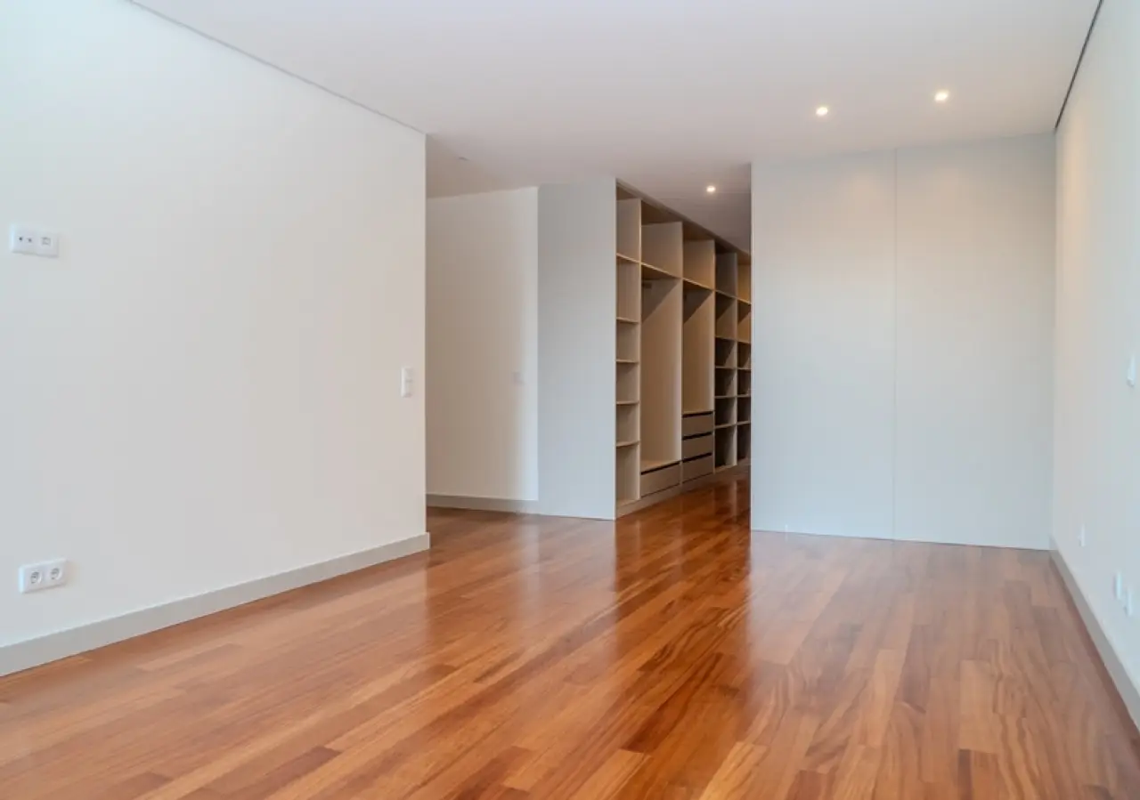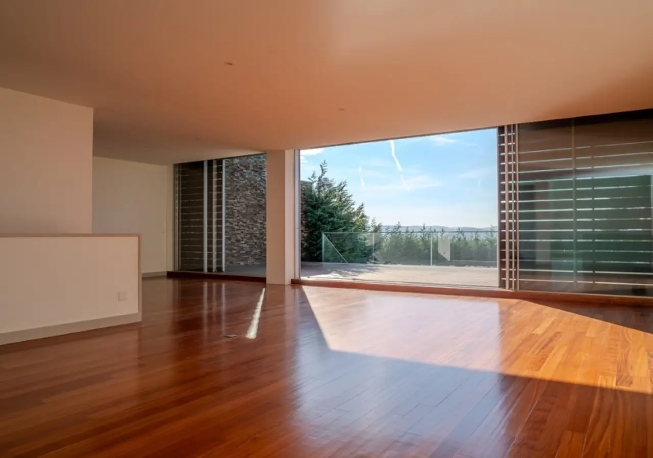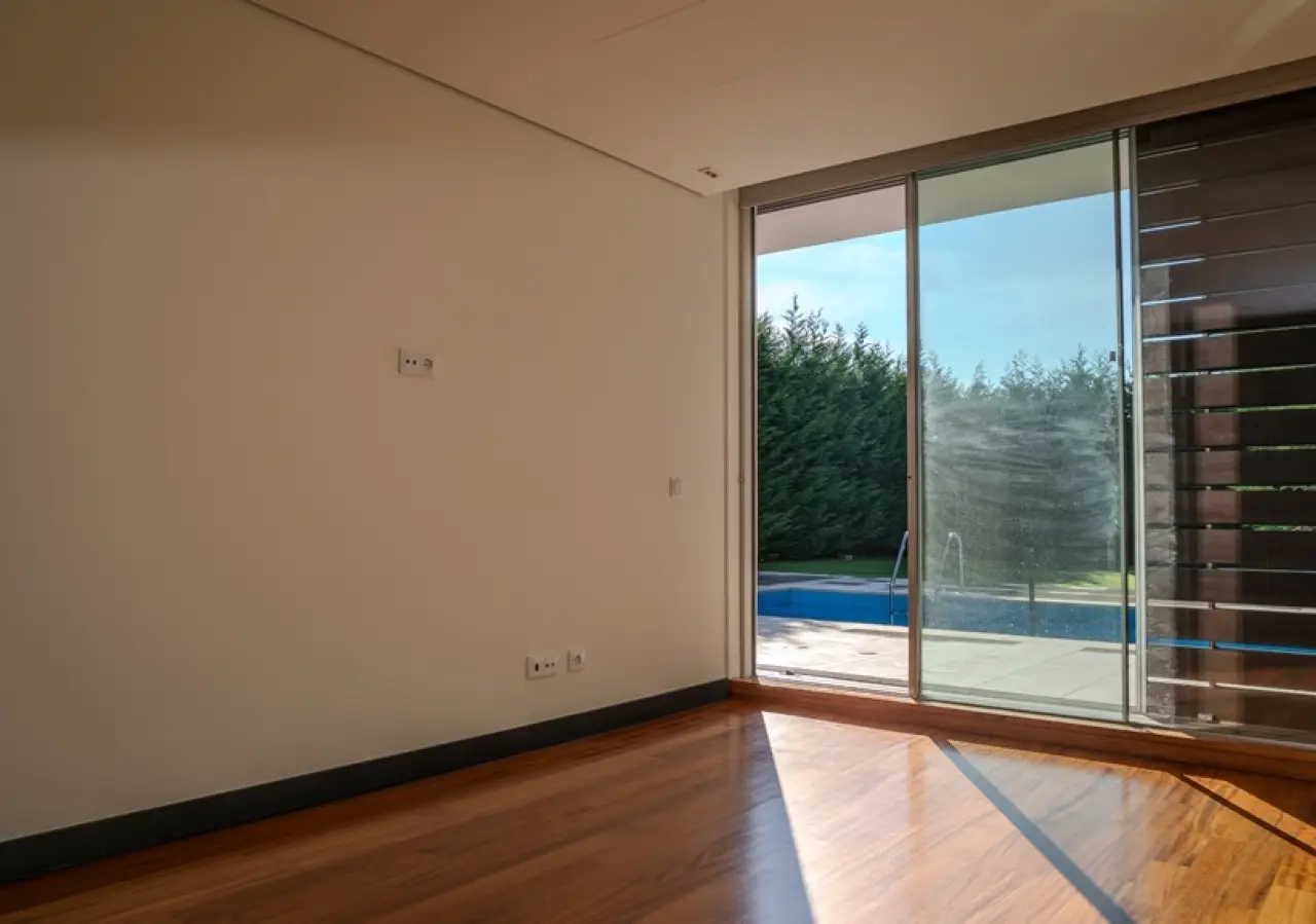 Fantastic two-storey villa with a modern design, set in rural surroundings in a prestigious gated community in the Vale Pisão Nature and Golf Resort, Santo Tirso. In excellent condition, with a fully refurbished kitchen and bathrooms, this villa has a large, bright living area that opens onto a generous balcony with magnificent views. Also on this floor, there is a fully equipped kitchen, a complete bathroom and a bedroom or office. On the lower floor is another living room and the bedroom area, including a master suite with dressing room and two bedrooms that share a bathroom. All rooms have direct access to the private garden with swimming pool, surrounded by greenery and with views of the mountains. At this resort you can also enjoy the Golf Academy, the Clubhouse with restaurant, lounge and bar, as well as controlled access with 24-hour security. CHARACTERISTICS: Plot Area: 95 m2 | 1 026 sq ft Area: 253 m2 | 2 726 sq ft Bedrooms: 4 Bathrooms: 3 Garage: 2 Energy efficiency: A FEATURES: 95.30 m2 garden; Swimming pool; Air conditioning; Central vacuum; Armored door; Automatic irrigation system.