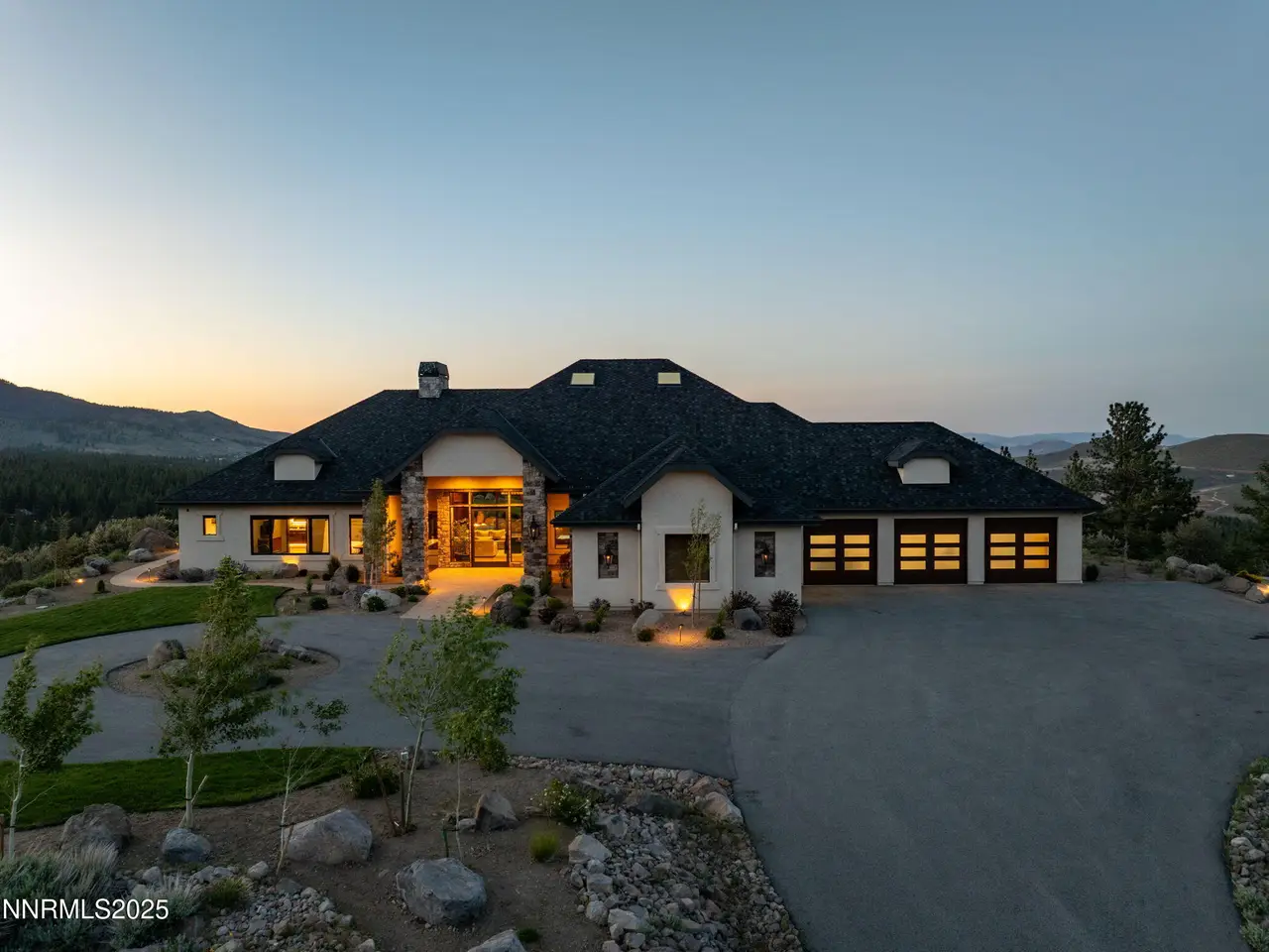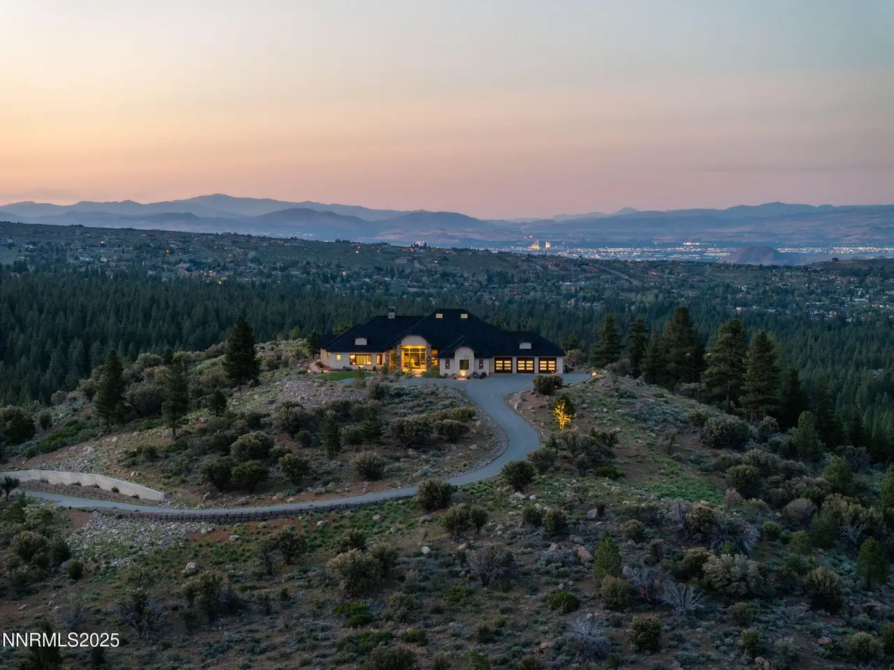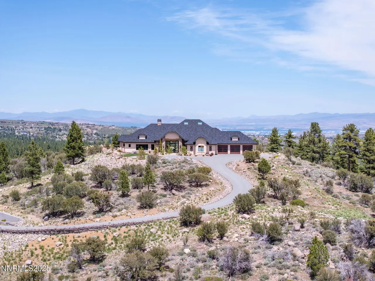 Come home to the only mountaintop that matters at 29 Bennington Court—a 4,831 sq ft single-level, 3 bd/3.5 bath home on 6.33 acres, including an adjacent lot. Designed for privacy, presence, and purposeful luxury, this custom home's features include heated quartzite counters, radiant floors, Waterstone fixtures, and Thermador appliances. Outside, the terrace opens to a Bullfrog spa, gas firepit, wood-burning hearth, and panoramic views of Mt. Rose, the city, and the forest for gatherings and grounded living. Where clarity meets craftsmanship and where home meets horizon, you'll find 29 Bennington Court. A rare alignment of location, design, and intention, this 6.33-acre property—including the adjacent lot—is ideal for those seeking space, presence, and enduring quality on a mountaintop estate unlike any other in the region. This single-level residence was designed with intention for liveable luxury. Every room opens to views of Mt. Rose, downtown Reno, and the surrounding forest canopy, while remaining just minutes from restaurants, schools, and shopping in South Reno. Inside, timeless craftsmanship is paired with intelligent modern upgrades. Radiant in-floor heating runs throughout the bathrooms, while heated counters add to the kitchen. A full suite of Thermador appliances—including a six-burner range with griddle, dual convection ovens, and commercial-grade ventilation—anchors the chef's kitchen. Soft-close cabinetry flows into a walk-through butler's pantry, featuring a pebble ice maker, custom storage, open shelving for effortless entertaining, and direct access to the oversized garage, which features epoxy floors and space for storage. The home's wide hallways, soaring soffit ceilings, and unobtrusive transitions between rooms create a grounded rhythm that invites movement and rest. Materials were chosen to age beautifully and wear comfortably: hardwood in main living areas, plush carpet in the bedrooms, and marble thresholds in transition zones. Skylights are placed to follow the arc of the sun, shifting light across the home throughout the day. A dedicated home office offers built-in storage, integrated lighting, and sweeping views—perfectly positioned for focused work, creative flow, or organizational ease. The three en-suite bedrooms offer privacy, stunning views, and spa-level finishes. The primary suite features a soaking tub, a walk-in essential oil steam shower, and a custom dressing room featuring mirrored cabinetry, soft-close drawers, tailored lighting, and a clever pass-through to the oversized laundry room. Dual washers and dryers, integrated hampers, and abundant storage make daily living more doable. An additional powder room with a Chanel-inspired wall texture accommodates guests and outdoor use. Beyond the view-filled windows, the outdoors unfolds with a similar sense of ease and intentionality. A recessed Bullfrog spa, a built-in gas firepit, and a wood-burning hearth create three zones for gathering, storytelling, and stargazing. The concrete terrace is plumbed for gas heaters and a future outdoor kitchen or enclosed pavilion. Hand-selected landscaping stones, including rare moss-covered granite boulders, were sourced from the land. Technology, comfort, and craftsmanship work in tandem: Lutron smart lighting, Brizzo hardware and Waterstone fixtures, prewiring for audiovisual integration, and ceiling heights engineered for long-term maintenance ease—no scaffolding required. The adjacent parcel at 33 Bennington Court is included in the sale, offering rare flexibility. Expand your compound. Build a guest home, artist's studio, multigenerational retreat, or simply preserve the land for peace, investment, or the future you haven't imagined yet. This home was built for gatherings that span generations, careers that evolve, and for people who understand that living well means living with purpose. Whether hosting, resting, creating, or simply being, this home meets you where you are.