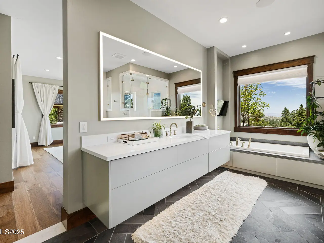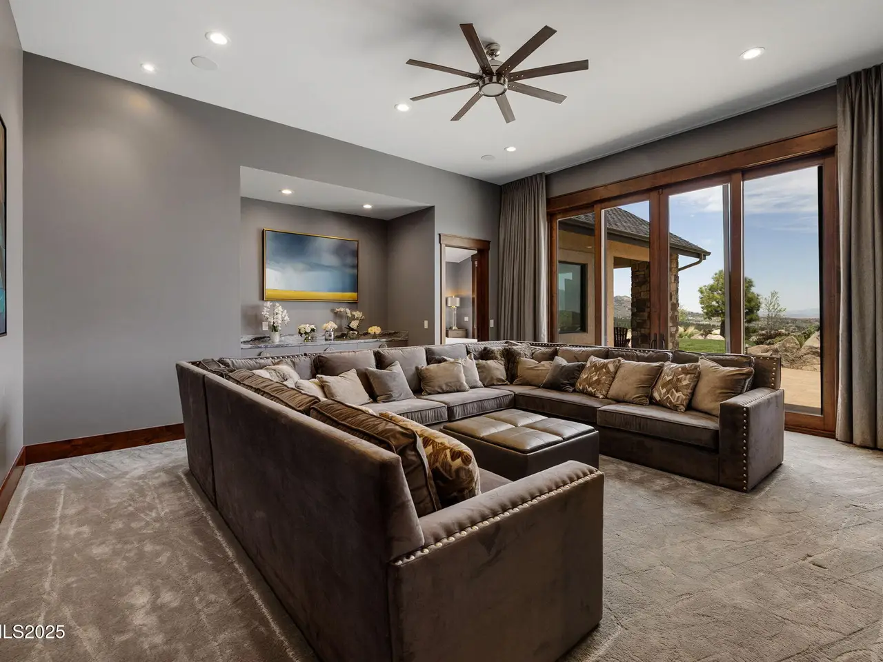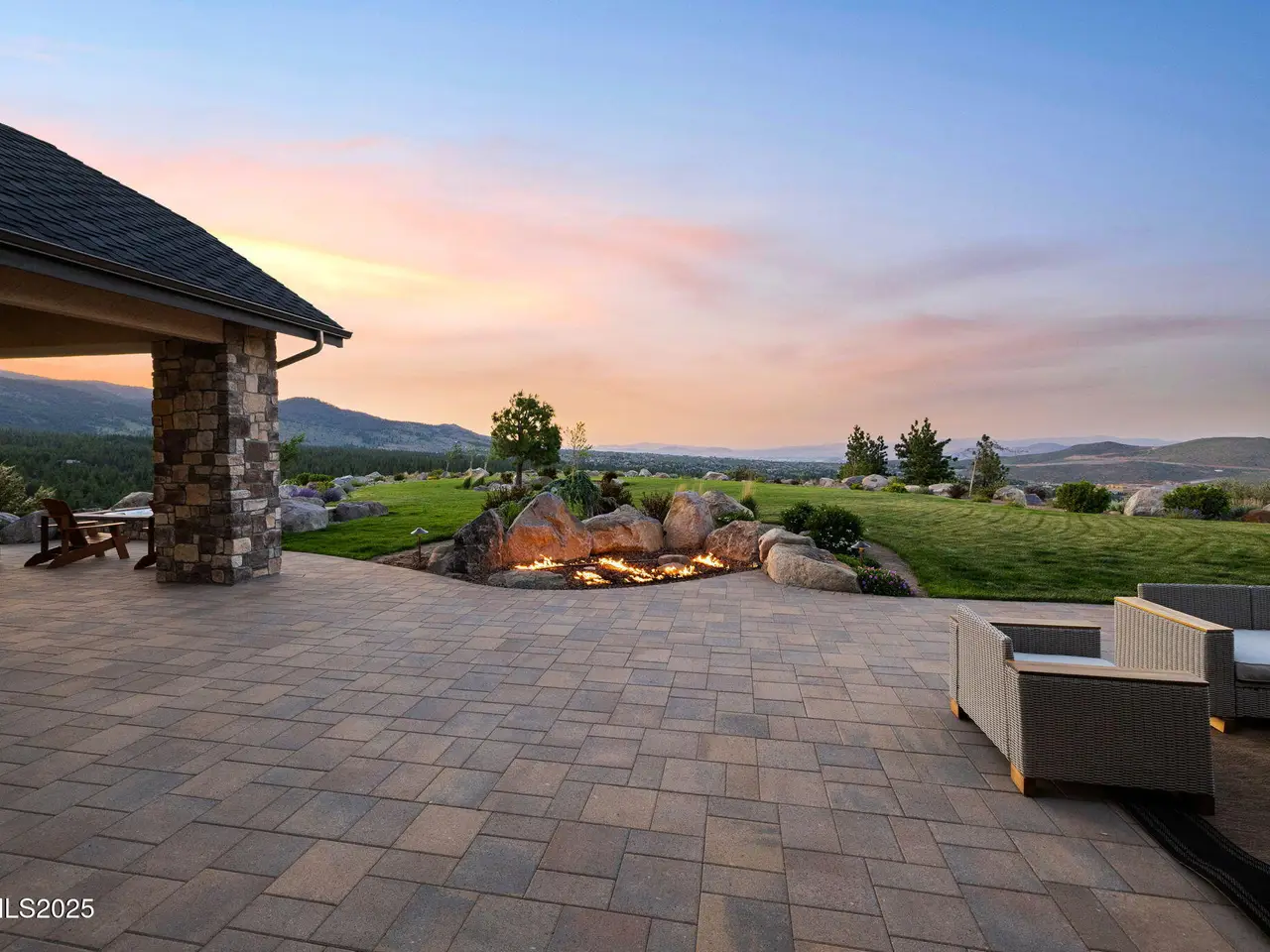 Come home to the only mountaintop that matters at 29 Bennington Court—a 4,831 sq ft single-level, 3 bd/3.5 bath home on 6.33 acres, including an adjacent lot. Designed for privacy, presence, and purposeful luxury, this custom home's features include heated quartzite counters, radiant floors, Waterstone fixtures, and Thermador appliances. Outside, the terrace opens to a Bullfrog spa, gas firepit, wood-burning hearth, and panoramic views of Mt. Rose, the city, and the forest for gatherings and grounded living. Where clarity meets craftsmanship and where home meets horizon, you'll find 29 Bennington Court. A rare alignment of location, design, and intention, this 6.33-acre property—including the adjacent lot—is ideal for those seeking space, presence, and enduring quality on a mountaintop estate unlike any other in the region. This single-level residence was designed with intention for liveable luxury. Every room opens to views of Mt. Rose, downtown Reno, and the surrounding forest canopy, while remaining just minutes from restaurants, schools, and shopping in South Reno. Inside, timeless craftsmanship is paired with intelligent modern upgrades. Radiant in-floor heating runs throughout the bathrooms, while heated counters add to the kitchen. A full suite of Thermador appliances—including a six-burner range with griddle, dual convection ovens, and commercial-grade ventilation—anchors the chef's kitchen. Soft-close cabinetry flows into a walk-through butler's pantry, featuring a pebble ice maker, custom storage, open shelving for effortless entertaining, and direct access to the oversized garage, which features epoxy floors and space for storage. The home's wide hallways, soaring soffit ceilings, and unobtrusive transitions between rooms create a grounded rhythm that invites movement and rest. Materials were chosen to age beautifully and wear comfortably: hardwood in main living areas, plush carpet in the bedrooms, and marble thresholds in transition zones. Skylights are placed to follow the arc of the sun, shifting light across the home throughout the day. A dedicated home office offers built-in storage, integrated lighting, and sweeping views—perfectly positioned for focused work, creative flow, or organizational ease. The three en-suite bedrooms offer privacy, stunning views, and spa-level finishes. The primary suite features a soaking tub, a walk-in essential oil steam shower, and a custom dressing room featuring mirrored cabinetry, soft-close drawers, tailored lighting, and a clever pass-through to the oversized laundry room. Dual washers and dryers, integrated hampers, and abundant storage make daily living more doable. An additional powder room with a Chanel-inspired wall texture accommodates guests and outdoor use. Beyond the view-filled windows, the outdoors unfolds with a similar sense of ease and intentionality. A recessed Bullfrog spa, a built-in gas firepit, and a wood-burning hearth create three zones for gathering, storytelling, and stargazing. The concrete terrace is plumbed for gas heaters and a future outdoor kitchen or enclosed pavilion. Hand-selected landscaping stones, including rare moss-covered granite boulders, were sourced from the land. Technology, comfort, and craftsmanship work in tandem: Lutron smart lighting, Brizzo hardware and Waterstone fixtures, prewiring for audiovisual integration, and ceiling heights engineered for long-term maintenance ease—no scaffolding required. The adjacent parcel at 33 Bennington Court is included in the sale, offering rare flexibility. Expand your compound. Build a guest home, artist's studio, multigenerational retreat, or simply preserve the land for peace, investment, or the future you haven't imagined yet. This home was built for gatherings that span generations, careers that evolve, and for people who understand that living well means living with purpose. Whether hosting, resting, creating, or simply being, this home meets you where you are.