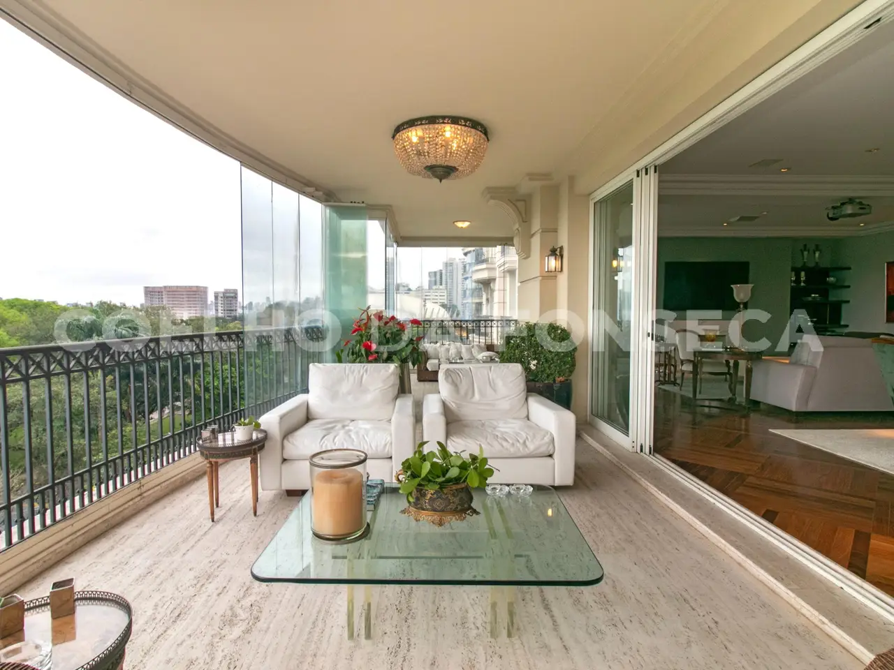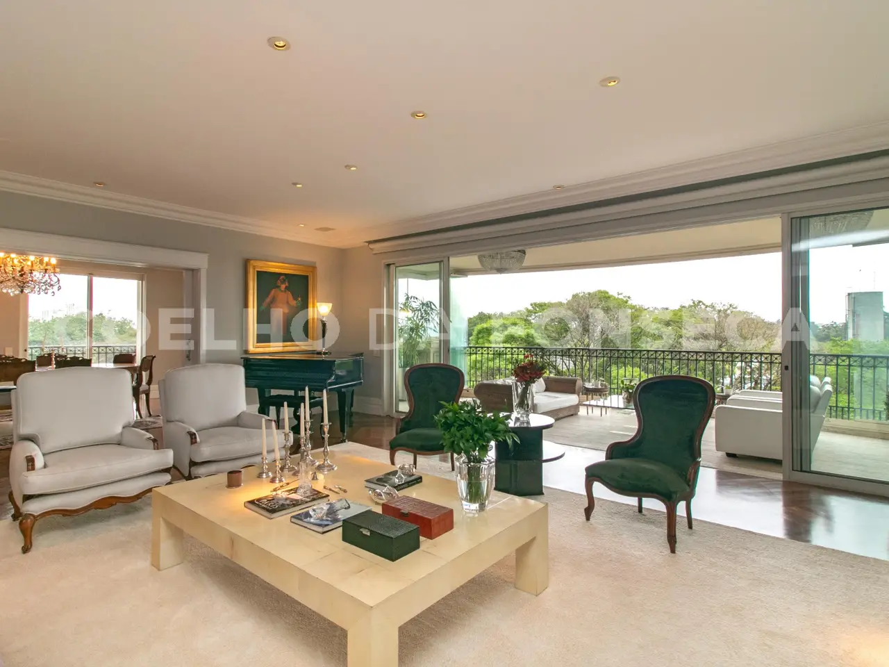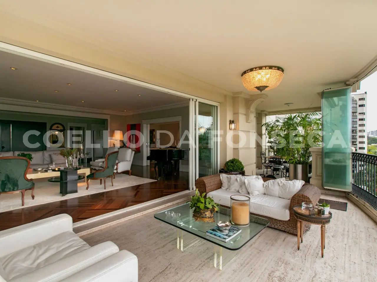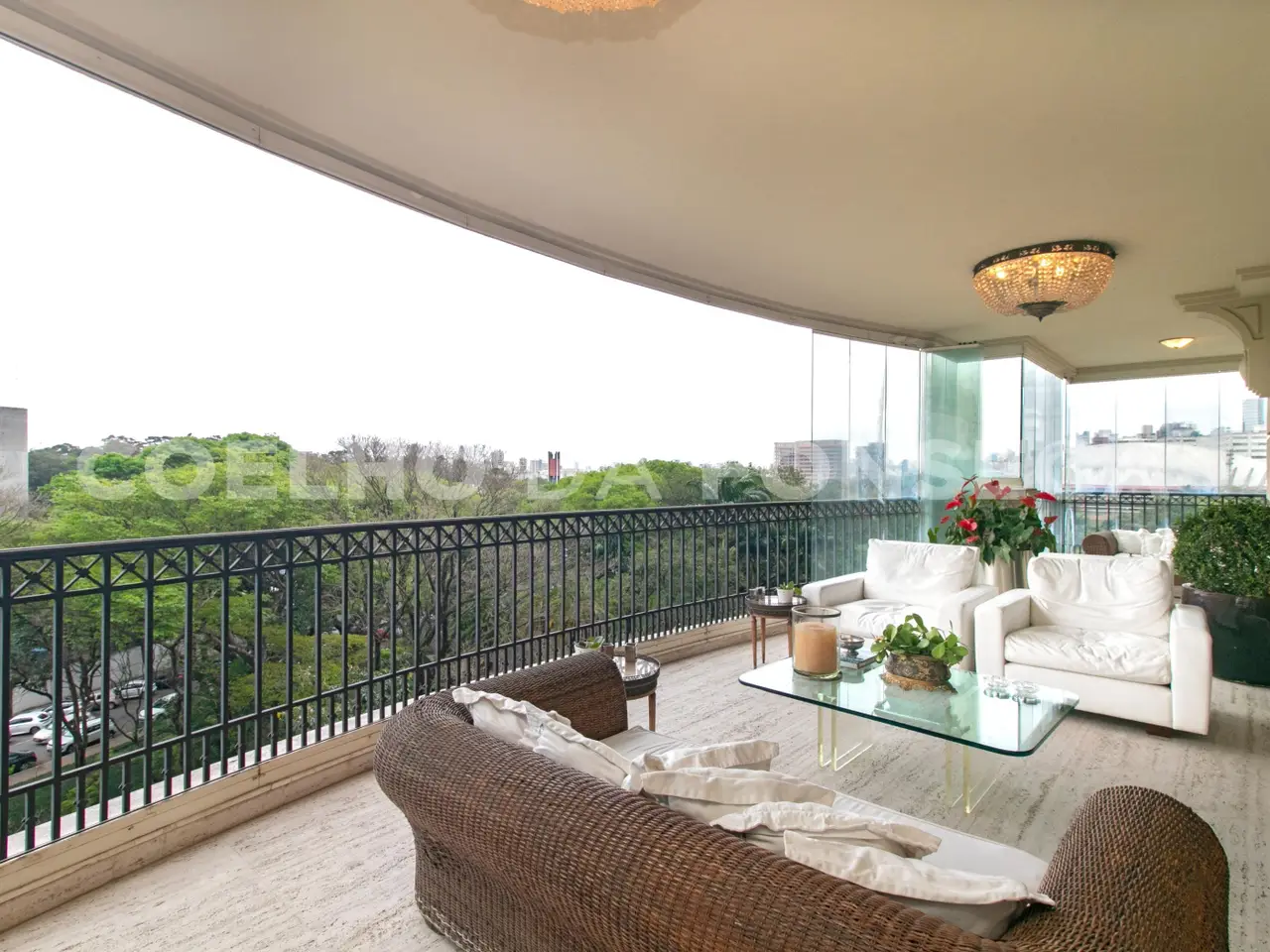 Excellent location with a view of Ibirapuera Park and in front of a very leafy square with plenty of security both inside and outside the building. Large living room with spacious areas and a dining room with a view. Bright, well finished and with only one owner. Elegant finishes and spacious suites, full of closets. Accommodates a large family comfortably. Apartment in the Ibirapuera neighborhood with 500m² of private/useful area, 4 bedroom(s), 4 suite(s), 6 parking space(s), 6 bathroom(s), office, terrace, air conditioning, maid's room.