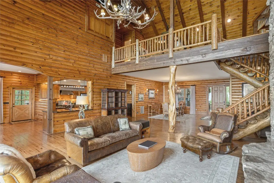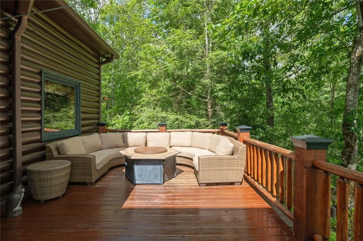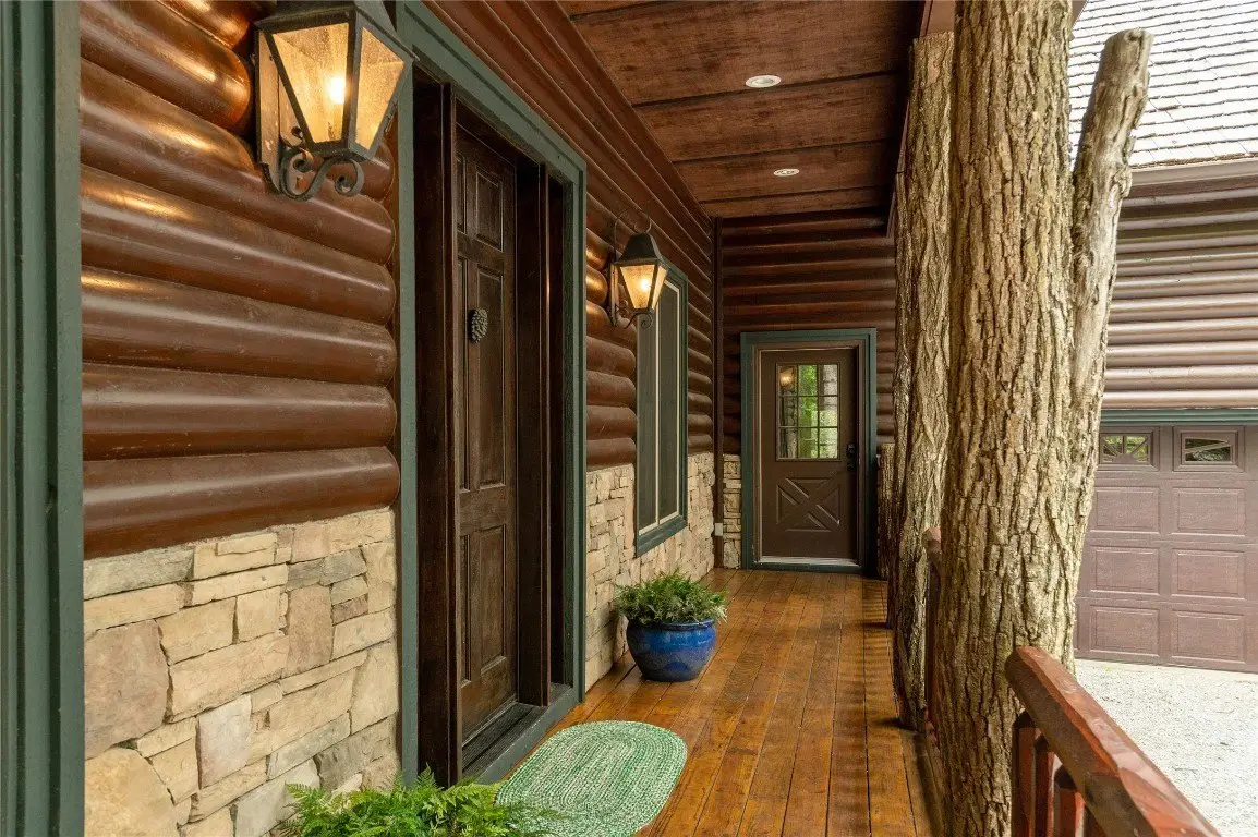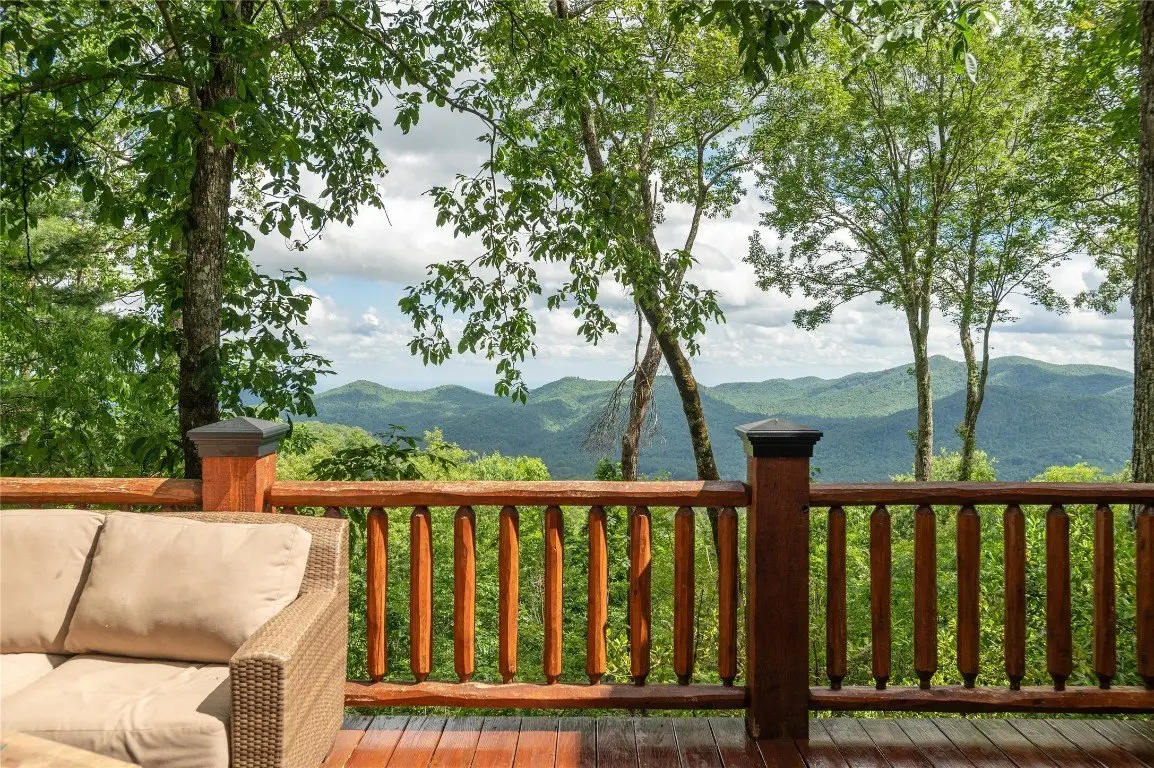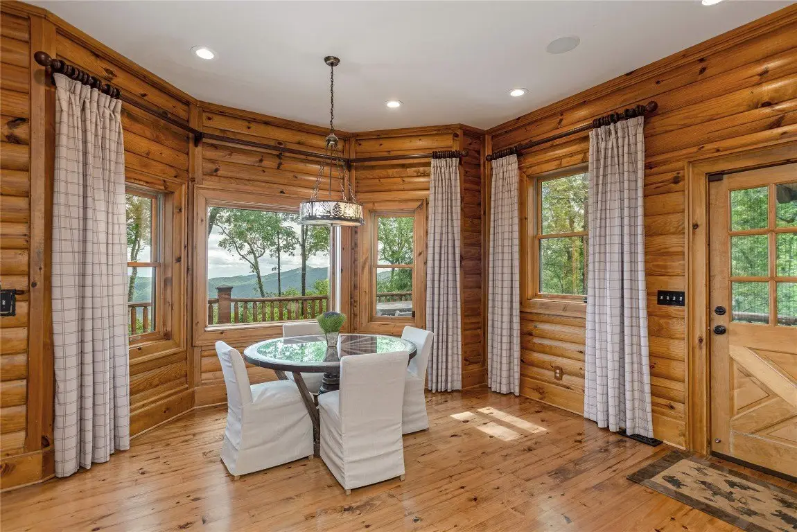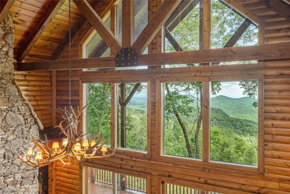 Perched high above the valley floor in the coveted gated community of Bald Rock, this authentic log home is a true mountain sanctuary. Set on 3.79 gently sloping acres, the property offers a rare combination of panoramic long-range views and usable land—ideal for exploring with family, friends, and pets. A private trail winds through the trees and past dramatic rock outcroppings, leading to a peaceful fire pit tucked just behind the home, inviting moments of connection under the open sky. As you step into the soaring great room, you're greeted by 28 foot ceilings, a striking stone fireplace, and breathtaking views that stretch to the horizon. The warmth of natural wood, the crackle of a fire, and the ever changing mountain backdrop create an atmosphere that is both grand and grounded. The kitchen, complete with a covered grilling porch and casual dining area, opens to an expansive deck that frames the landscape beyond. An adjacent formal dining room, designed to accommodate large gatherings, offers space to host with ease. Nearby, a well-appointed pantry, bar, and laundry room add to the home's thoughtful functionality. The main level primary suite is spacious and inviting, featuring its own stone fireplace, a generous walk-in closet, and a luxurious bath with dual stone vessel sinks. An adjoining study provides a quiet retreat for reading, work, or reflection. A handcrafted log staircase leads to the upper level, where an open loft with a carved full size pool table overlooks the great room and mountain vistas. Two guest bedrooms with private baths, along with a versatile bonus room, offer ample accommodations. One of the upstairs bedrooms is particularly expansive and features a bathroom with its own stone fireplace—perfect for those crisp Plateau mornings. A two car garage with an integrated workshop completes the offering. Rich in mountain character and set on a property that celebrates both natural beauty and practical livability, this home stands apart with its rare blend of charm, comfort, and commanding views. Bald Rock is one of the Plateau’s premier gated communities, offering privacy, security, and access to a range of amenities including an equestrian center, hiking trails, and direct access to Panthertown Valley. Residents enjoy the natural beauty, cooler climate, and a true sense of mountain living.