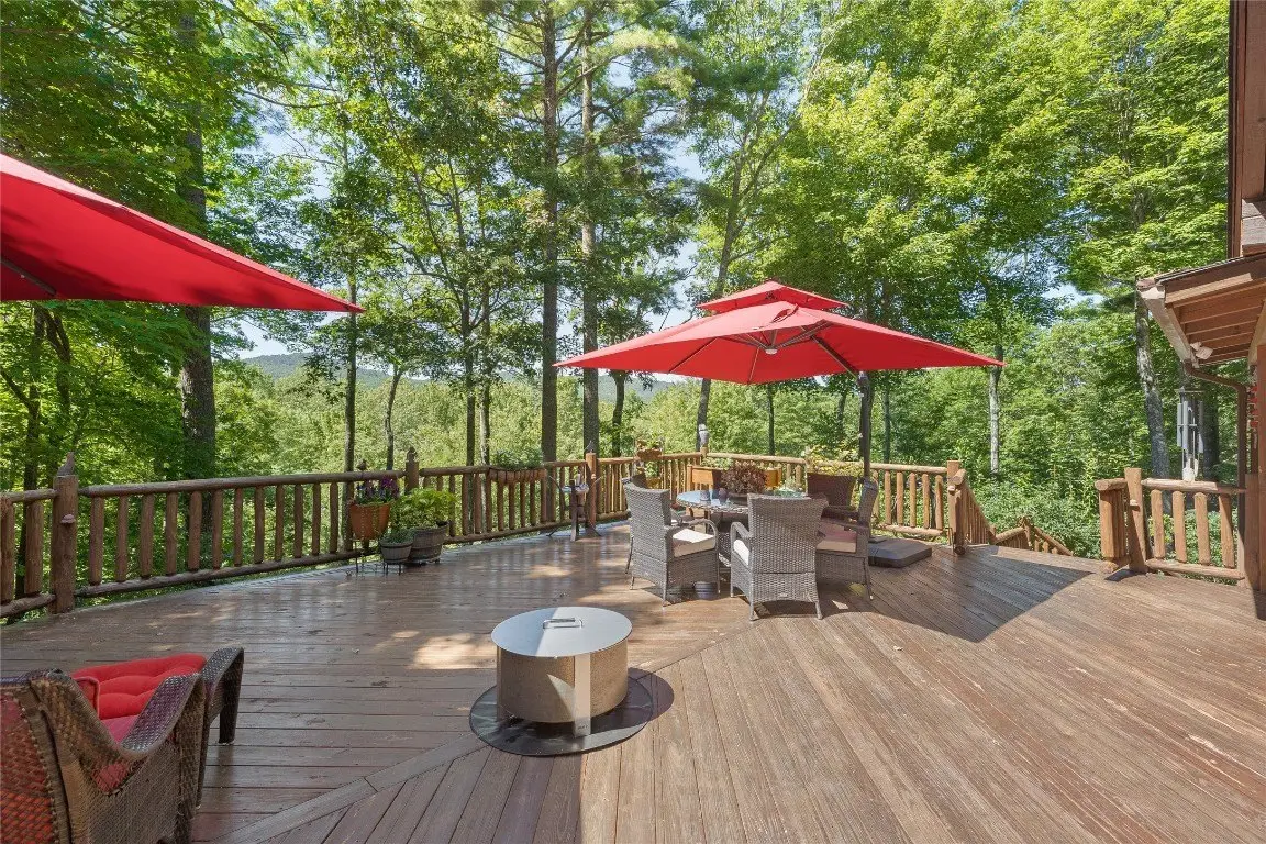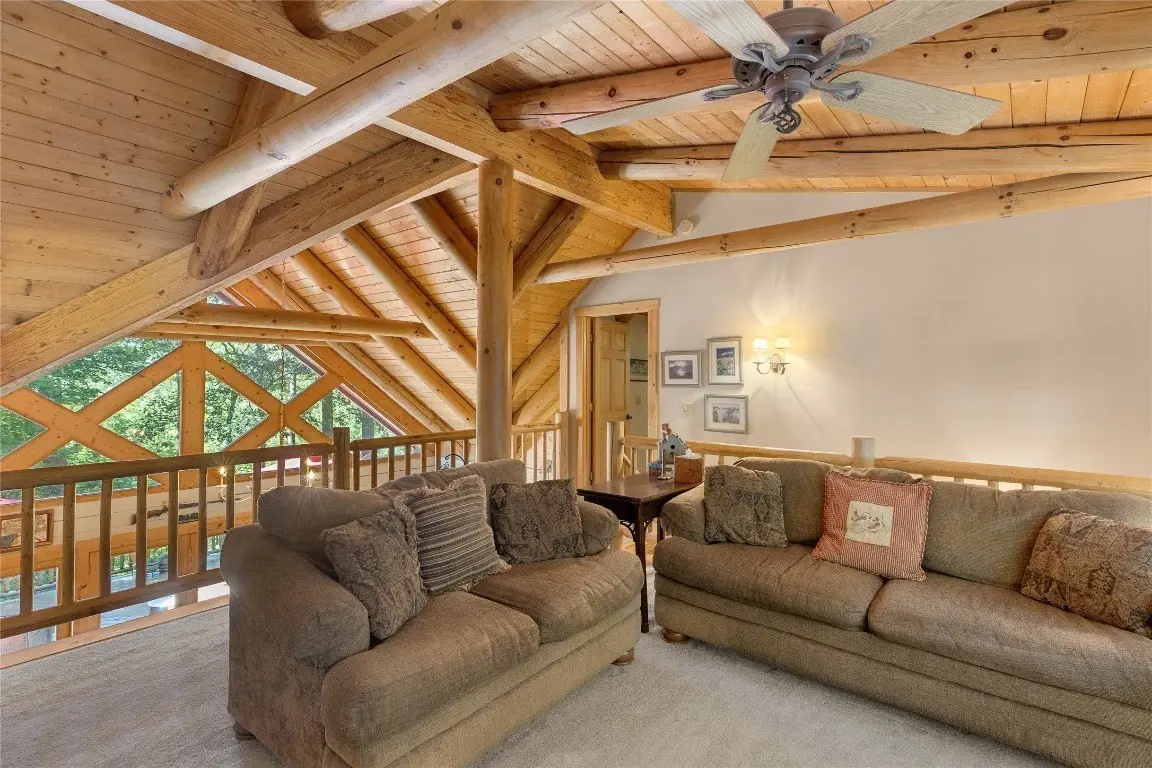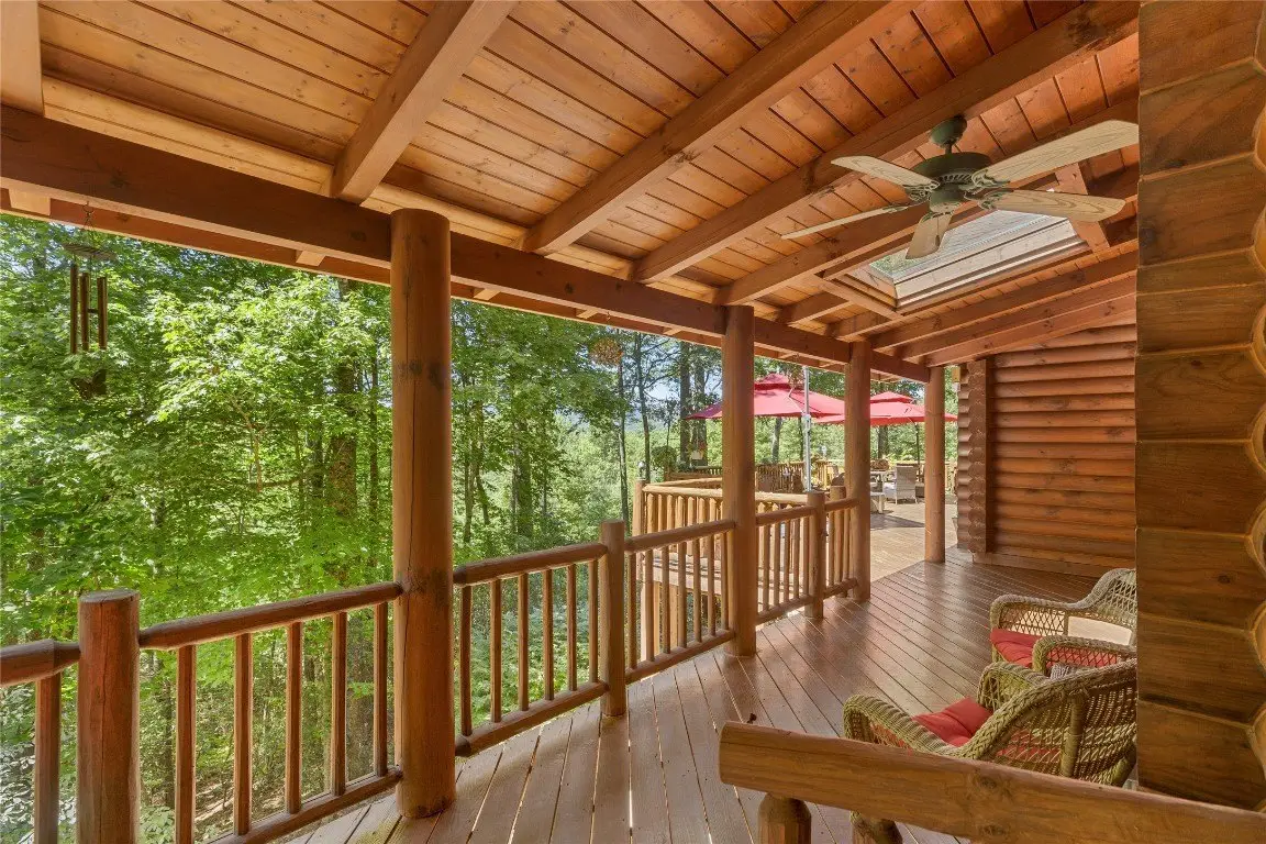 Discover the timeless appeal of mountain living in this classic log cabin on 2.28 private acres with beautiful mountain views in Burlingame Golf and Country Club. Designed for comfort and relaxation, the great room welcomes with a soaring stone fireplace, abundant natural light, and doors opening to a spacious open deck with beautiful views. A wraparound porch offers additional space to enjoy the fresh mountain air. The thoughtfully designed kitchen features updated appliances, including a double oven, and opens to a sunlit dining area with a large window and built-in window seat. Whether for hosting friends or enjoying a quiet morning coffee, the oversized deck serves as a front-row seat to the beauty of the surrounding landscape. The extra-large primary suite creates a private haven with its own fireplace, while the upper level comes with two generous guest rooms and a large loft for reading, playing games, or relaxing. The lower level boasts a cozy gathering area, a full bathroom, a bedroom or office, a craft room, and a shop for hobbies and projects. An additional 1.7-acre lot next door may be available for purchase separately. Please inquire with the listing broker. This inviting property offers a quintessential mountain retreat in one of the Plateau’s most sought-after communities, combining a vibrant lifestyle with natural surroundings. Membership to Burlingame Country Club — by invitation but not required for ownership — provides access to world-class golf, tennis, fitness, and dining amenities along with a welcoming social calendar. Parks, hiking trails, fishing ponds, and trout waters create endless possibilities for outdoor adventures and provide a serene yet engaging environment to relax, explore, and make lasting memories.