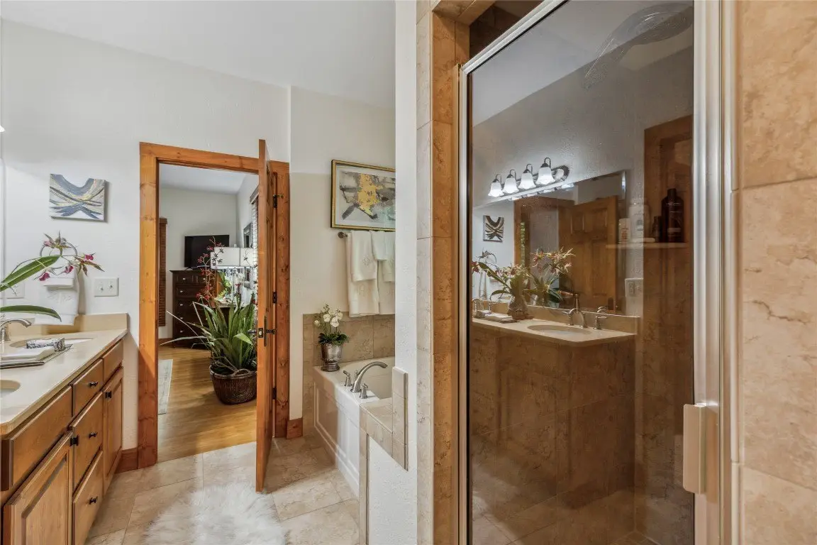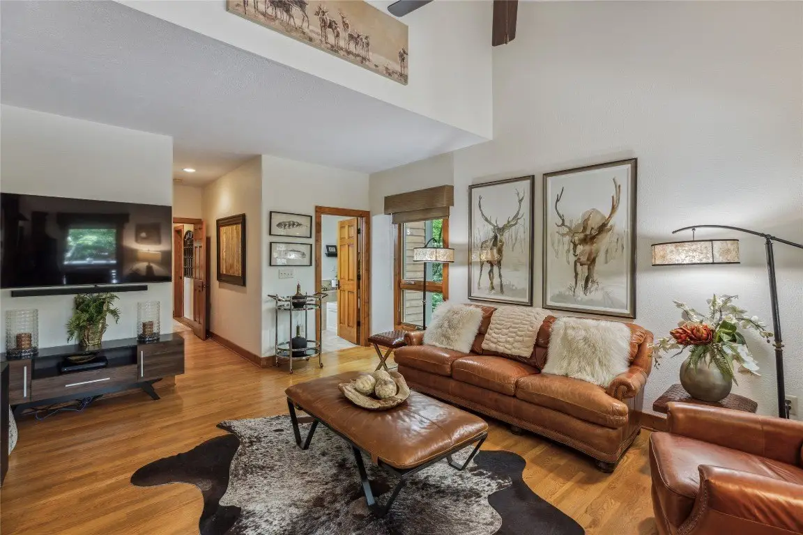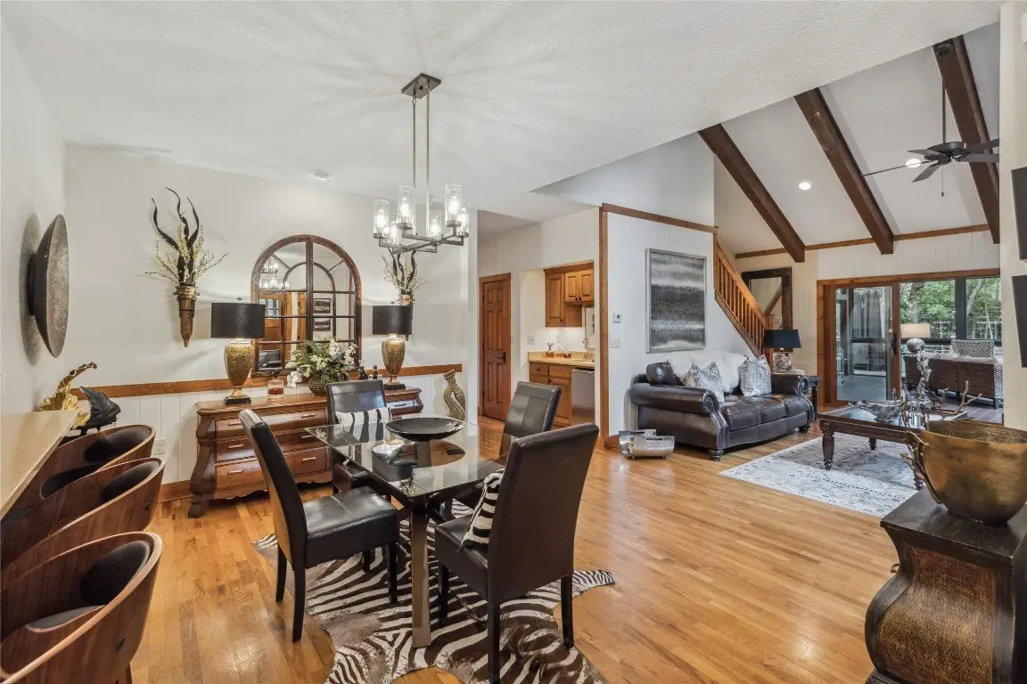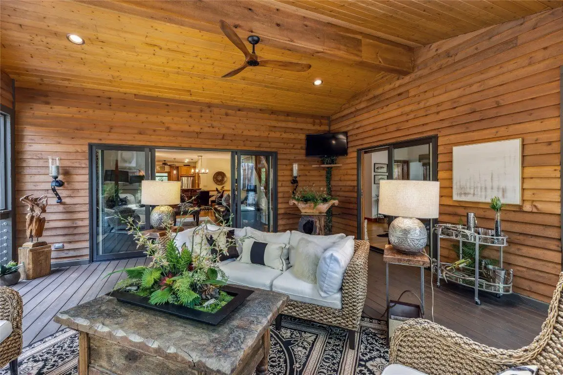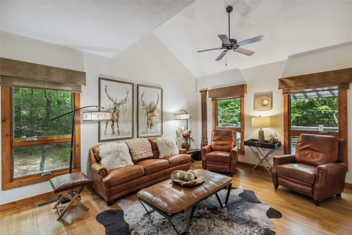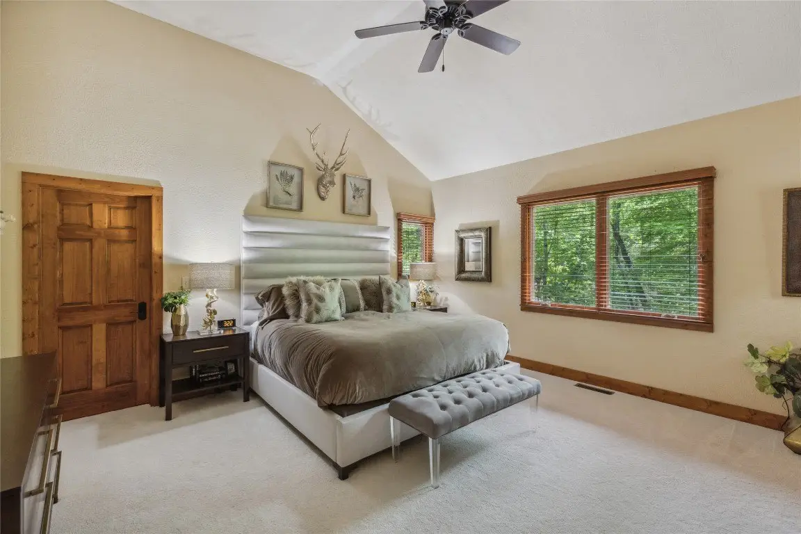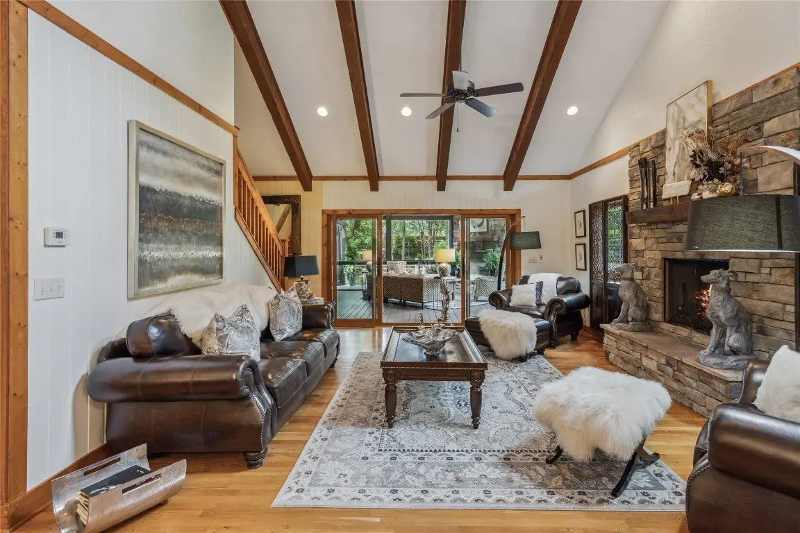 Located in the desirable heart of Sapphire Valley, this exceptional mountain retreat offers an ideal blend of comfort, elegance, and privacy. Set on a beautifully landscaped lot, the property features a level driveway with generous parking, stone walkways, ambient exterior lighting, a tranquil water feature, and privacy fencing. Inside the main residence, soaring vaulted ceilings and rich hardwood floors create an open and inviting ambiance. The great room is anchored by a striking stone fireplace with gas logs, while the adjacent chef’s kitchen is equipped with KitchenAid stainless steel appliances, custom cabinetry, and a charming herb garden window. The open-concept layout flows into the dining area and out to a screened Carolina room with skylights and a wood-burning fireplace—perfect for enjoying the seasons in comfort. The home offers two spacious primary suites, one on each level, each featuring spa-inspired bathrooms with dual vanities, jetted soaking tubs, and separate showers. A detached two-car garage with an additional golf cart bay includes a thoughtfully designed upstairs guest apartment, complete with a small kitchen, living area, bedroom, and full bath—ideal for visitors or a private home office. A 22kW generator ensures peace of mind year-round. Tucked away on a quiet lane with golf cart access to the nearby Country Club of Sapphire Valley (membership by invitation only), this refined property captures the essence of mountain living with unmatched access to the area’s best amenities.