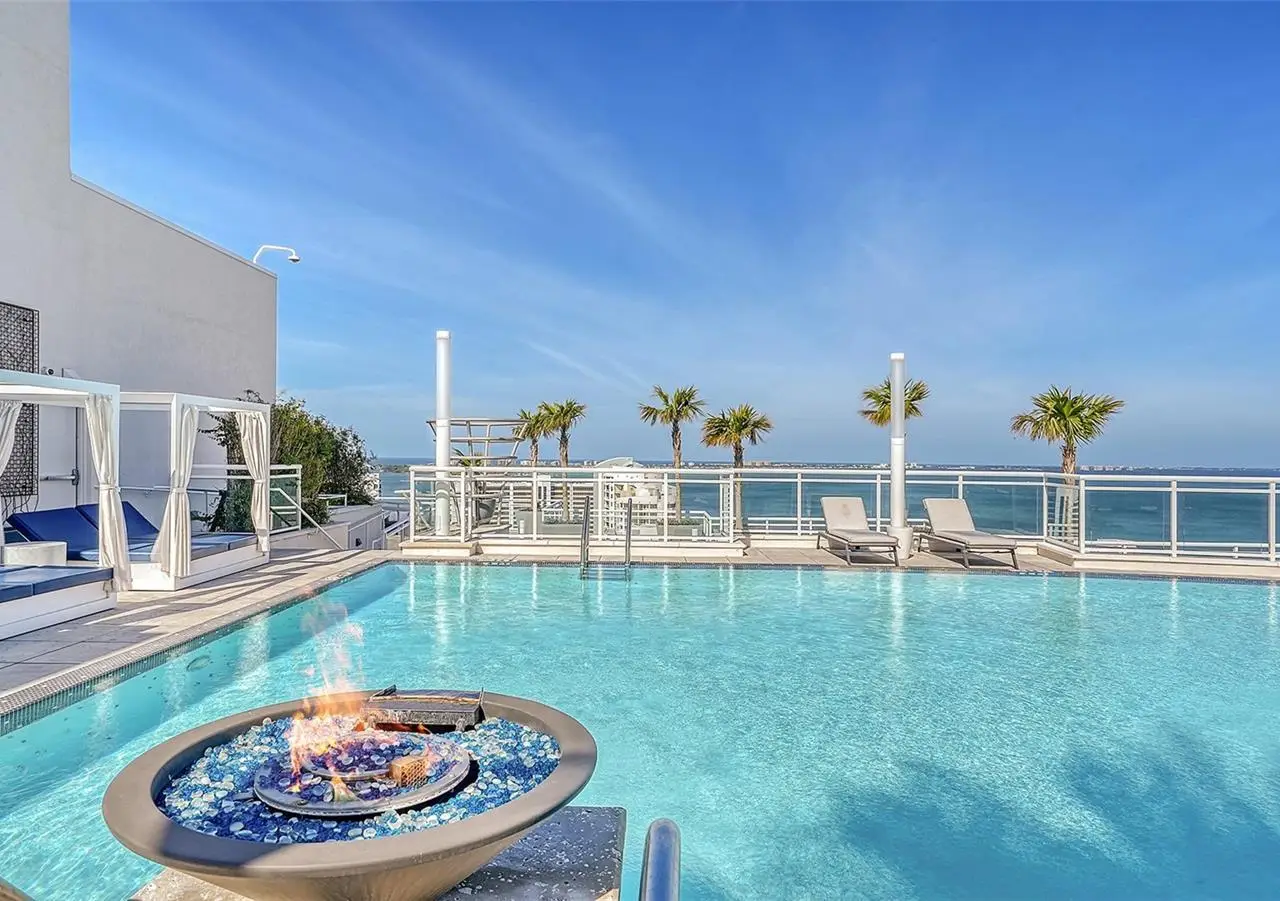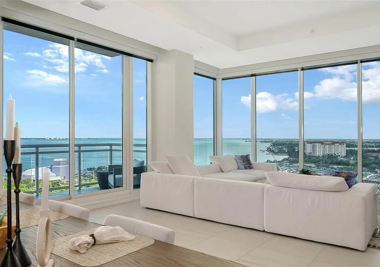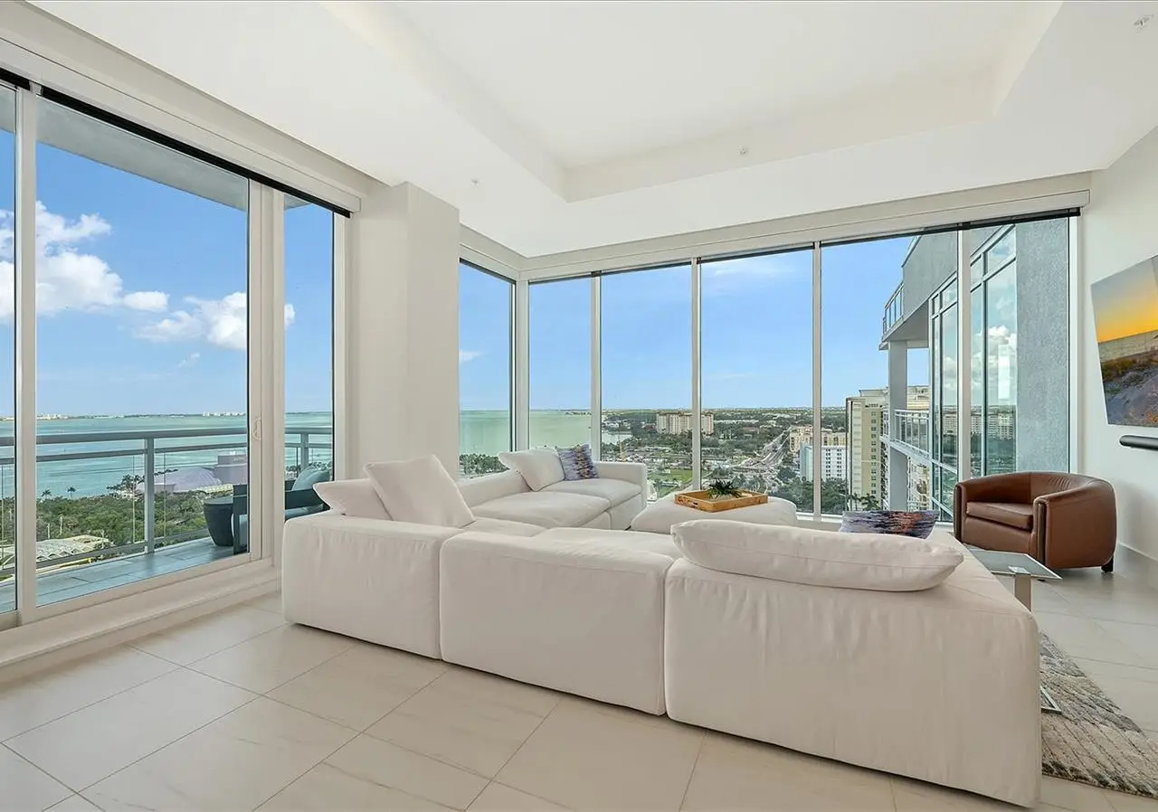 Welcome to the BLVD, where breathtaking views define the home experience! This architecturally stunning, modern condominium stands perfectly positioned in the Bayfront District of downtown Sarasota. Indulge in a luxurious residence soaring above Sarasota Bay, ideally located on the 17th floor, featuring expansive glass walls that offer breathtaking and unobstructed bay views to the north and west, and city views to the east. At this premier address, residents are among the elite who are privileged with an exclusive standard of living. This iconic building offers high-quality interior finishes and advanced coastal construction and design. From the moment you step through the entrance of the private access elevator, the tone is set for the entire space and lifestyle. The flow-through floorplan highlights magnificent bayfront and city views, with impact windows and sliding glass doors leading to several large terraces. Elegant tile flooring and glass railings create a seamless connection between the indoor and outdoor spaces, framing boundless vistas. The expansive great room boasts lofty ceilings, custom lighting, and large tile flooring - ideal for entertaining guests. A culinary showpiece, the kitchen features designer tile backsplash that complements the sleek cabinetry and designer lighting, adding sophistication throughout. An oversized island, complete with high-end quartz countertops and ample storage, anchors the space. For wine enthusiasts and culinary connoisseurs, this remarkable kitchen also features top-of-the-line Thermador appliances with a 6-burner gas cooktop, built-in wall oven, wine fridge, and two spacious pantries with custom shelving. The expansive primary bedroom is complete with two exquisite custom walk-in closets, with a spa-like bath boasting a soaking tub and an oversized glass shower. Two oversized bedroom suites feature private terrace access and luxurious spa-like baths. A powder room and spacious laundry room round out the interior. Quality and comfort are at the forefront, evident with a state-of-the art smart automation system with Lutron lighting, and motorized shades system. Additional highlights include three glass-railed terraces, custom lighting and 8' solid-core doors. BLVD hosts only forty-nine residences and sets itself apart with its unparalleled hotel-inspired amenities and full-time concierge. Residents will enjoy a social club room with a service bar, well-equipped fitness center, conference room, temperature-controlled wine room with private lockable showcases, indoor driving range, and a dog grooming room. The expansive outdoor terrace offers additional outdoor lounge seating and convenient pet facilities. For those seeking ultimate relaxation, the rooftop, home to the best rooftop pool area in Sarasota, features a zero-horizon pool, lounge seating, covered outdoor summer kitchen, and fire pit. 1702 embodies the essence of Sarasota's lifestyle, where luxury meets sophistication. Strolling on the waterfront, exploring the diverse cuisine, or attending the cultural events in downtown Sarasota makes the BLVD a destination as well as home. And COMING SOON-1000 NORTH Sarasota, an exclusive members-only club located on the bottom floor of the BLVD, and centered in the heart of the city's cultural corridor. This private retreat will offer elevated dining, handcrafted cocktails, personalized concierge services, and private wine storage, delivering a blend of luxury, comfort, and sophistication.
