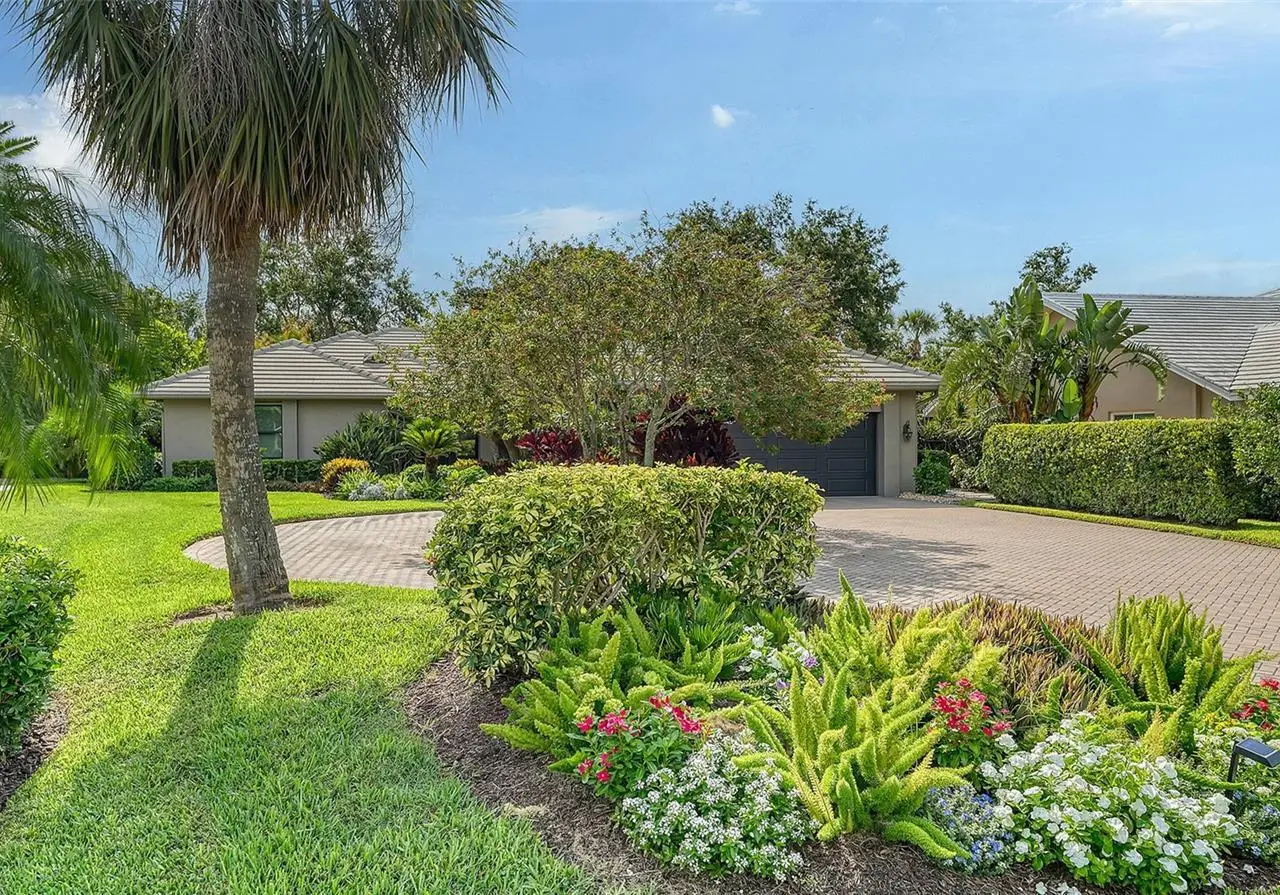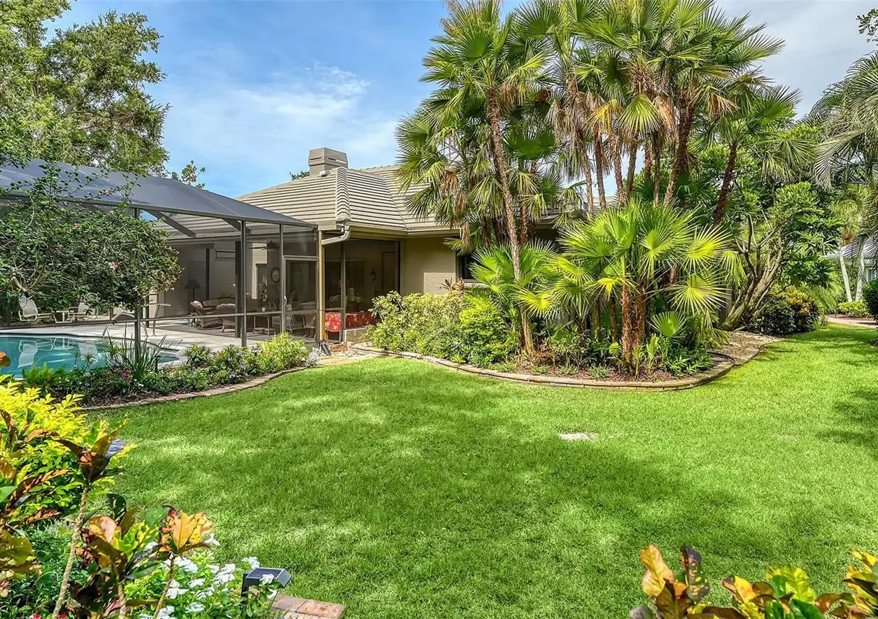 Located in Sarasota’s coveted and 24-hour guard-gated West of Trail community, The Landings, this beautifully reimagined 3-bedroom, 3-bath residence with a bonus room offers refined coastal living and peace of mind through extensive, high-quality updates. Situated on a lushly landscaped lot with mature trees and privacy and not in a flood zone, this 2,921 sf home blends timeless architecture with thoughtful modern improvements, all just minutes from Siesta Key’s world-famous beaches and Downtown Sarasota. Hurricane-impact windows were added in 2023, and the newer roof and updated PVC plumbing offer structural integrity and long-term value. Design upgrades include porcelain tile flooring and beautiful custom wood cabinetry and built-ins. The fully updated kitchen features premium stainless appliances, Silestone counters, stylish cabinetry, a picture frame window overlooking the beautiful garden, a convenient pass thru window to the lanai, and custom walk-in pantry. The adjacent dining room is perfect for entertaining and the formal living room with its high ceiling is anchored by a woodburning fireplace with tiled hearth and built-ins. The split-bedroom floor plan offers privacy and functionality, with all 3 bedrooms, (one currently outfitted as a convenient home office with solid wood built-ins) boasting custom walk-in closets and lovely bathrooms. A spacious bonus room is light and bright and includes a redesigned alcove with floor-to-ceiling custom built-ins to house books, media, or art. Every inch of this home reflects quality, style, and enduring craftsmanship. The interior of the home flows seamlessly to the elegant and serene exterior where you will enjoy the professionally redesigned landscape with exquisite plantings, brick paver driveway, meandering walking path, elevated relaxation area, peaceful fountain, and custom exterior lighting. The spectacular pool area underwent a major renovation in 2020 which included resurfacing with Pebble Tec (lifetime warranty), installation of a new heater and pump, and the addition of a stylish new Italian tile surround. The lanai was rescreened in 2023 and the deck was upgraded with a high-performance Pro Tech surface for durability and beauty. Located behind the gates of The Landings, residents enjoy tree-canopied streets, a nature trail leading to Roberts Bay, and optional membership to the Landings Racquet Club, offering tennis, pickleball, a heated pool, fitness center, and clubhouse. With proximity to A-rated schools, Southside Village, Sarasota Memorial Hospital, and the cultural amenities of downtown Sarasota, this property is a rare opportunity to own a truly move-in-ready home in one of Sarasota’s most sought-after communities