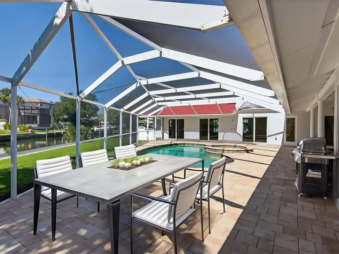 Experience the ultimate waterfront lifestyle in this beautifully renovated Siesta Key home, offering 268 feet of direct waterfront and immediate access to the Intracoastal Waterway—no bridges to the bay. Designed for both boating enthusiasts and luxury living, the private dock features two lifts, ideal for Gulf cruises, water sports, or sunset sails. This coastal residence spans 4,201 sq. ft., with five bedrooms, four-and-a-half baths, and a light-filled open floor plan that blends timeless design with modern luxury. The chef’s kitchen showcases custom cabinetry, quartz countertops, stainless steel appliances, and a large island for entertaining. The primary suite offers a spa-inspired bath and direct access to the pool terrace, while multiple outdoor spaces provide perfect settings for dining, relaxing, and enjoying the expansive waterfront lawn. Located on the north end of Siesta Key, minutes from the island via North Bridge, and close to Siesta Key Village and the world-famous beaches, this home delivers the pinnacle of island living and boating convenience.