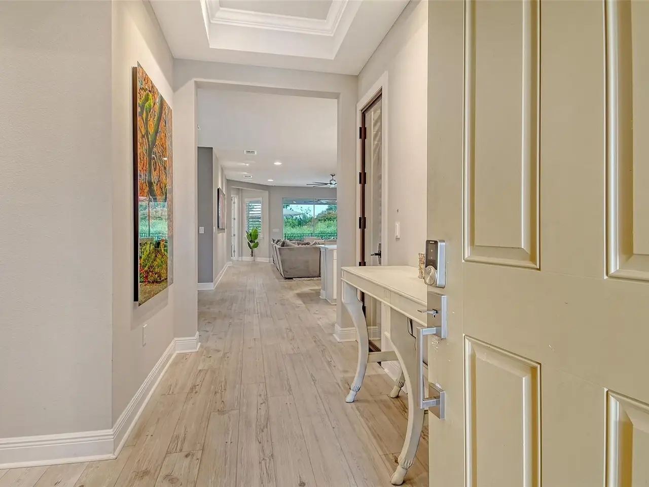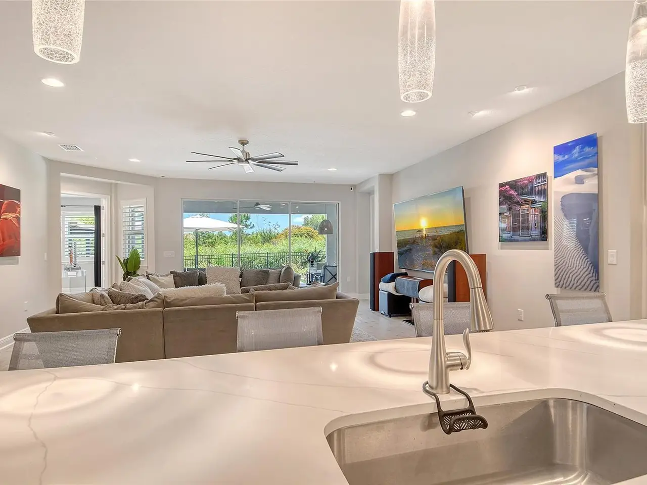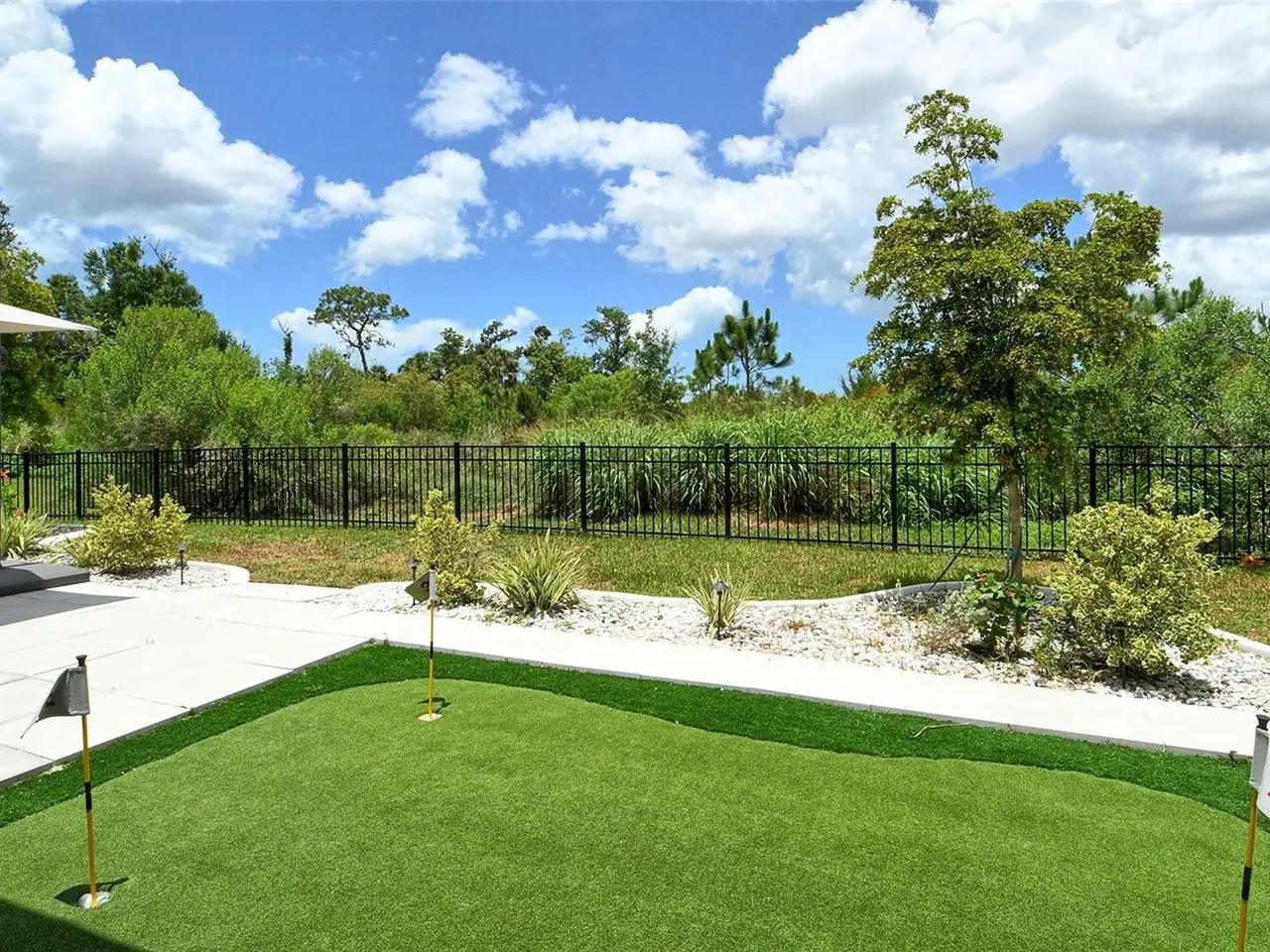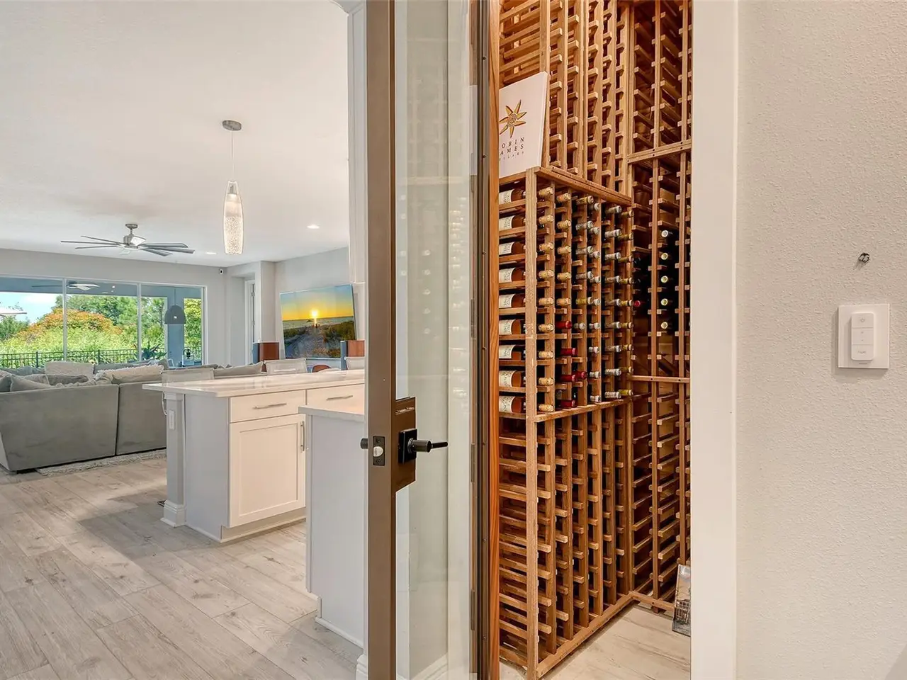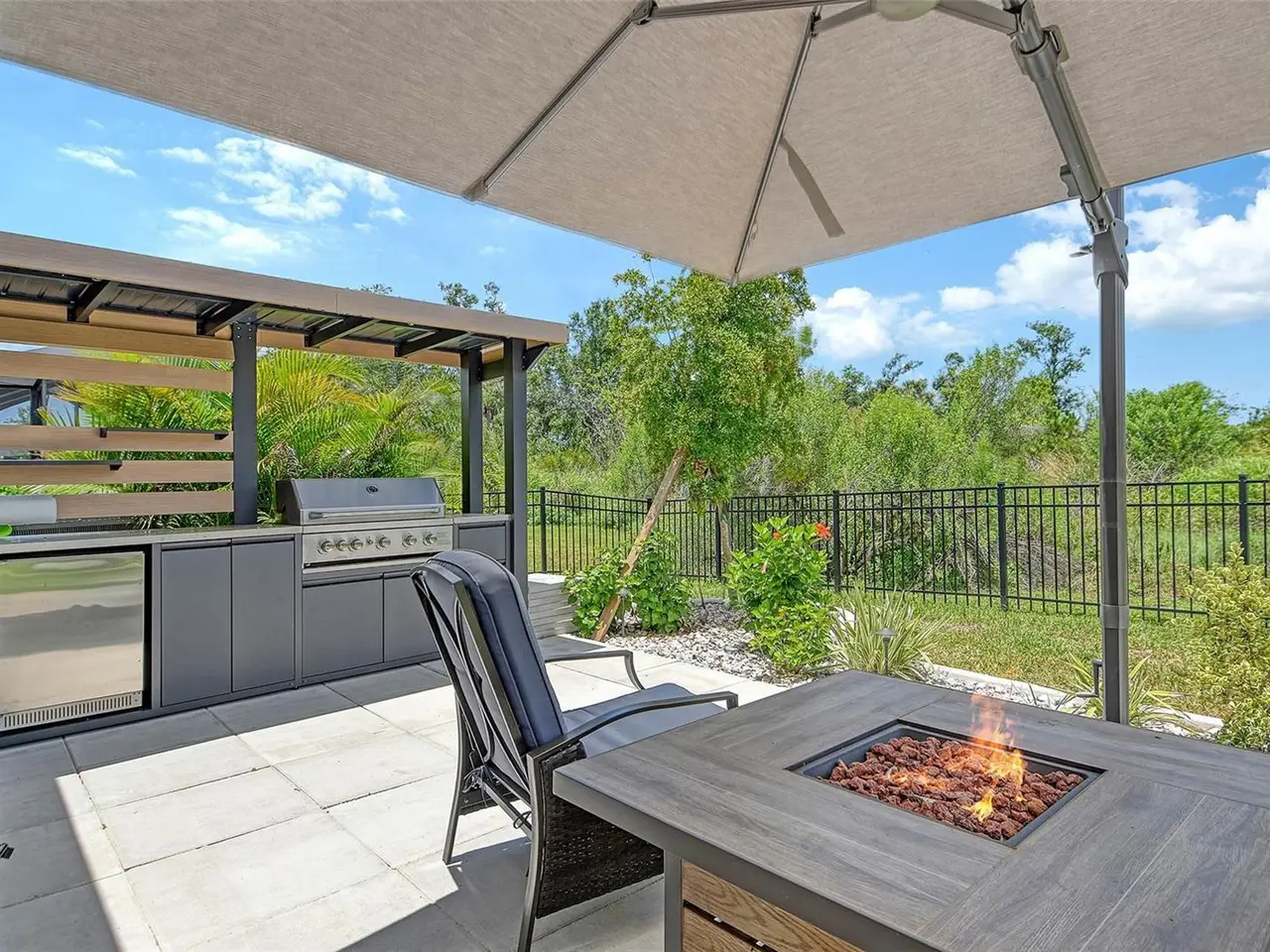 Stunning Coastal-Inspired Retreat in Gated Community! Welcome to this beautifully designed 3-bedroom, 3-bath home with spacious den/office, where style, comfort, and thoughtful upgrades come together in perfect harmony. From the moment you arrive, you'll be impressed by the tile roof, lush landscaping, and paved driveway leading to a spacious 3-car garage with epoxy floors. Inside, the open floor plan is perfect for entertaining, featuring coastal-cozy colors, luxury vinyl plank flooring, and over-the-top designer lighting throughout. The light and bright kitchen shines with a fabulous pantry and flows effortlessly into the main living areas. The upgraded A/C system ensures year-round comfort. The primary suite is a peaceful escape with a fireplace, amazing walk-in closet, and tranquil preserve views. One of the additional bedrooms features a private en-suite bath and walk-in closet, making it perfect for guests or extended family. A large laundry room, keyless entry, and hurricane shutters add everyday ease. Wine lovers will appreciate the newly built, climate-conscious wine cellar, a unique and elegant addition for entertaining and storage. Step outside to your expansive private outdoor lanai area designed to enjoy a true-Florida lifestyle, with an outdoor kitchen featuring a built-in gas grill and refrigerator with a private putting green, and a fenced, open yard - all designed to enjoy Florida's gorgeous sunsets in comfort and style. Perfectly located near shopping, dining, world-class beaches, and downtown Sarasota, this one-owner home is part of a gated community with excellent amenities and low HOA fees. This exceptional property truly has it all - luxury, location, and lifestyle. Don't miss your chance to call it home!