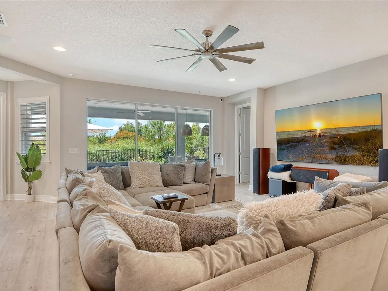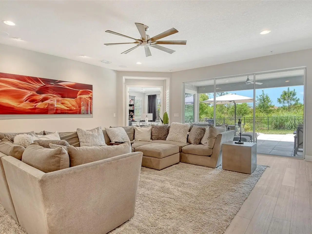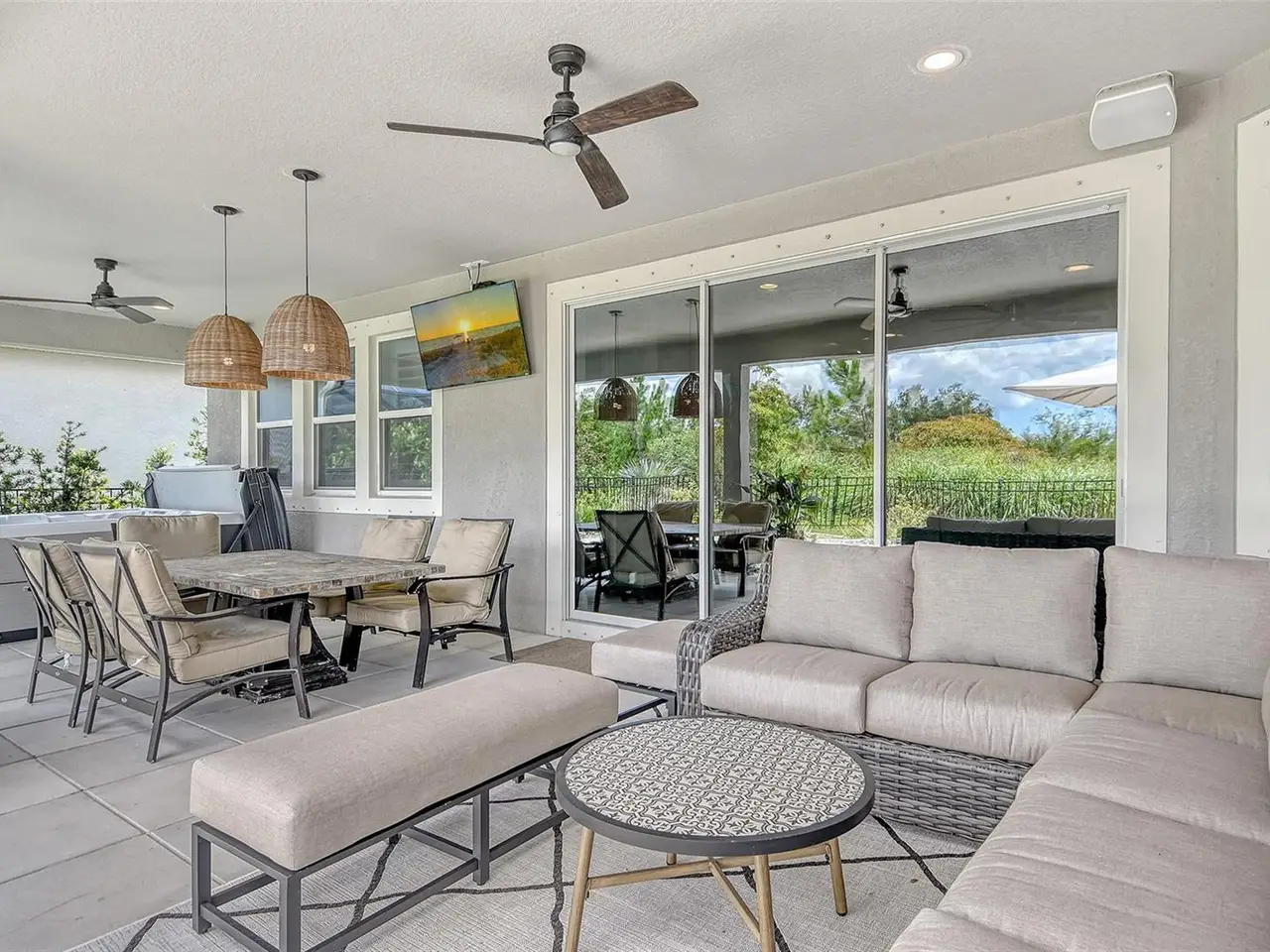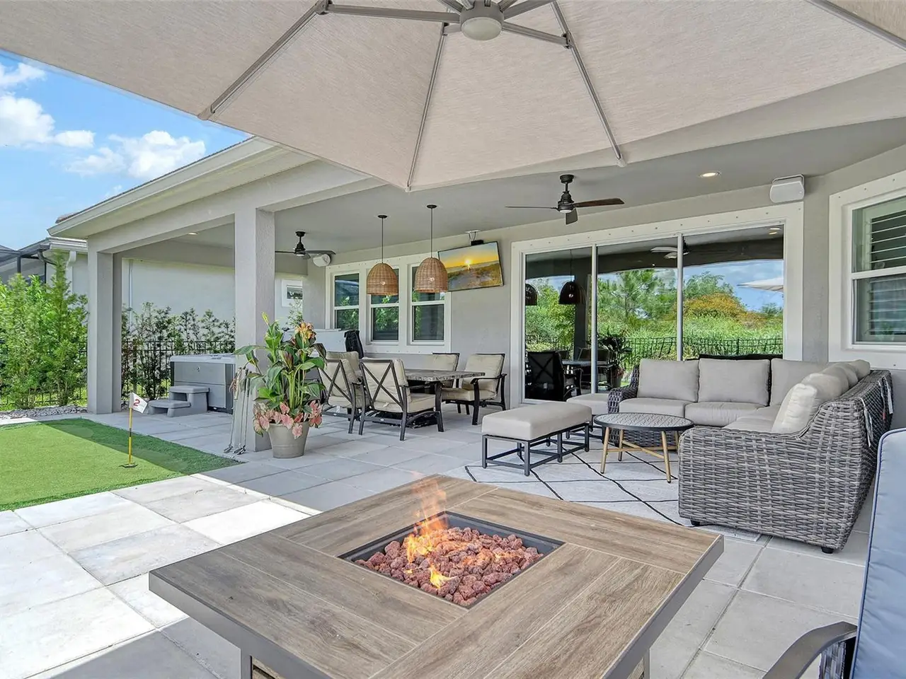 Stunning Coastal-Inspired Retreat in Gated Community! Welcome to this beautifully designed 3-bedroom, 3-bath home with spacious den/office, where style, comfort, and thoughtful upgrades come together in perfect harmony. From the moment you arrive, you'll be impressed by the tile roof, lush landscaping, and paved driveway leading to a spacious 3-car garage with epoxy floors. Inside, the open floor plan is perfect for entertaining, featuring coastal-cozy colors, luxury vinyl plank flooring, and over-the-top designer lighting throughout. The light and bright kitchen shines with a fabulous pantry and flows effortlessly into the main living areas. The upgraded A/C system ensures year-round comfort. The primary suite is a peaceful escape with a fireplace, amazing walk-in closet, and tranquil preserve views. One of the additional bedrooms features a private en-suite bath and walk-in closet, making it perfect for guests or extended family. A large laundry room, keyless entry, and hurricane shutters add everyday ease. Wine lovers will appreciate the newly built, climate-conscious wine cellar, a unique and elegant addition for entertaining and storage. Step outside to your expansive private outdoor lanai area designed to enjoy a true-Florida lifestyle, with an outdoor kitchen featuring a built-in gas grill and refrigerator with a private putting green, and a fenced, open yard - all designed to enjoy Florida's gorgeous sunsets in comfort and style. Perfectly located near shopping, dining, world-class beaches, and downtown Sarasota, this one-owner home is part of a gated community with excellent amenities and low HOA fees. This exceptional property truly has it all - luxury, location, and lifestyle. Don't miss your chance to call it home!