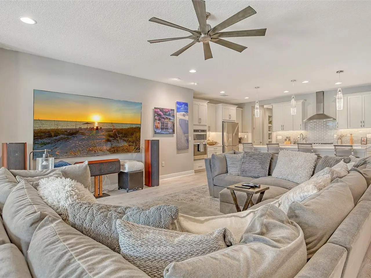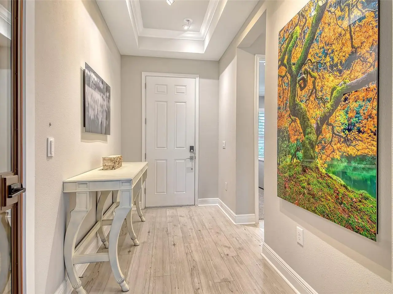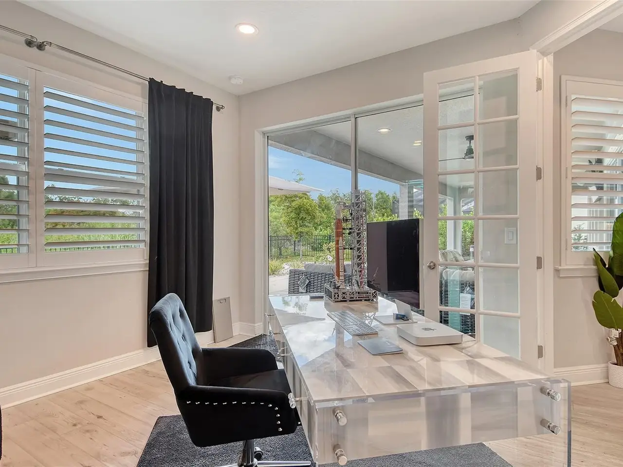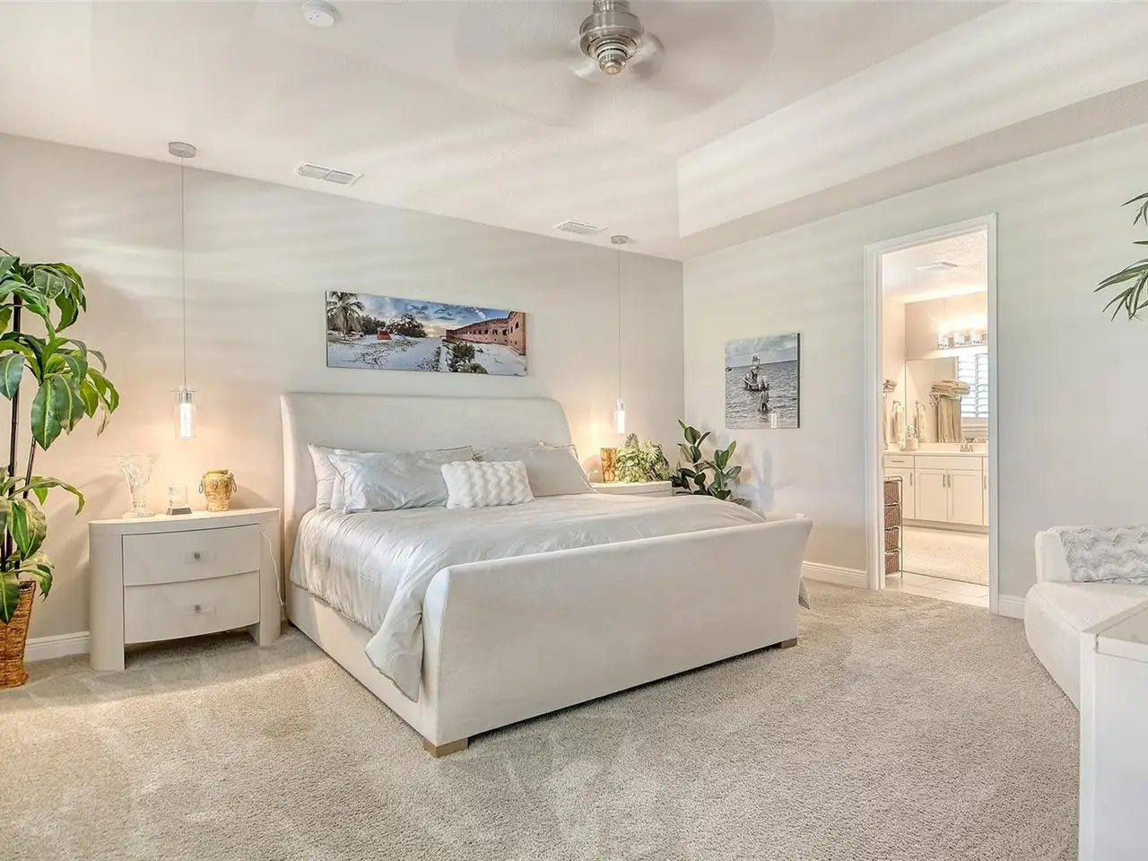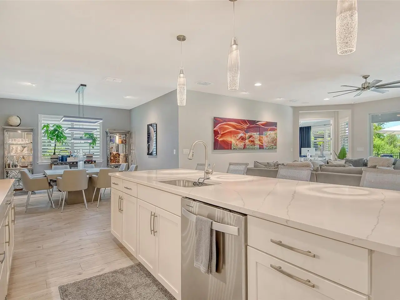 Stunning Coastal-Inspired Retreat in Gated Community! Welcome to this beautifully designed 3-bedroom, 3-bath home with spacious den/office, where style, comfort, and thoughtful upgrades come together in perfect harmony. From the moment you arrive, you'll be impressed by the tile roof, lush landscaping, and paved driveway leading to a spacious 3-car garage with epoxy floors. Inside, the open floor plan is perfect for entertaining, featuring coastal-cozy colors, luxury vinyl plank flooring, and over-the-top designer lighting throughout. The light and bright kitchen shines with a fabulous pantry and flows effortlessly into the main living areas. The upgraded A/C system ensures year-round comfort. The primary suite is a peaceful escape with a fireplace, amazing walk-in closet, and tranquil preserve views. One of the additional bedrooms features a private en-suite bath and walk-in closet, making it perfect for guests or extended family. A large laundry room, keyless entry, and hurricane shutters add everyday ease. Wine lovers will appreciate the newly built, climate-conscious wine cellar, a unique and elegant addition for entertaining and storage. Step outside to your expansive private outdoor lanai area designed to enjoy a true-Florida lifestyle, with an outdoor kitchen featuring a built-in gas grill and refrigerator with a private putting green, and a fenced, open yard - all designed to enjoy Florida's gorgeous sunsets in comfort and style. Perfectly located near shopping, dining, world-class beaches, and downtown Sarasota, this one-owner home is part of a gated community with excellent amenities and low HOA fees. This exceptional property truly has it all - luxury, location, and lifestyle. Don't miss your chance to call it home!