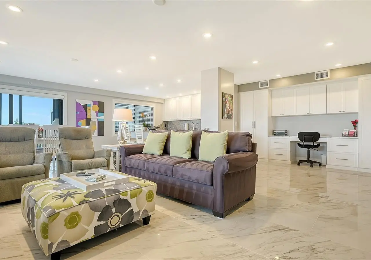 Stunning Corner View Condo! Your Beachfront Retreat Awaits! Welcome to this MUST-SEE, fully updated corner unit at Lido Surf & Sand, offering 1,456 sq.ft. of luxurious living with breathtaking views! This turn-key, fifth-floor residence boasts North, Northwest, and East-facing vistas of the sparkling Gulf waters, the serene Intercoastal Waterway, and the dynamic city skyline. With a sophisticated coastal design, this condo perfectly blends relaxation and elegance, offering the ultimate beachfront lifestyle. Inside, the open floorplan is designed with entertaining in mind, featuring a bright and airy Great Room that seamlessly flows into a spacious sunroom/screened lanai. Here, the tropical breezes and the soothing sounds of waves crashing on the shore will immediately put you at ease - your own personal slice of paradise! Whether enjoying morning coffee or evening sunsets with a glass of wine, this expansive lanai is truly a highlight of the home. The kitchen is a chef's dream, complete with a large island with granite countertops, updated cabinetry, a built-in desk with file cabinets, and abundant storage space. The split floorplan includes two spacious bedrooms and two full bathrooms, with the primary suite offering a serene retreat, featuring an ensuite bath and a walk-in closet. Additional features include remote-controlled shades on sliding glass doors, plantation shutters in both bedrooms, crown molding, and an array of modern updates like a 2023 A/C, a tankless hot water heater, and an in-unit washer and dryer. Lido Surf & Sand delivers resort-style amenities that will elevate your lifestyle, including a beautiful beachfront pool and spa with poolside grills, a tropical dining portico, a sauna, fitness center, and shuffleboard. The building also offers secure underbuilding parking, climate-controlled storage, on-site management, and plenty of guest parking. The location is unbeatable, just blocks from the world-class shopping and dining of St. Armand's Circle, across from a nature preserve perfect for kayaking, paddle boarding, and fishing, and steps from the white sands of Lido Key. Whether you're looking for a primary residence or an exceptional vacation home, this condo is an absolute must-see. Start your day with a cup of coffee on your incredible lanai, and end it with a glass of wine as you watch the sun set over the Gulf. Live among multimillion-dollar complexes and experience the best of Lido Key. Live the dream. Love where you live. With its prime location, luxurious upgrades, and resort-style amenities, this condo offers the perfect blend of comfort and convenience. Experience the ultimate beachfront lifestyle at Lido Surf & Sand - your dream home is waiting. Call for more details and to schedule your private tour.