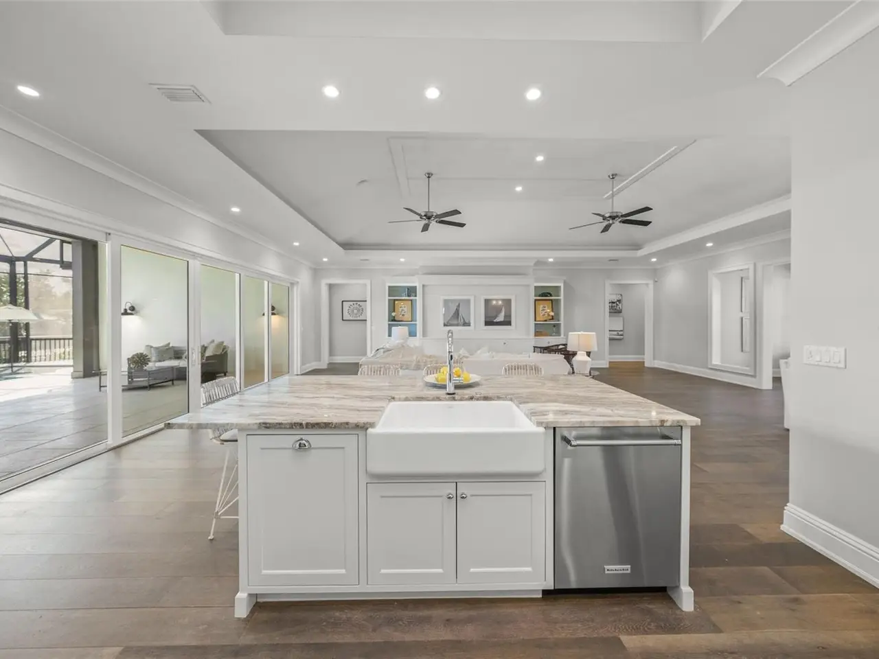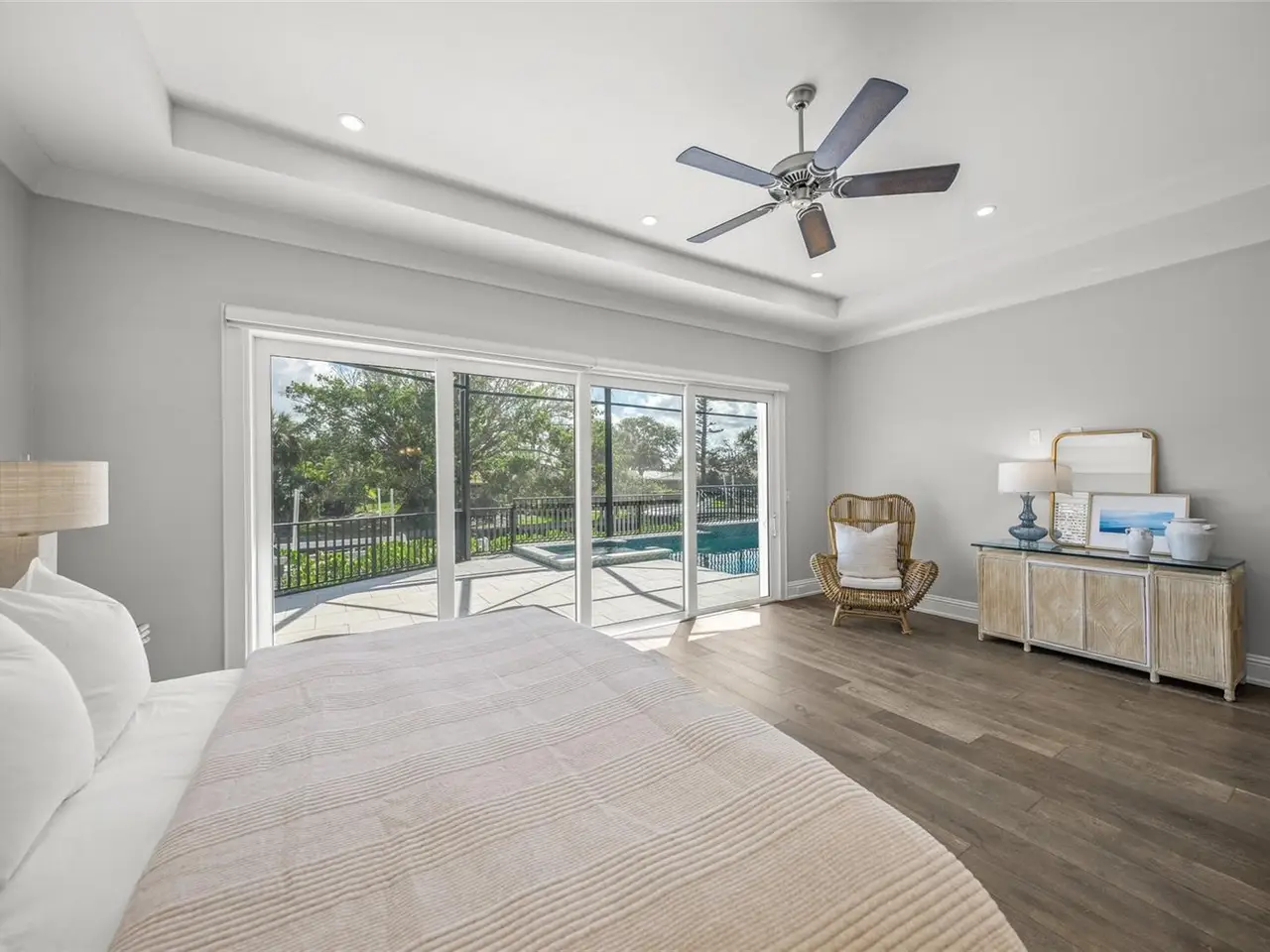 LOCATION, LOCATION, LOCATION !!! Live like a Lottery Winner on the Crystal Sands & Aqua Waters of Siesta Key. Literally, You can walk one block to be with the playful dolphins at the #1 Beach in the USA, or out your back door, to spend the day on the Intercoastal Waterway or the Gulf of America with two boats on lifts, and/or fish off the dock and watch Manatees in the Grand Canal. This is not simply the best location, but this custom-built in 2016 West Indies style home is a fortress all on one level, and is well above flood plain. "High and dry" through the "storms of the century" in 2024. Beautiful, engineered hardwood floors, Custom trim and many unique and interesting and unusual design features make this home special indeed! Everything has been freshly painted inside & out. Custom cabinetry and built-ins abound, as well as several new appliances, including a True Ice Maker to augment your beach, pool, boat and sunset happy hour. Three large En-suite Bedrooms. Four full Baths, a Den/Office convertible as an 4th bedroom with murphy bed, an Open Concept Family room, Dining room & Kitchen, and an extra-large Great Room make living spacious and easy. Also, large sliding glass doors extend living spaces to a huge, roofed and open screened Lanai which adds tons of shaded and sunny living space. All hurricane rated extra heavy duty PGT doors and windows, with many casement opening windows for those spring, fall and winter "open window/curtain blowing" gulf breeze days. The 3-car garage with a beautiful and durable epoxy floor has a very high ceiling which allows 2 more cars to be added on lifts for a total of 5 vehicles for the enthusiast. Climate controlled enclosed attic storage is available above the rear part of the garage. Both air conditioning systems, hot water heater, refrigerator and ice maker have been replaced in past year. The Large free form pool and spa have brand new high-end WIFI controllable Pentair pool pump & heater & auto chlorinator. Both Boats as well as Professional Decorator staged furniture, decor and pictures may be available for separate purchase for a "Turn-Key" easy move-in. The 3-car garage with an epoxy floor has a very high ceiling which allows 2 more cars to be added on lifts for a total of 5 vehicles for the enthusiast. Climate controlled enclosed attic storage is available above the rear part of the garage. Both air conditioning systems and hot water heater replaced in past year. The large free form pool and spa have new high end Pentair pool pump & heater & auto chlorinator. Both boats as well as professional Decorator staged furniture, decor, and pictures may be available for separate purchase for "Turn-Key" possession.