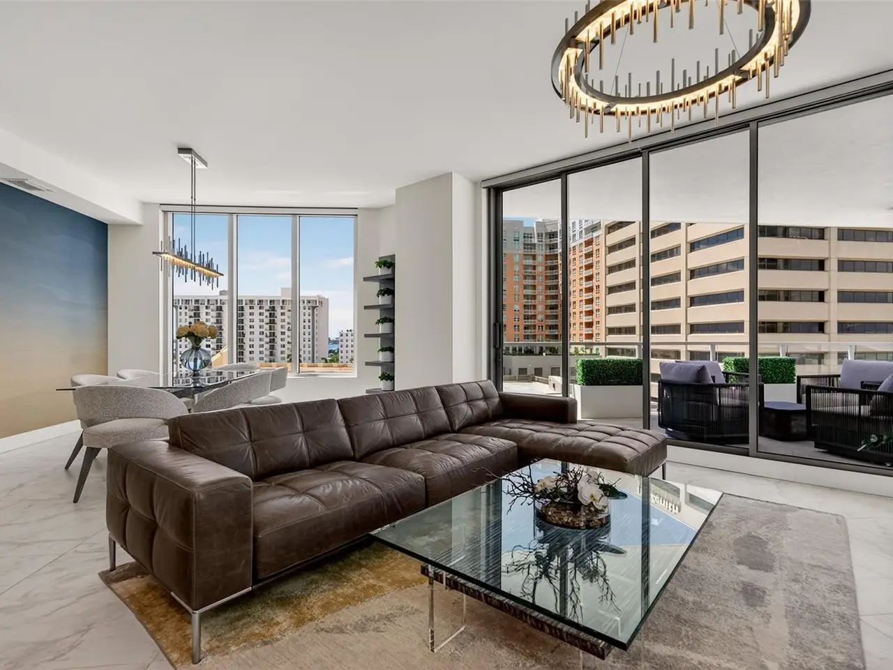 Design perfection at The Mark in this exquisitely designed and impeccably maintained three-bedroom residence with dramatic art gallery entrance. From the moment you step inside, walls of glass frame sweeping vistas of the sparkling city skyline and Sarasota Bay. The home features two private and spacious balconies inviting you to enjoy morning coffee or sunset cocktails. The open living, dining, and kitchen spaces are filled with natural light from full height sliding glass doors that open onto the terrace. Electronic window treatments add a refined touch, allowing you to balance privacy with soft daylight. The sophisticated den with custom shelving and its picturesque view creates the perfect home office or cozy reading nook. The primary suite is a peaceful sanctuary with its own private balcony, custom-designed closet, and spa-like bath featuring dual vanities, lighted mirrors, and a spacious frameless glass shower. Two additional en-suite bedrooms offer comfort and privacy for family and guests. Touches of sophisticated designer wall paper and custom lighting throughout the home. The chef’s kitchen is both stylish and functional, featuring Nolte Premium European cabinets, quartz countertops, Euro Dark/High Gloss soft-close doors, sliding shelves, subway tile backsplash, and Italian-honed porcelain floors. This home is like a brand-new residence with every detail perfectly executed. For convenience and peace of mind, the condo includes a temperature-controlled storage unit on the same floor as residence, two side-by-side gated parking spaces, and access to two electric vehicle charging stations. World class amenities include the 5th floor amenity deck sporting a 65-foot resort style heated saltwater pool and spa, lounge area, fire pit, outdoor grills, high tech fitness center, spin room and a club room with fire place, bar, billiards, catering kitchen and newsroom. The concierge service provides convenience and security. Experience the epitome of urban living in Sarasota. Indulge in the vibrant arts and culture scene, fine dining and upscale shopping, all within walking distance.