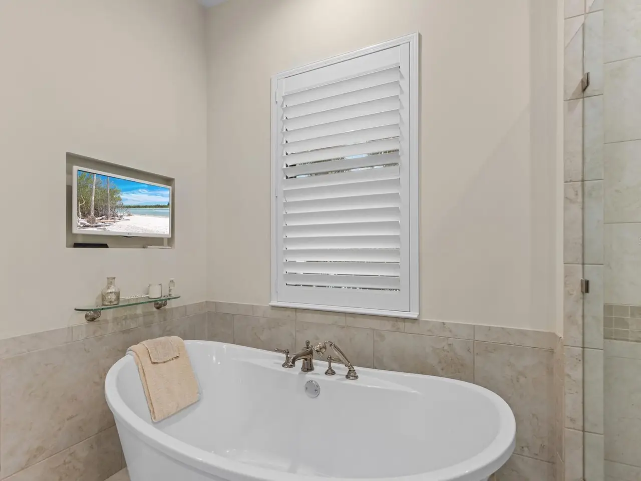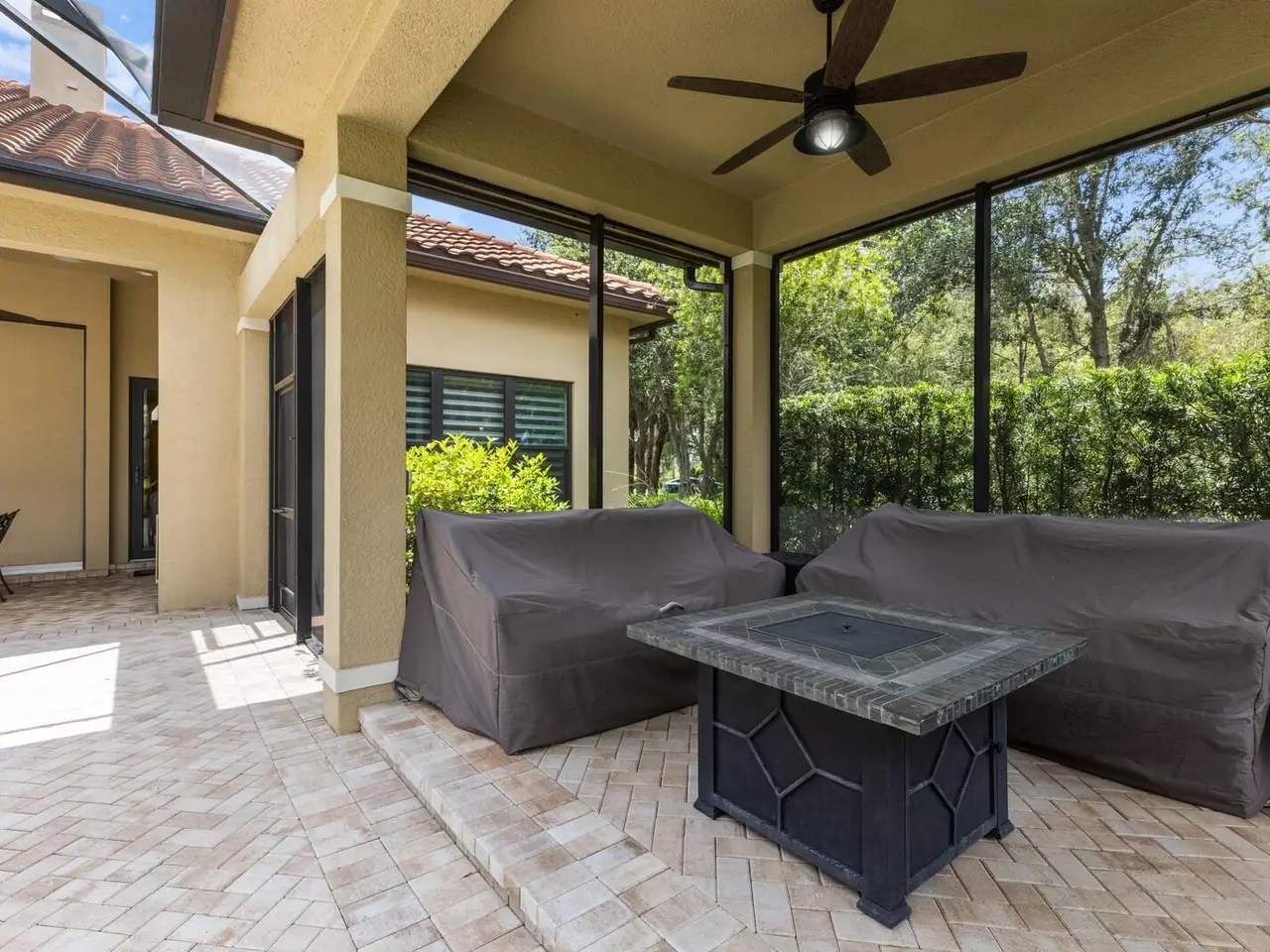 Nestled gracefully on a cul-de-sac within the prestigious Founders Club, this exceptional London Bay custom home offers a harmonious blend of sophistication and comfort. With three spacious bedrooms and three well-appointed bathrooms, the residence caters gracefully to both family and guests. Every element of this home, from its spacious rooms to its elegant finishes, was crafted by its current owner with care and attention to detail. Thoughtfully designed for those who appreciate versatility, the home boasts an inviting open floor plan. The main living area flows seamlessly into a large kitchen with high-end appliances and an adjoining eating space, perfect for gatherings and everyday living, while a separate yet inclusive dining room promises memorable evenings and special celebrations. Natural light floods the interiors through tall windows, illuminating the tasteful architectural details and accentuating the tall ceilings. Ceramic tile floors guide you through the main living spaces, while custom cabinetry and designer fixtures add a layer of sophistication. The generous primary suite features hardwood floors, dual walk-in closets and a spa-inspired bathroom with a soaking tub, walk-in shower, and twin sinks framing a makeup station providing luxurious comfort for all. Two additional guest suites are thoughtfully separated from the main suite, and from each other, ensuring a restful haven for visitors. A dedicated media room awaits for immersive entertainment experiences, and a tranquil study provides a private retreat for work or reflection. Step outside to the enclosed pool area, where a pleasant backyard unfolds beyond, offering serene views and complete privacy. The poolside is complimented by a summer kitchen as well as a separate cabana (currently boasting a firepit and comfortable couches), ideal for alfresco evenings and quiet conversations under the stars. Modern conveniences abound, including smart home features, wireless motorized window blinds and semi-sheer shades for privacy on sliding doors and large window openings, a whole-house generator for complete peace of mind, an air-conditioned garage (incorporating a Tesla charging station), and finally a rare Florida basement offering additional storage options. The community has just 262 home sites set around the Robert Trent Jones Jr. golf course and features a clubhouse, tennis courts, a recreation center and children’s playground, and offers an active year-round social calendar. It lies just three miles from Interstate 75, and perhaps two more to the delights of University Town Center, while downtown Sarasota and its famed beaches are only a short distance further. Experience refined living and unparalleled tranquility in The Founders Club - your extraordinary opportunity awaits.