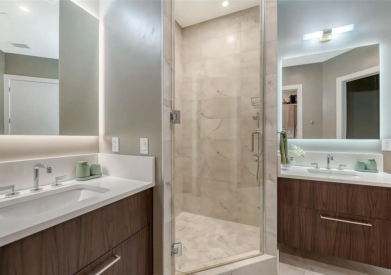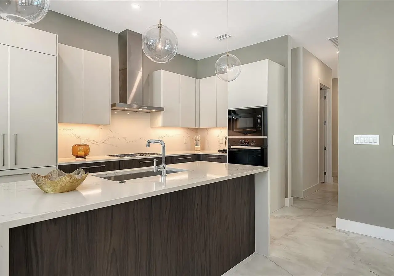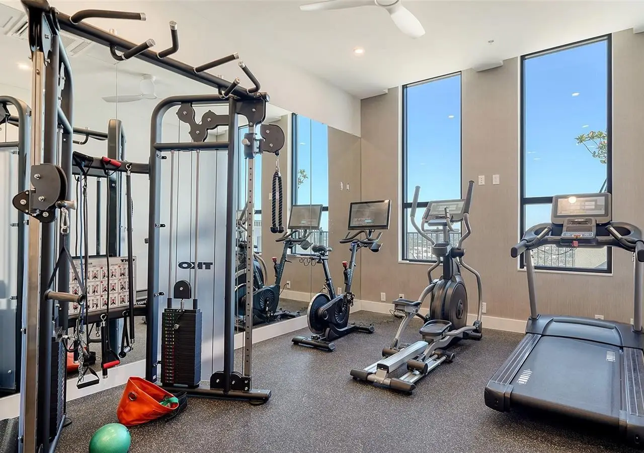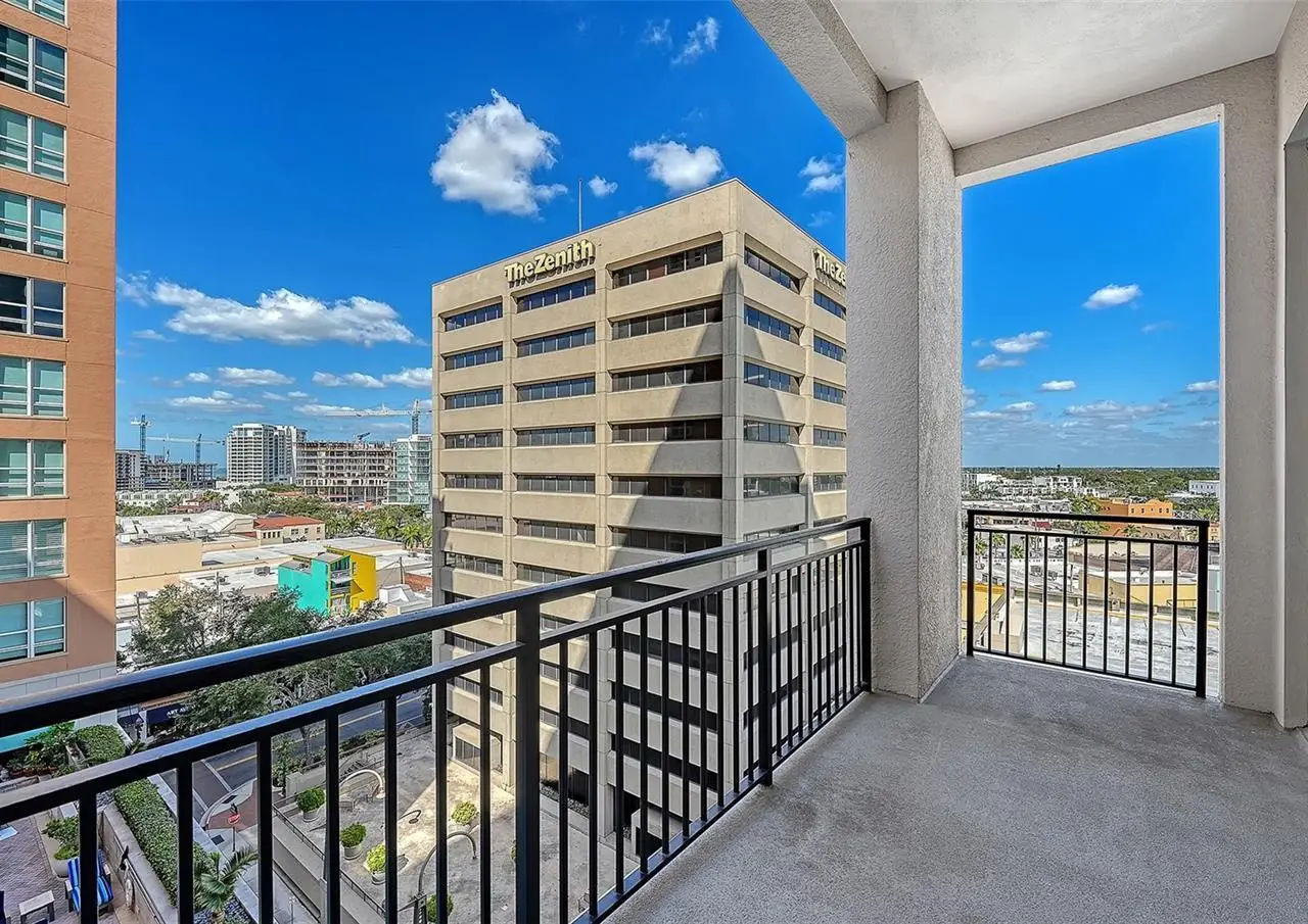 Impeccably maintained and exquisitely appointed, this corner residence embodies modern chic in Sarasota's most sought-after downtown location. Built in 2024 and defining contemporary urban living, this impeccably maintained 2-bedroom, 2-bath, 1,337 sq. ft. home reflects curated luxury. The open floorplan showcases Italian custom cabinetry, Miele appliances with a gas cooktop, and upgraded quartz countertops with a full backsplash and waterfall island. Sleek porcelain tile flooring flows throughout, while custom lighting, designer paint, and a striking fireplace with feature wall create an ambiance of understated glamour. Both bedrooms offer custom-built closets, with a Murphy bed in the second for versatile use. Automated electric blinds and custom drapery pockets enhance the clean, contemporary aesthetic. Home is complete with a temperature-controlled storage locker and a terrace that is wired for an electric barbecue. Residents of this exclusive boutique building enjoy 24-hour staffed service and access to a spectacular rooftop amenity level, featuring an elegant club room, fitness center, and saltwater pool - all framed by sweeping views of the city skyline and Sarasota Bay. The result is a tranquil retreat above the vibrant downtown scene, offering the perfect balance of sophistication, comfort, and cosmopolitan energy.