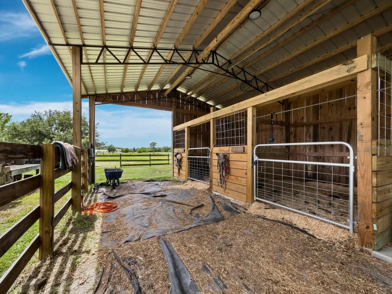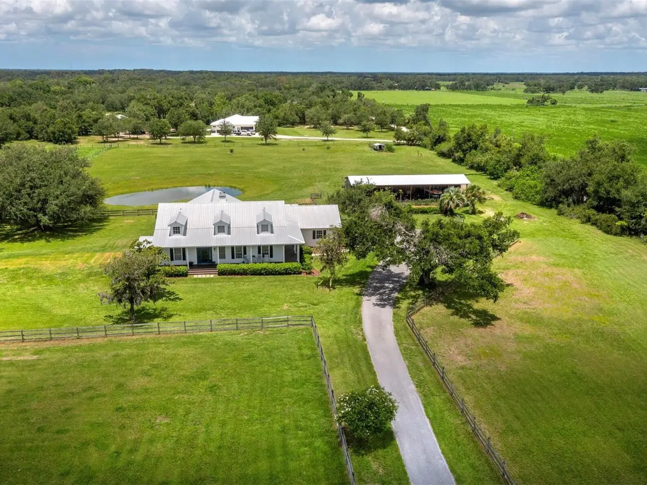 Have you been daydreaming of getting away from the hustle & bustle? Of a home with land, where you can look out your kitchen window and see your horses, cows, chickens, and garden? Well, look no further, because this is absolutely IT. A rare 10-acre parcel with a lovely, move-in ready home, plus a new pole barn with two stalls, all just minutes from the amenities of Sarasota; this kind of property is VERY few and far between. First, let's talk about the land: a beautiful rectangular parcel where just about every inch is usable, flat, and cleared, the possibilities are endless. Enjoy the two fenced paddocks with their lush grass, 2-stall barn, enclosed garden area, and bass & bluegill-stocked pond just as it is, or add more - maybe some beehives are your pleasure, or perhaps a greenhouse? Other areas are partially fenced so more paddocks will be easy to add if needed and there is space for all of it here! The house is a gorgeous & welcoming Cape-Cod-style farmhouse with a huge front porch. (This is the stuff dreams are made of, seriously.) Soaring ceilings, a rustic stone fireplace, wood flooring, and open & updated kitchen give an elegant feel that also stays nice & cozy. The split bedrooms & extra half bath are convenient, and the size of the main suite will thrill you: a spacious & bright bedroom, 2 big walk-in closets, and an airy, renovated bathroom complete with claw-foot tub - it is just perfect. Sliding doors lead to the huge covered back porch, with plenty of space to lounge, dine, and cook in the magnificent outdoor kitchen, featuring a built-in grill, sink, refrigerator, and your very own pizza oven! There is also an enclosed outdoor shower with hot water just off the porch. Functionally, the property offers HardieBoard siding, a newer AC, recently re-screened patio, and a brand-new septic field. The house is just 3 miles from the north entrance to Myakka State Park, 15 minutes from the freeway, and about 35 minutes will get you to downtown Sarasota. Don't wait to see this special home. It is truly one-of-a-kind and, if you love animals, growing & cooking your own food, and plenty of space to breathe, it is the perfect place for your next chapter.