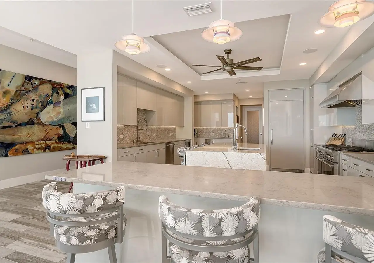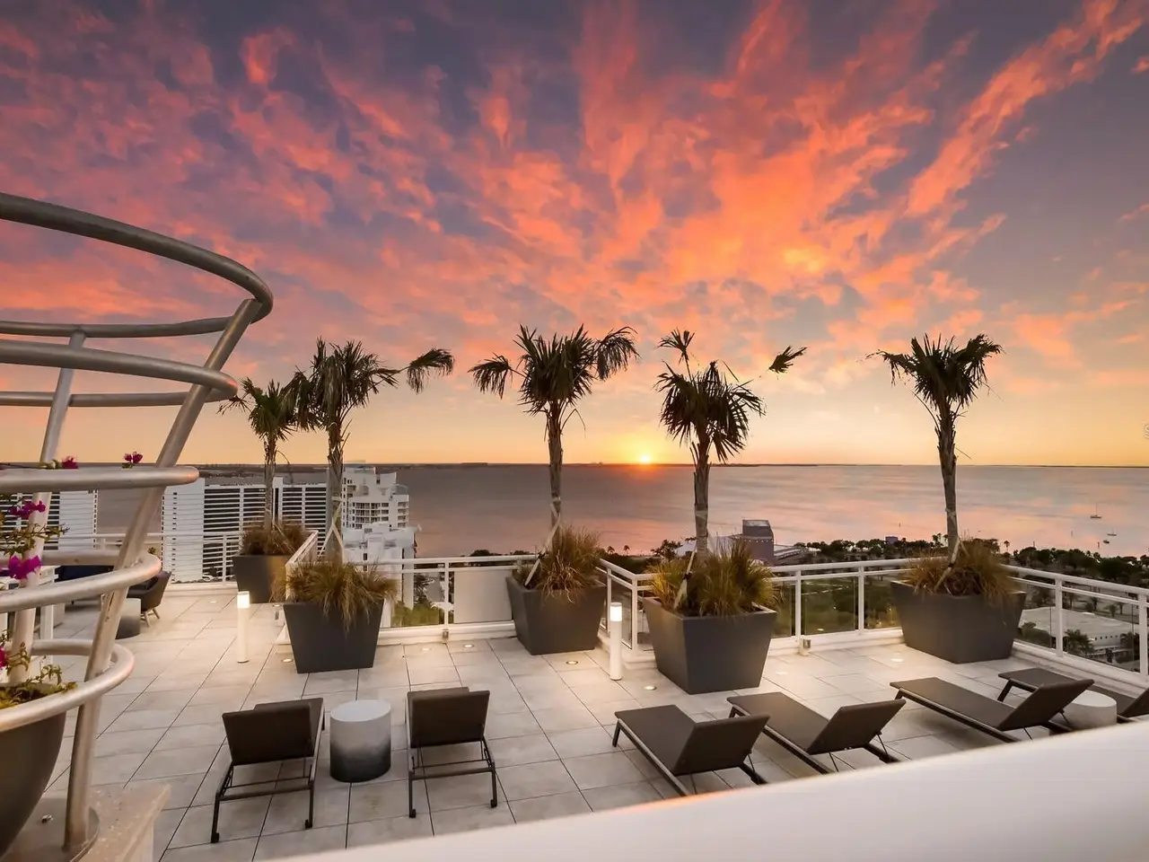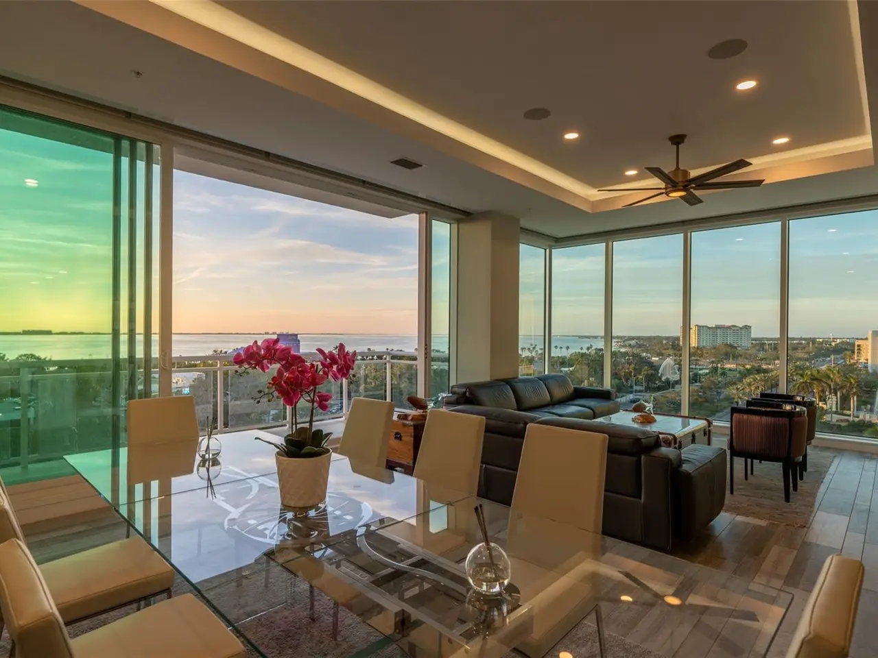 Welcome to your magnificent home in the sky at the sought-after & highly amenitized BLVD Sarasota which boasts some of the most breathtaking panoramic Bayfront and City views in all of Sarasota with second-to-none vistas, sunrises, & sunsets encapsulated by vast floor-to-ceiling impact windows and a 12' impact sliding door. This 8th floor condo in the desired 02 stack features 3 sprawling open-air terraces w/ glass railings & tile flooring, & boasts 3962 sf, 3 bedrooms, 3.5 baths & luxurious finishes & countless one-of-a-kind updates where no expense has been spared in design, material, finish, technology, or resident experience. A private access-controlled elevator opens directly into your foyer where the expansive open-concept great room & dining area & those stunning views meet the state-of-the-art Chef's kitchen. The beautiful open space includes a large working/social Caesarstone Quartz waterfall island & countertops, custom wet bar w/ Scotsman ice machine, 46 bottle Subzero wine fridge and Elkay martini-glass shaped bar sink, and chic Italian tile backsplash. High-quality stainless Thermador kitchen appliances featuring 3' refrigerator and 18" freezer, natural gas 6 burner with griddle range/dual oven, oversized hood, slide-out microwave, & upgraded dishwasher. Premium custom cabinetry w/ soft-close doors/drawers, under cabinet task lighting, & spacious pantry, complete the design forward space. 3 lavish & spacious bedroom suites each w/ private terrace access and luxurious en-suite baths w/ lighted mirrors. The primary is complete w/ spacious custom built-in with refrigerator, dual walk-in California closets & primary bath including glass/tile oversized shower w/ dual showerheads, walk-in soaking tub, floating dual sink vanities & premium cabinetry w/Caesarstone Quartz counters. A lovely powder room & separate laundry room w/ cabinetry, sink & Electrolux high-capacity front load washer/dryer with pedestals are conveniently located. Enhanced by Wicked Smart Homes, the state-of-the-art smart home system features Lutron lighting & motorized black-out & privacy shades, Sonos surround sound system w/ 6 amplifiers, in-wall subwoofer & other advanced automation, ensuring ultimate comfort/convenience. Other noteworthy residence features: Cove lighting, 8-foot-tall entry doors, solid-core interior doors many w/ custom glass, designer recessed light fixtures throughout. This unit is 1 of just a few w/ private 2-car garage (available under a separate contract) & 2 additional secure premium parking spaces & air conditioned private storage locker. BLVD, centrally located in the Rosemary District, w/ only 49 residences & its unique amenities set it apart from all other luxury condominiums on the Suncoast. Amenities include: Full building water softener, Rooftop infinity-edge pool & outdoor kitchen, fully staffed reception lobby & controlled building access, Wine Cellar w/ private lockers & wine tasting table, Pet Lawn & Grooming Station, Indoor Golf Driving Range, Owners Lounge, Conference Center & state-of-the-art Fitness Center. BLVD residents are only an elevator ride away from 1000 North, a members-only dining Club opening in 2025. Minutes to #1 rated Siesta Key Beach, retail shopping at St Armand's & all that downtown Sarasota has to offer. Rarely does a home of this caliber become available - don't miss the chance to own a piece of Sarasota's most coveted address.