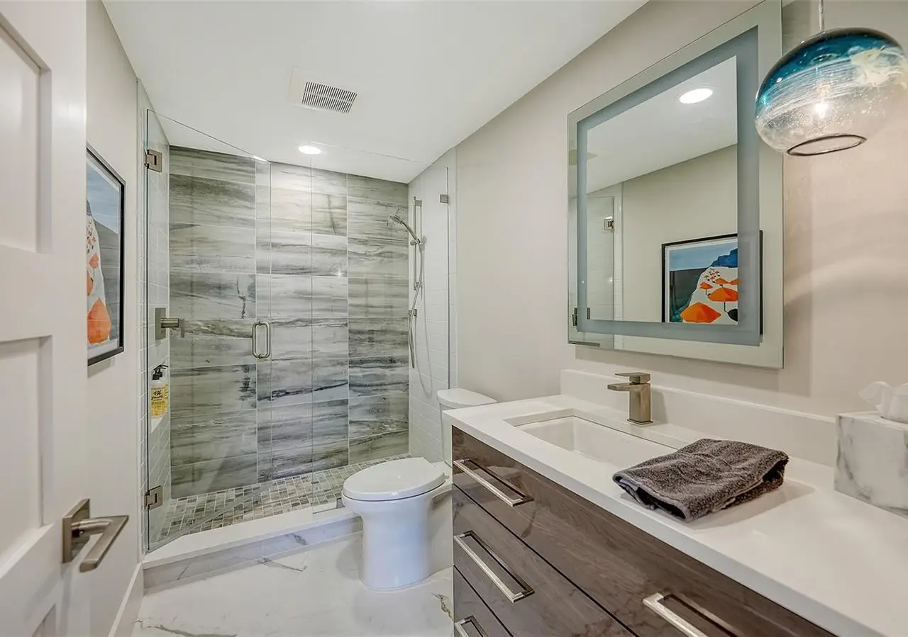 Large format porcelain tile throughout