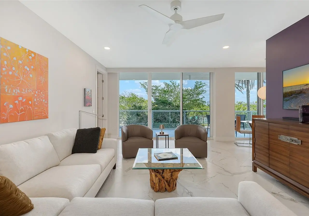 Cosmopolitan and refined, luxury living at L' Elegance. This condominium was recently renovated, and no stone was left unturned in the process. Large format porcelain tile throughout the condo flows seamlessly to the outdoors onto the terrace, creating an expansive indoor/outdoor living and entertaining space. Walls were removed and thoughtful built-ins were added to maximize every inch of space. In the kitchen, sleek European cabinetry, high-end appliances, Quartz counters with waterfall edge, under cabinet lighting, and dining space are some of the notable finishes. The bathrooms feature stylish backlit mirrors, modern vanities with ample storage, luxurious tile and fixtures. The apartment throughout lives like a 5-star hotel, embracing a minimal aesthetic with clean lines and uncluttered spaces, neutral tones and organic finishes. This condo is the perfect weekend retreat for an already local resident or year-round living. L' Elegance is one of the newer buildings on Lido and has an amazing lobby to welcome you and your guests to the beach and where residents will gather for sunsets and social events. The community also offers a beachfront lap pool, spa, fitness center, club room, on site manager and under building parking. The location is a quick drive to St. Armands dining and shopping, Longboat Key dining and shopping, and downtown Sarasota. No need to renovate, move in and enjoy Lido beachfront living today!