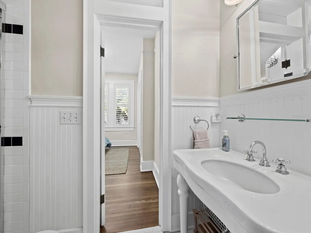 Situated in the highly desirable West of Trail neighborhood of Hudson Bayou, this fully restored 1922 residence is the perfect blend of historic charm and modern conveniences. The property offers 2,284 square feet with two bedrooms and two bathrooms in the main house, plus a one-bedroom, one-bathroom guest house. Renovations include a 2006 conversion of the garage into a guest house with a stucco privacy wall and Chicago brick driveway. In 2018, a spacious primary suite with double closets, a large bath, and French doors to a screened lanai was added. High ceilings, oversized impact windows, and refinished hardwood floors (2024) add to the home’s appeal. Recent updates include a recoated roof with a 10-year transferable warranty (2025), A/C (2023), water heater (2024), encapsulated crawlspace with dehumidifier (2024), foundation reinforcement with new support jacks (2024/2025), and hurricane-rated windows. The kitchen and dining area were fully renovated, featuring custom Calistoga cabinetry and designer appliances (2024/2025). Additional features include recessed lighting, custom closets, a Murphy bed, and a natural gas fireplace. A wellness room with an infrared sauna (2025) completes the interior. Exterior highlights include enhanced landscaping, three all-weather sheds, a pergola with natural gas grill hookups, and a serene brick courtyard surrounded by mature landscaping for privacy. The location is unparalleled, with proximity to Southside Village, the downtown Sarasota bayfront, St. Armands Circle, and the world-famous beaches of Lido and Siesta Key.