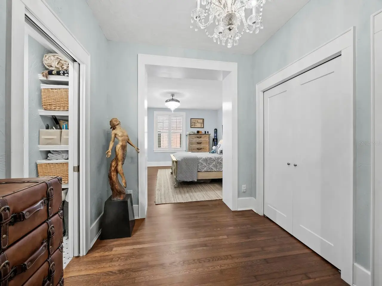 Situated in the highly desirable West of Trail neighborhood of Hudson Bayou, this fully restored 1922 residence is the perfect blend of historic charm and modern conveniences. The property offers 2,284 square feet with two bedrooms and two bathrooms in the main house, plus a one-bedroom, one-bathroom guest house. Renovations include a 2006 conversion of the garage into a guest house with a stucco privacy wall and Chicago brick driveway. In 2018, a spacious primary suite with double closets, a large bath, and French doors to a screened lanai was added. High ceilings, oversized impact windows, and refinished hardwood floors (2024) add to the home’s appeal. Recent updates include a recoated roof with a 10-year transferable warranty (2025), A/C (2023), water heater (2024), encapsulated crawlspace with dehumidifier (2024), foundation reinforcement with new support jacks (2024/2025), and hurricane-rated windows. The kitchen and dining area were fully renovated, featuring custom Calistoga cabinetry and designer appliances (2024/2025). Additional features include recessed lighting, custom closets, a Murphy bed, and a natural gas fireplace. A wellness room with an infrared sauna (2025) completes the interior. Exterior highlights include enhanced landscaping, three all-weather sheds, a pergola with natural gas grill hookups, and a serene brick courtyard surrounded by mature landscaping for privacy. The location is unparalleled, with proximity to Southside Village, the downtown Sarasota bayfront, St. Armands Circle, and the world-famous beaches of Lido and Siesta Key.