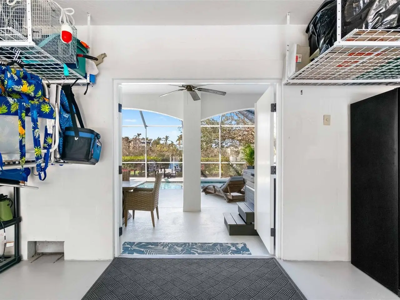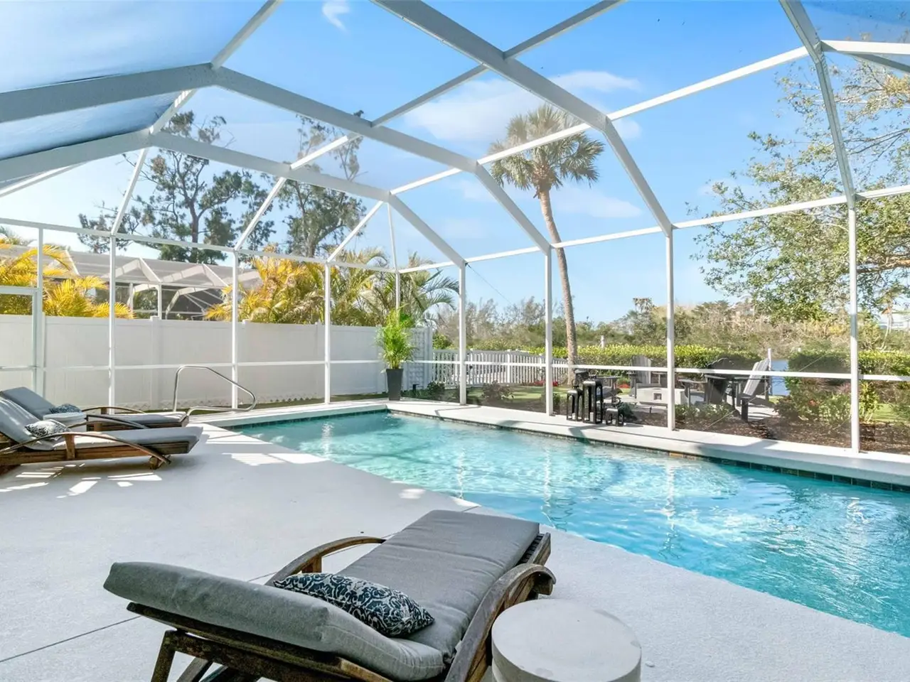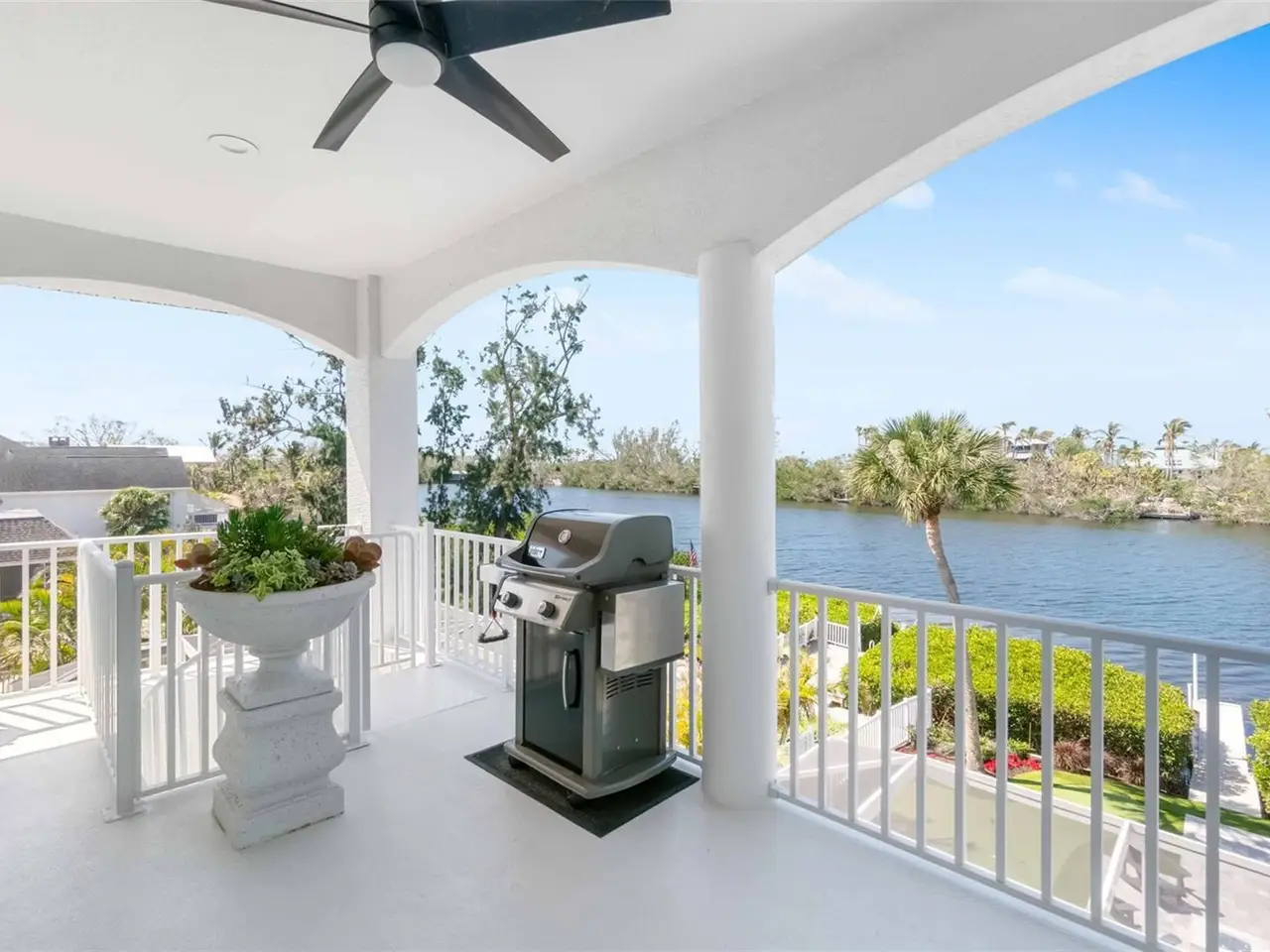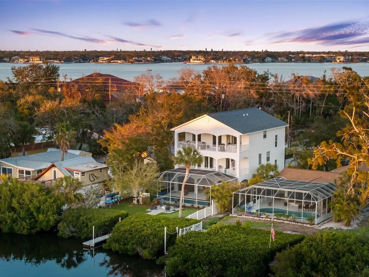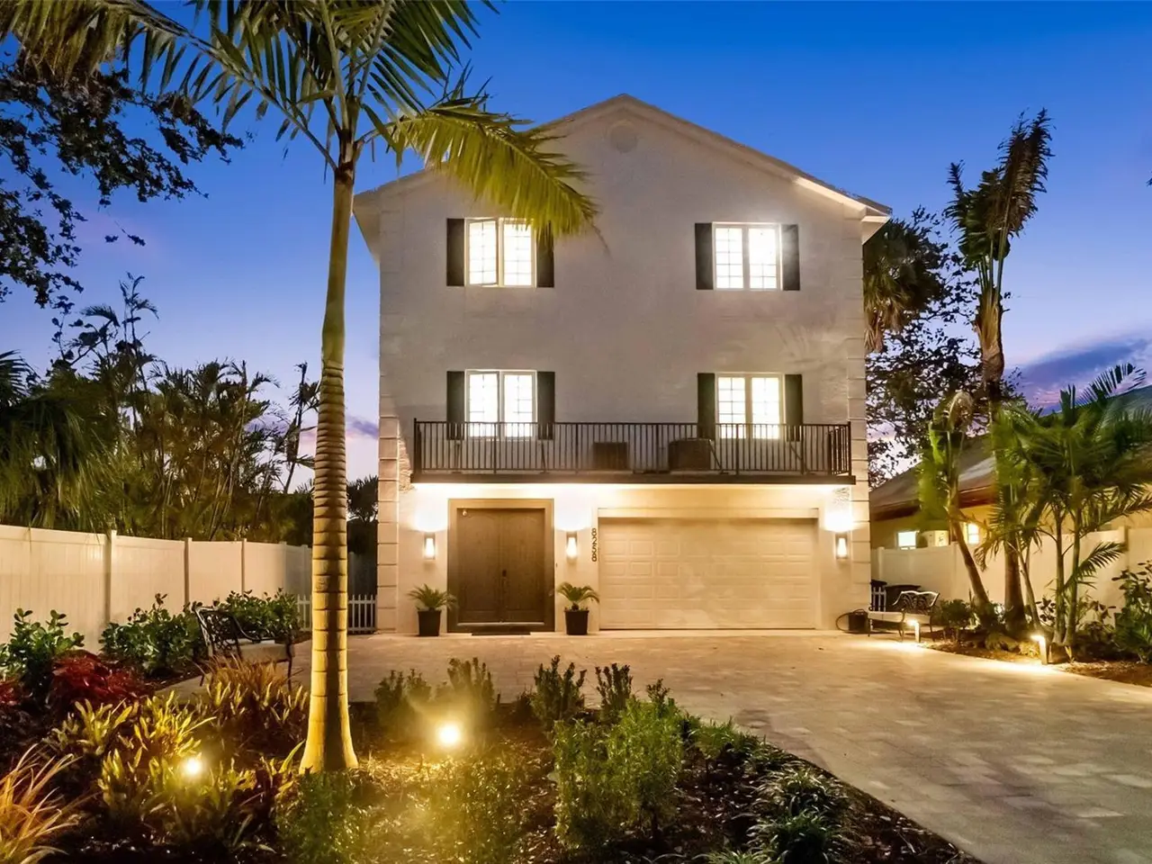 Exceptional waterfront living can be yours at this durable, block construction three-story single-family home set alongside the picturesque Heron Lagoon on Siesta Key. This home is completely move in ready after an extensive, luxury renovation. An attractive, paver drive flanked with lush landscaping offers ample parking while the four-car tandem garage is outfitted for the car enthusiast with a small non-conforming space and access to the backyard pool and spa. The first floor over parking features two en-suite bedrooms with large closets and the smart placement of the laundry closet. Stretching across the entire width of the home with a private office and relaxing, private terrace is the primary en-suite. The perfect place to rest, recharge and pamper with stunning views and a unique primary bath featuring dual vanities, soaking tub, walk-in shower and state of the art design. Ascend to the top floor by stairs or elevator to find an additional bedroom and full bath as well as the open concept living space offering three sets of hurricane rated French doors, allowing loads of natural light and panoramic views of the lagoon. The chef-inspired kitchen is equipped with a Viking stove & Frigidaire refrigerator (2021), custom cabinetry, glimmering quartz counters with an ocean inspired backsplash, and an additional built-in area for your private collection of spirits or prized glass ware. The gas fireplace in the dining area provides warmth and intimacy as you host your family and friends to enjoy your creative cuisine and offer a nightcap on the third-floor terrace overlooking the backyard designed for entertainment. A spiral staircase is your invitation to soak up the warm Florida sunshine in the refreshing pool (new mechanics 2024), challenge your guests to a putting contest on the integrated putting green, float peacefully alongside the mangroves from the kayak or paddleboard launch (new 2022) or drop a fishing line in the lagoon for the fresh catch of the day. On mild evenings, star gaze from the cozy hot tub (new 2024) or share stories of your Siesta Key adventures around the gas fire pit. Take a short stroll and find yourself at Turtle Beach Park, where beach access, grills, pavilions, a playground and much more can be your destination for hosting a gathering or a quiet day on the beach to yourself. With western views and exquisite attention to detail, this exceptional Siesta Key family retreat offers a rare opportunity to own a piece of paradise. A list of additional upgrades and details of renovation dates available upon request