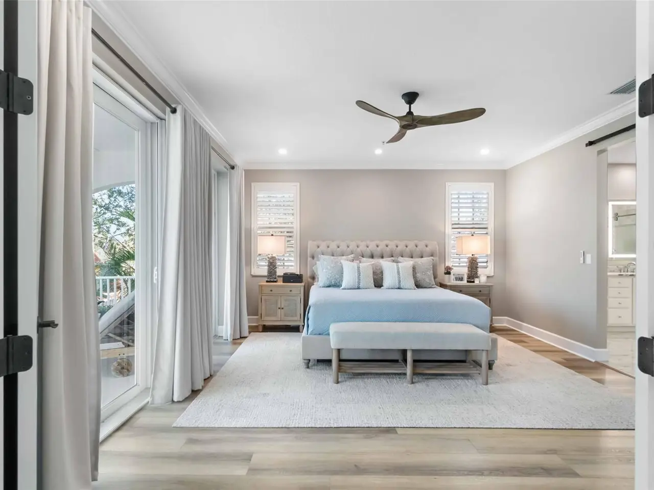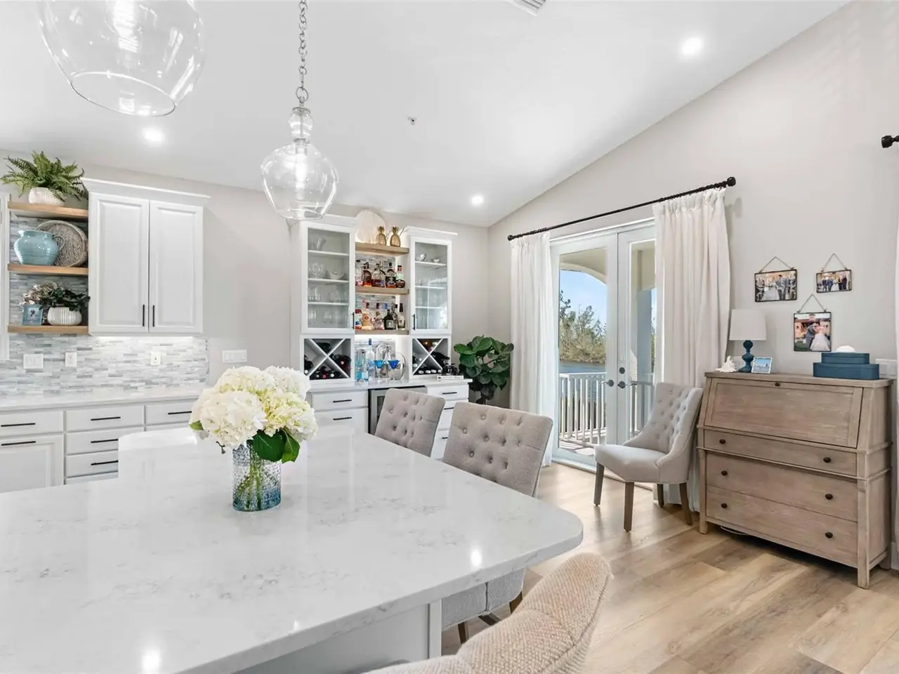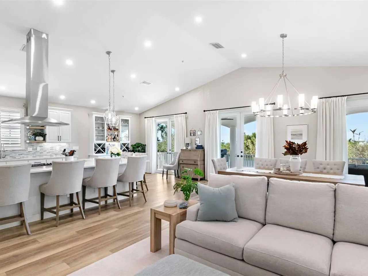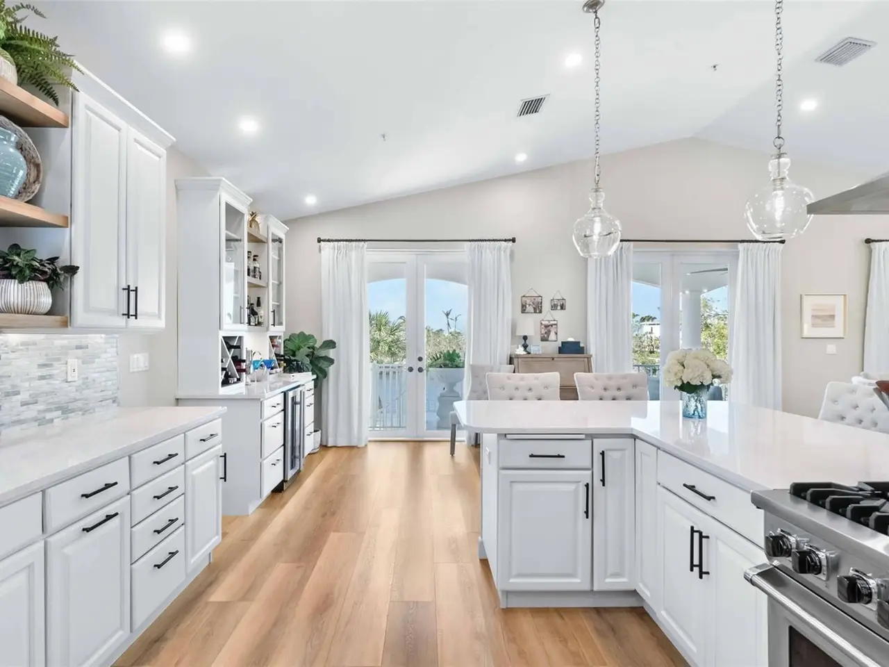 Exceptional waterfront living can be yours at this durable, block construction three-story single-family home set alongside the picturesque Heron Lagoon on Siesta Key. This home is completely move in ready after an extensive, luxury renovation. An attractive, paver drive flanked with lush landscaping offers ample parking while the four-car tandem garage is outfitted for the car enthusiast with a small non-conforming space and access to the backyard pool and spa. The first floor over parking features two en-suite bedrooms with large closets and the smart placement of the laundry closet. Stretching across the entire width of the home with a private office and relaxing, private terrace is the primary en-suite. The perfect place to rest, recharge and pamper with stunning views and a unique primary bath featuring dual vanities, soaking tub, walk-in shower and state of the art design. Ascend to the top floor by stairs or elevator to find an additional bedroom and full bath as well as the open concept living space offering three sets of hurricane rated French doors, allowing loads of natural light and panoramic views of the lagoon. The chef-inspired kitchen is equipped with a Viking stove & Frigidaire refrigerator (2021), custom cabinetry, glimmering quartz counters with an ocean inspired backsplash, and an additional built-in area for your private collection of spirits or prized glass ware. The gas fireplace in the dining area provides warmth and intimacy as you host your family and friends to enjoy your creative cuisine and offer a nightcap on the third-floor terrace overlooking the backyard designed for entertainment. A spiral staircase is your invitation to soak up the warm Florida sunshine in the refreshing pool (new mechanics 2024), challenge your guests to a putting contest on the integrated putting green, float peacefully alongside the mangroves from the kayak or paddleboard launch (new 2022) or drop a fishing line in the lagoon for the fresh catch of the day. On mild evenings, star gaze from the cozy hot tub (new 2024) or share stories of your Siesta Key adventures around the gas fire pit. Take a short stroll and find yourself at Turtle Beach Park, where beach access, grills, pavilions, a playground and much more can be your destination for hosting a gathering or a quiet day on the beach to yourself. With western views and exquisite attention to detail, this exceptional Siesta Key family retreat offers a rare opportunity to own a piece of paradise. A list of additional upgrades and details of renovation dates available upon request