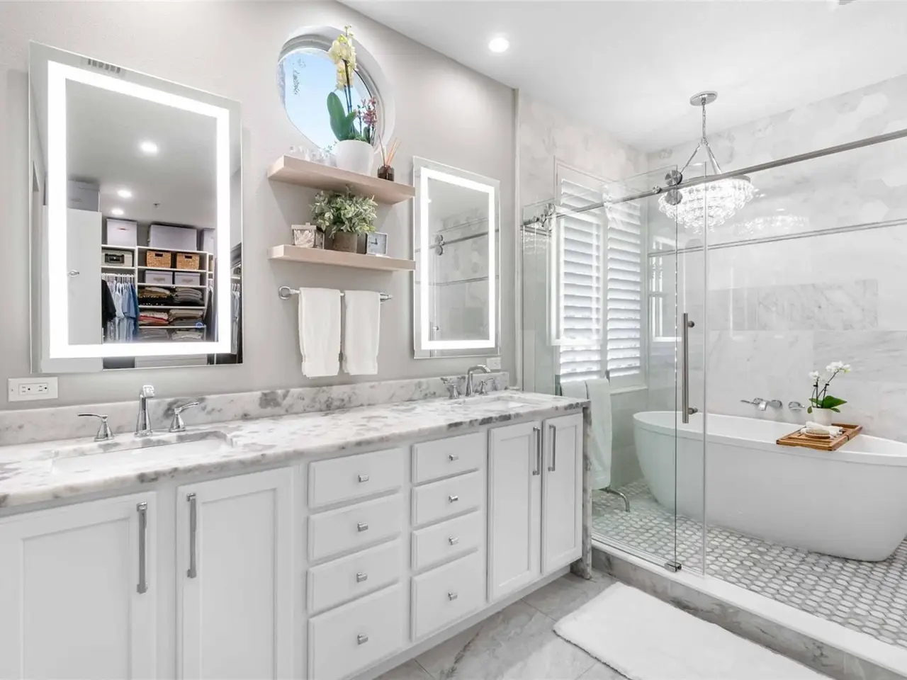 • Chef-inspired kitchen with custom cabinetry and quartz counters