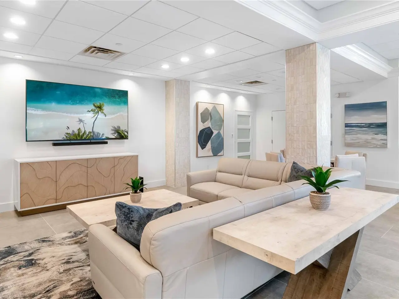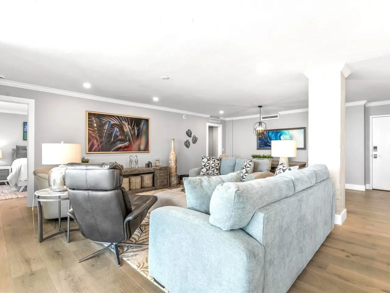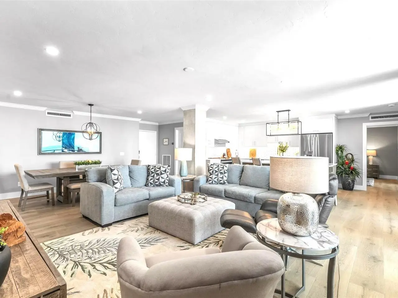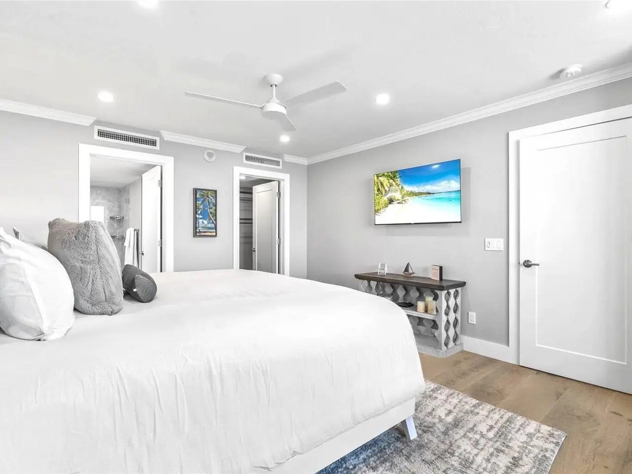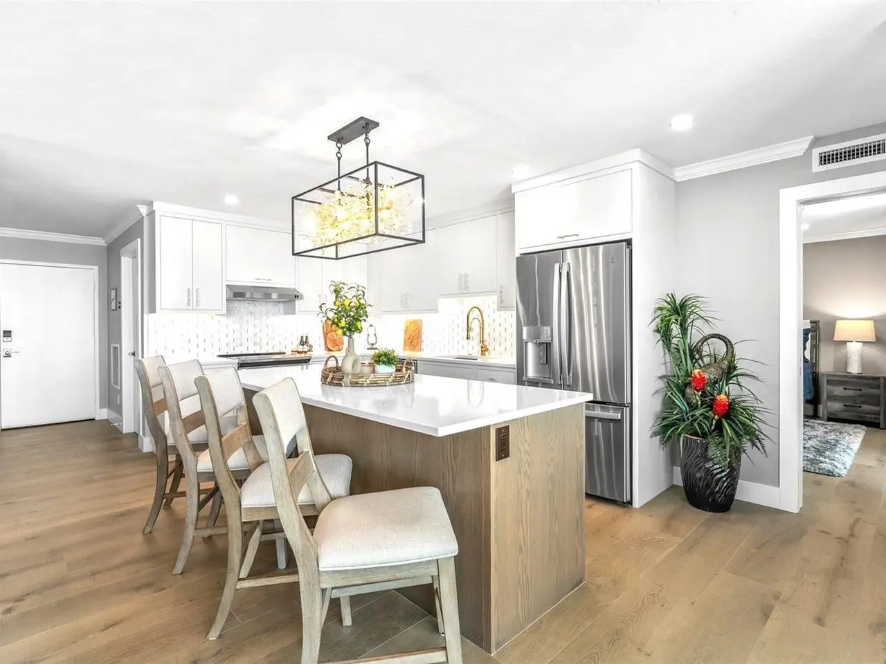 Welcome to Siesta Towers on Siesta Key, where breathtaking Gulf views meet luxurious modern living. Positioned high above on the 9th floor, this stunning 2-bedroom, 2-bath residence showcases sweeping vistas of the Gulf waters, Big Sarasota Pass, and Downtown Sarasota from its expansive private lanai. Completely remodeled with no expense speared, from the studs out in 2024. This 1,440 sq. ft. condo is brand new in every sense of the way. Updates include all new drywall, texture and paint, new plumbing, new electrical, new electrical panel, new hurricane-rated impact windows and sliding glass doors, new air conditioner, and a new hot water heater. Inside new high-end interior finishes, with no expense spared. The chef's inspired kitchen is equipped with custom cabinetry with soft close doors and drawers, beautiful quartz countertops, large island, undermount single bowl kitchen sink, designer tile backsplash, top-of-the-line GE stainless steel appliances, built-in island microwave, and a wine/beverage refrigerator. All new interior doors, closet doors, all new interior millwork to include crown molding, all new lighting and fixtures, new luxury vinyl flooring throughout. Beautifully re-designed bathrooms to include high-end porcelain tile, custom cabinetry with soft close doors and drawers, lighted mirrors, and glass enclosure showers, create a sophisticated yet inviting coastal ambiance. Also, a new in-unit full size washer & dryer with folding table, for ultimate convenience. This beautiful residence comes completely turnkey-furnished with designer-quality furnishings and carefully curated décor, kitchenware, bedding, bathroom linens, and even high-end "Art Frame" TVs making it move-in ready for you to enjoy the Siesta Key lifestyle immediately. Siesta Towers itself has been thoughtfully updated throughout the building and grounds, offering resort-style amenities, including a state-of-the-art club room, fitness center, heated waterfront swimming pool, fishing pier, and a social pier perfect for sunset cocktails. Additional conveniences include storage room for beach equipment, bike storage and a very secure building environment. Whether you're seeking a full-time residence or a perfect beachside retreat, this pristine condo delivers the best of island living. Modern luxury, panoramic views, and resort-style amenities, all just minutes from the world-famous white sands of Siesta Beach. And with Siesta Key Village dining, shopping, and entertainment just a short walk away, this condo truly offers it all.