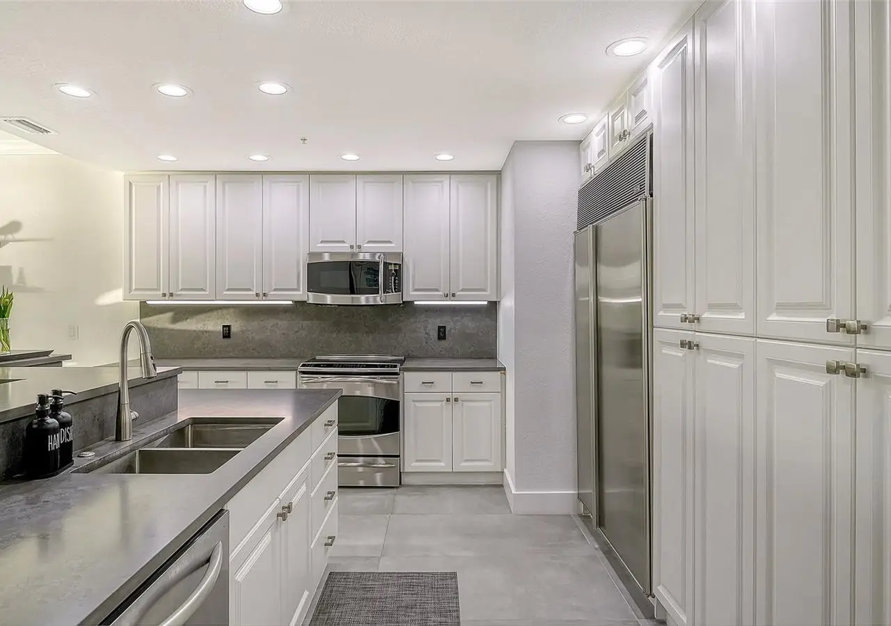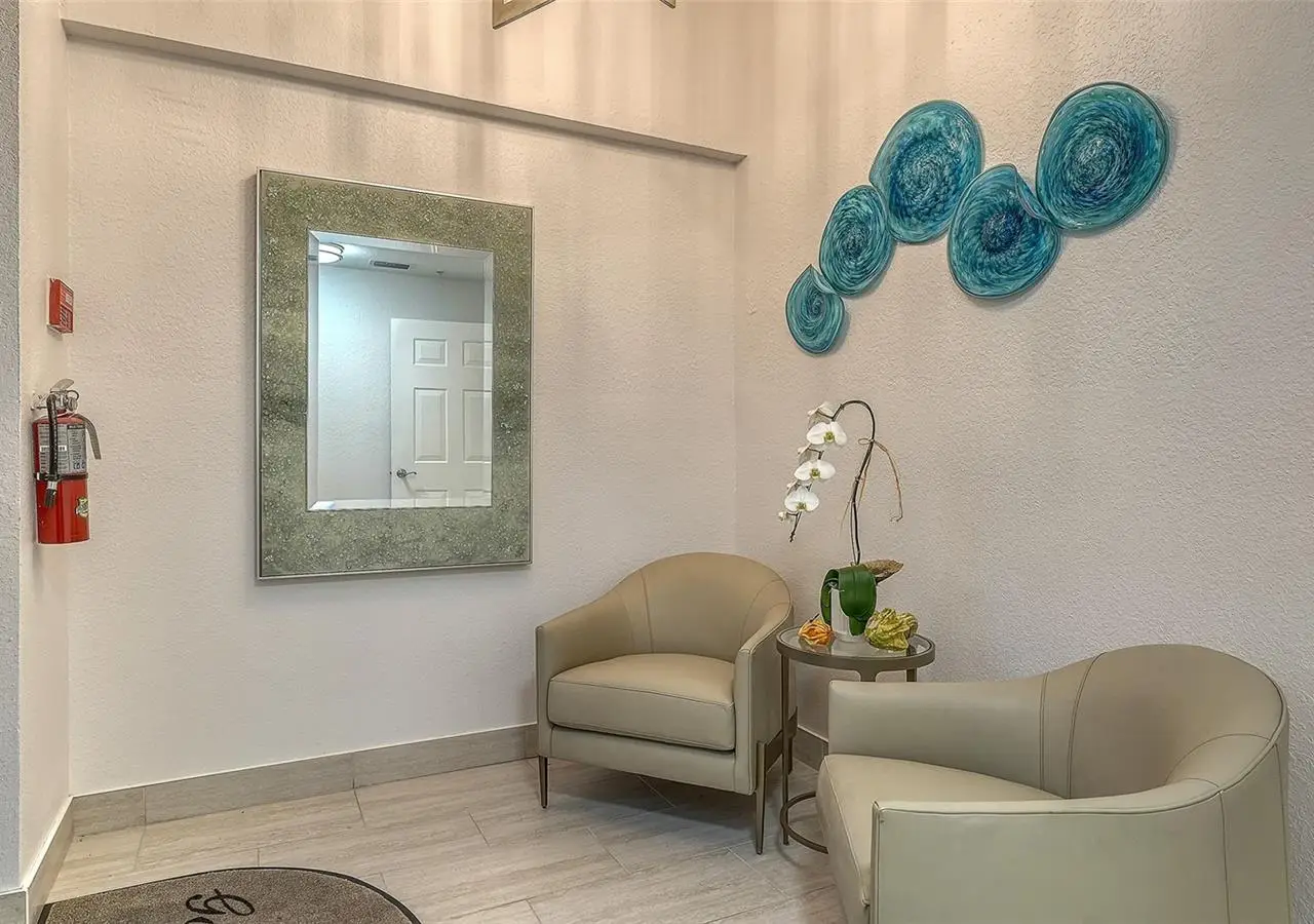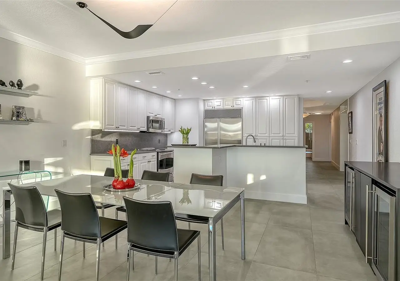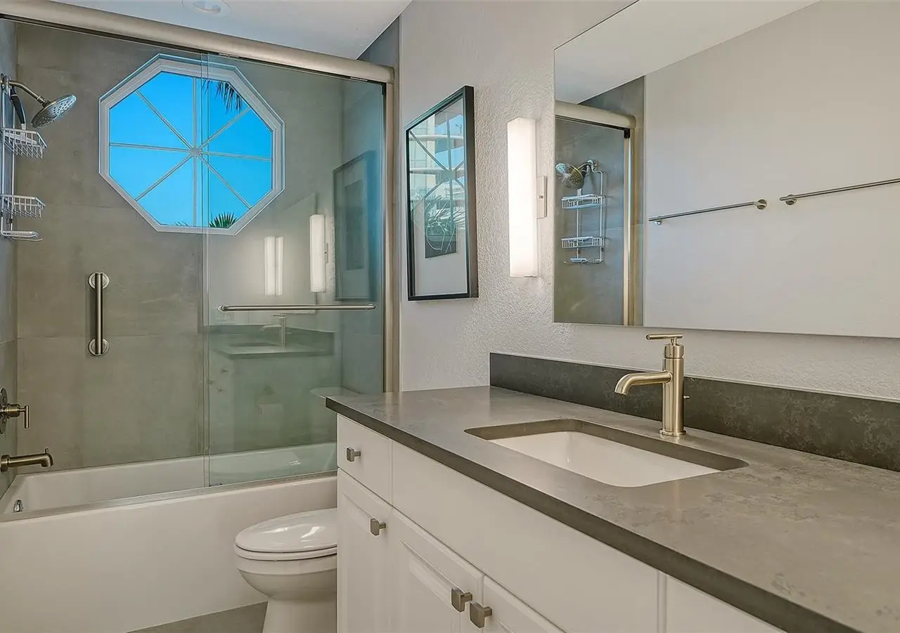 Direct waterfront on Golden Gate Point downtown Sarasota! Golden Bay is a boutique condominium building of only 10 units. You will enjoy the intimacy and peaceful setting of this remodeled residence overlooking Sarasota Bay and Ringling Bridge. An elevator will bring you directly to your private foyer. The sunsets are spectacular! This second-floor corner unit features high ceilings, 3 bedrooms, an office/4th brm, 3 full baths and benefits of two large terraces (27' x 9'). The West sunsets terrace is accessible from the living room and the primary bedroom, and the East sunrises terrace is accessible from the two guest bedrooms. The current owners replaced all the windows and patio doors, updated the entire unit with a 4x2 grey porcelain tiles, redid all 3 bathrooms, and installed custom blinds on all windows. The gourmet kitchen is equipped with stainless-steel appliances including a Sub Zero refrigerator, white cabinetry with lots of storage, beautiful new quartz countertops, and two wine refrigerators. The spacious primary suite, with access to the terrace that overlooks the bay, provides two walk-in closets, an elegant bathroom with two sinks, a walk-in shower, and a comfortable sitting area (plumbing in place for a tub if desired). Both guest bedrooms are en-suite.The large office has a slider door that opens to a Romeo & Juliette balcony, has a double closet and can be used as a 4th bedroom. Well thought laundry room with cabinetry, a sink, and stackable washer/dryer will facilitate your task. There is an additional stairway directly from your unit that goes to your private sizeable 2 car garage 19’ x 25’ and the pool deck where you can grill and enjoy the heated pool and day dock. On the desired Golden Gate Point, this location is a short walk to restaurants, theatres, shops, and minutes to famous St. Armands Circle and sandy Lido Beach.