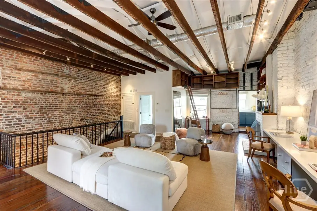 The very definition of Savannah’s Modern Lifestyle! Built c.1835 for Eliza Ann Jewett, Savannah's premier Real Estate investor of her time, this storied & unique property exudes understated sophistication. Located on arguably the finest block of the Landmark District, the home has been thoughtfully updated & re-imagined over the years. Original detailing throughout - Hardwoods, exposed Rafters & Brickwork, Mantels, etc. Excellent flow and light Semi-formal Front Parlor, open Concept Kitchen & Dining Area w/ Sunroom & Porch adjacent. Sweeping Master Suite w/ Sitting Area & a 4th floor conversion to a stunning open Loft w/ Sleeping and Lounging Areas (ensuite of course) and private deck. The Garden Lvl Unit is frequently used as Guest Quarters or for Rental Income. An enchanting 2 story Carriage Hse completes the property. Both Grdn Lvl and Carriage Hse have separate exterior property access with Multiple use options. A UNIQUE AND RARE OFFERING FOR TODAY'S LIFESTYLE!