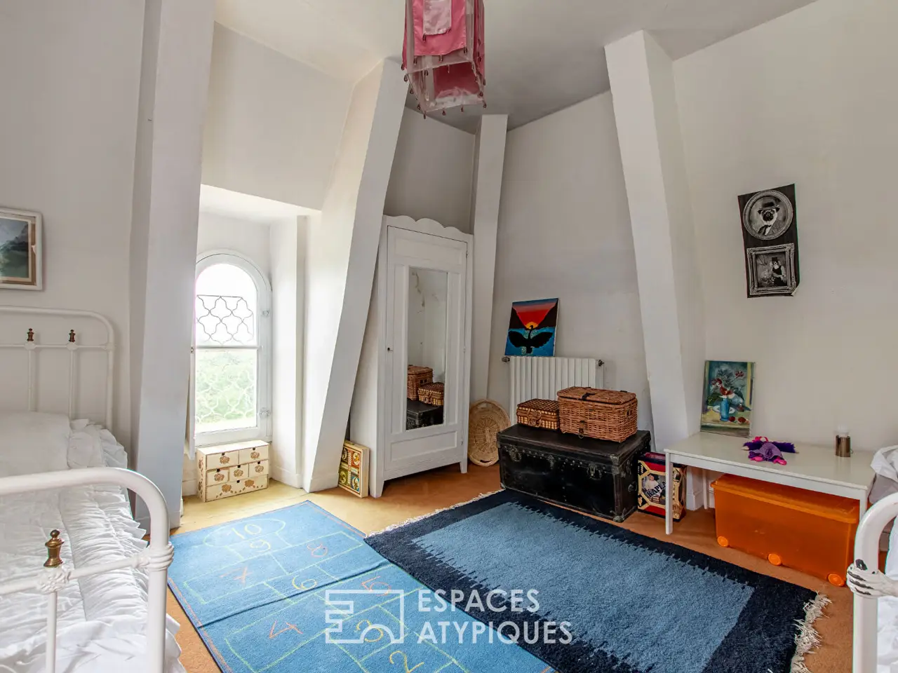 Located on the outskirts of the picturesque little town of Savennieres, this splendid late 19th century property covers an area of nearly 3,400 m2, a true gem not far from the bucolic Coteaux de Savennieres.The building is spread over 3 and has a living area of nearly 360 m2. The property's southern section offers a pleasant view of the wooded park created in a Mediterranean spirit, at the heart of which emerges an outdoor swimming pool with its south-facing peripheral beaches. This exceptional property remains rare in the area. The main facade is delicately designed with an unusual rhythm of volumes combining tufa stones and traditional bricks. The building offers an interior setting with generous volumes with very high ceilings.The interior, on the ground floor, accommodates a reception hall to the north, a dining room, two lounges to the south and a large reception area on the west side. The whole is particularly bright and the room connects to each other from large interior openings that put them in relation. A bedroom with shower integrates this ground floor A comfortable kitchen completes the whole, in relation to a scullery as well as a linen room. The wide stairwell which distributes the two upper levels also accommodates toilets on the ground floor. The first floor has 4 bedrooms including one with private bathroom and also a separate shower room and toilet. The last level accommodates 3 other bedrooms, a bathroom and a storage room.The whole is built on a large cellar, which integrates the boiler room Three garages in annex complete the offer Located just 5 minutes walk from the heart of the village and its Sunday market, the property is also close to the TER station which connects Angers-Saint-Laud in just 9 minutes. By road, Angers is only 22 minutes from the property and a stone's throw from the banks of the Loire and its famous cycle path 'the Loire by bike'. ENERGYREF. ARD4417Additional information* 14 rooms* 6 bedrooms* 1 bathroom* 3 shower rooms* Floor : 3* 3 floors in the building* Property tax : 3 861 €Energy Performance CertificatePrimary energy consumptiond : 243 kWh/m2.yearHigh performance housing*A*B*C*243kWh/m2.yearD*E*F*GExtremely poor housing performanceEstimated average annual energy costs for standard use, indexed to specific years 2021, 2022, 2023 : between 6360 € and 8650 € Subscription IncludedAgency feesThe fees include VAT and are payable by the vendorMediatorMediation Franchise-Consommateurswww.mediation-franchise.com29 Boulevard de Courcelles 75008 ParisInformation on the risks to which this property is exposed is available on the Geohazards website : www.georisques.gouv.fr