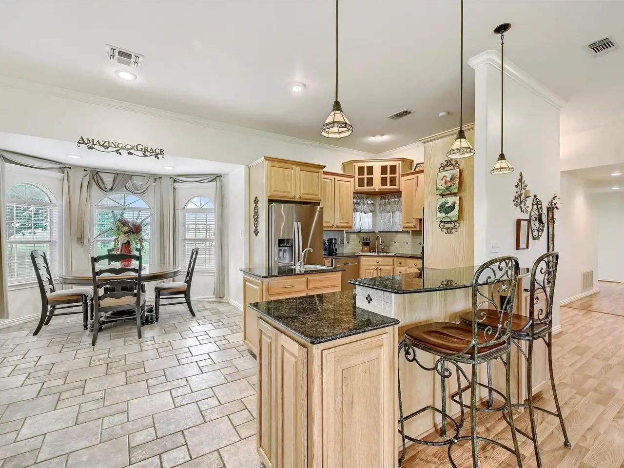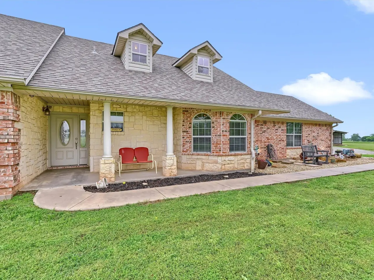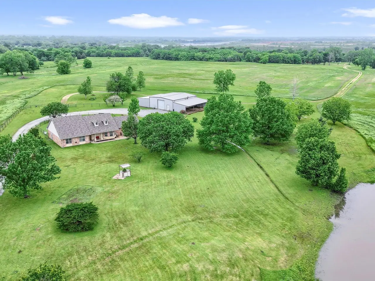 This AG exempt property combines a meticulously maintained home with equally cared for acreage. The open floor plan offers a spacious kitchen with island, breakfast bar, walk-in pantry, and a cozy brick fireplace. The primary suite features a soaking tub, separate shower, and abundant natural light. Outside, enjoy a covered porch, fenced in backyard, workshop with electricity and well water, plus a catfish pond, and beautiful mature pecan, fig, and date trees. With rural and well water, AG exemption, and numerous hobby opportunities, this property delivers country charm, functional space, peace and just about 20 minutes from Sherman Town Center.