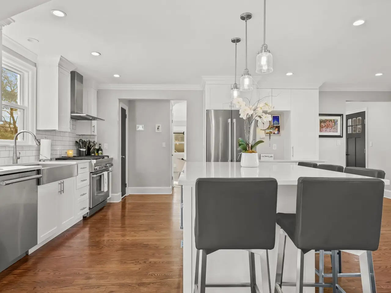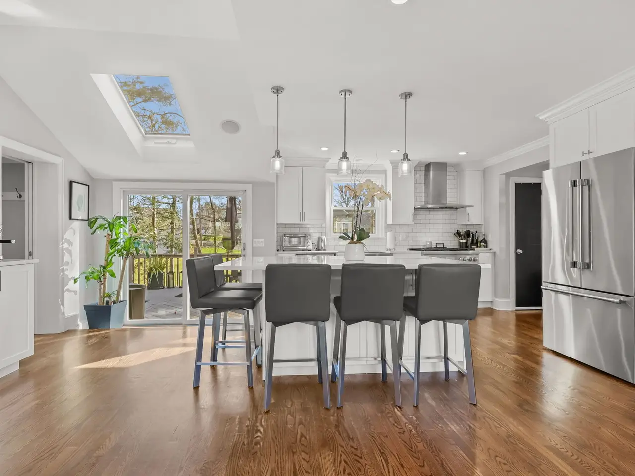 Sunny renovated stone front Colonial home offers modern amenities and classic details for today's discerning buyer. The thoughtfully designed layout maximizes natural light, enhancing the warm and inviting atmosphere. Recent updates include a new roof, new siding, new windows, new HVAC system, and new hot water heater, ensuring comfort and efficiency in all seasons. The newly renovated Chef's Kitchen features a sprawling open layout with a large center island, quartz countertops, new cabinetry with plenty of storage, high-end stainless steel appliances and easy access right from the garage. The bright and airy design flows seamlessly from indoors to the expansive deck off the kitchen, ideal for grilling and gatherings with friends and family. A level yard framed by a picturesque stone wall and brook offers a peaceful retreat for relaxation and play. Conveniently located, this property offers easy access to top-rated schools, the commuter bus to Scarsdale Train Station, restaurants and shopping. Eligible to join Lake Isle Country Club. A truly exceptional home!