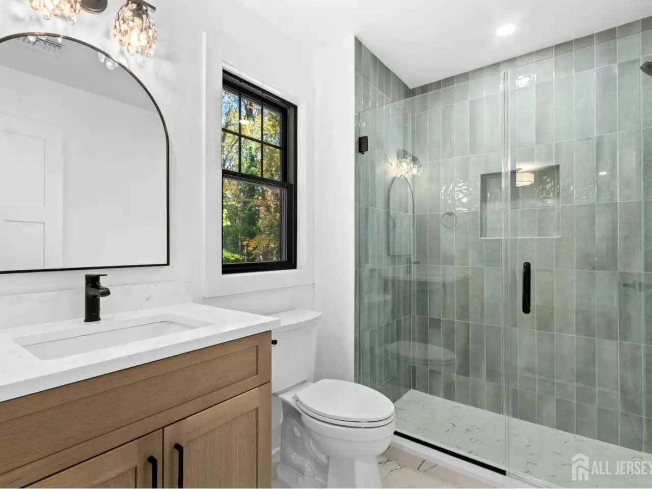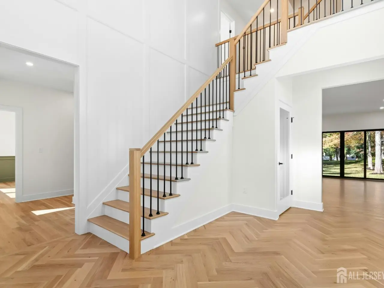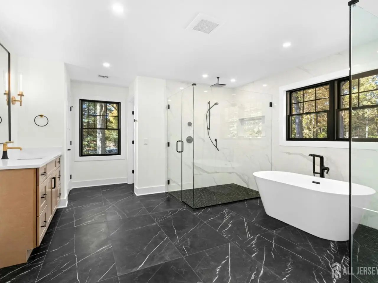 Welcome to a residence that redefines custom living. This brand-new 7,500+ square foot estate set on a level .95 acre lot is not just a house...it's a statement of vision, timeless design, and craftsmanship. Perfectly situated in one of Scotch Plains' most desirable neighborhoods, this home seamlessly blends modern sophistication with classic architectural elegance. Step inside through the grand double doors into a soaring two-story foyer filled with natural light and extraordinary attention to detail. The main level features an open-concept layout centered around a state-of-the-art chef's kitchen with Thermador appliances, quartz countertops and custom cabinetry. An adjoining prep kitchen is ideal for entertaining, storage, and simply keeping the main kitchen pristine. The en suite bedroom on this main level provides flexibility for guests, an au pair, or multigenerational living. Upstairs, the luxurious primary suite includes a spa-like bath with heated floors, and two individual walk-in showers...a rare indulgence. Two bedrooms are connected by a Jack and Jill bath while the remaining bedroom enjoys a private bath. The finished attic with full bath provides options for a second office, gym, quiet retreat. You will find a sprawling entertainment area in the basement anchored by a custom bar, a full bath, and a bedroom with an oversized egress window. Enjoy an ideal canvas for refined outdoor living and prepare to design the ultimate outdoor entertaining space. With the paver patio, full irrigation system, and fresh sod, the foundation for your dream outdoor oasis awaits. The interior details are both refined and enduring: 4 white oak flooring, white oak wood beam ceilings, extensive custom millwork, Andersen 400 Series black windows, hand-selected designer lighting, Sonos sound system, Nest thermostats, Kohler fixtures, and unique exquisite tile selections.This home provides for a wonderfully elevated lifestyle - a truly extraordinary opportunity in Scotch Plains.