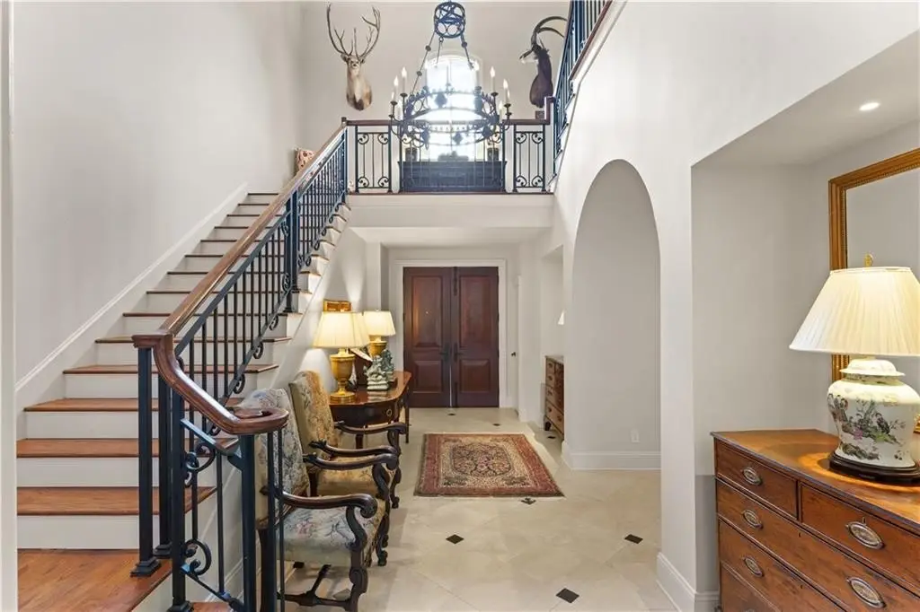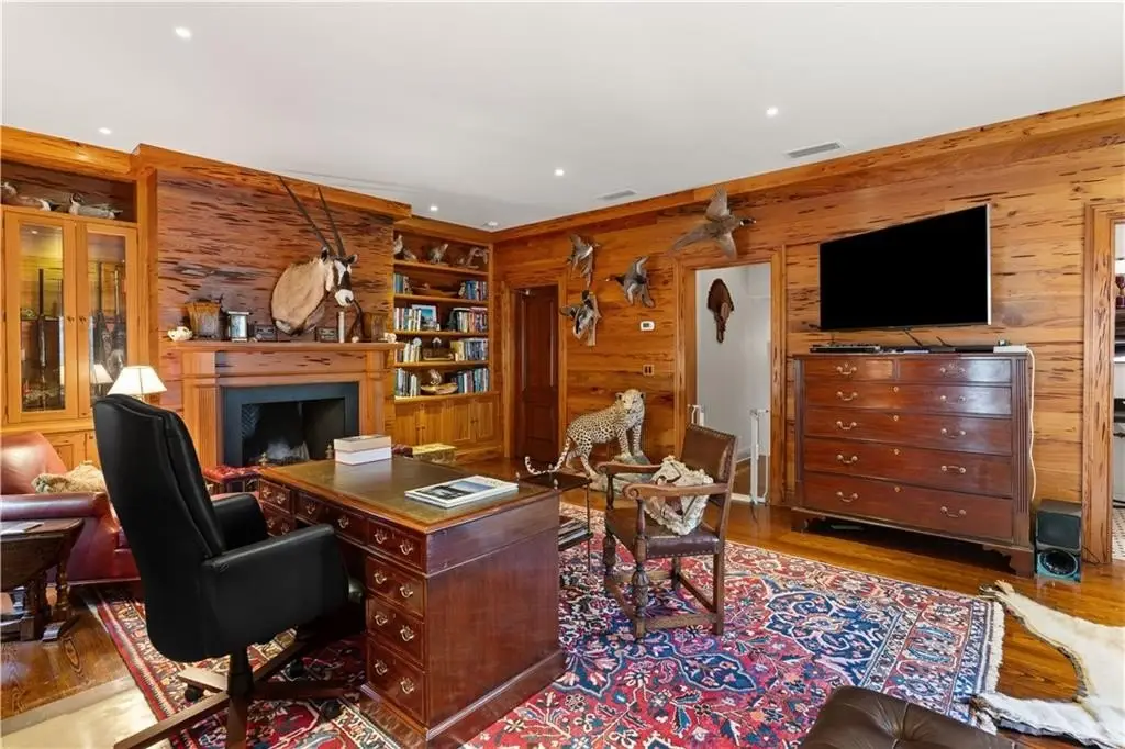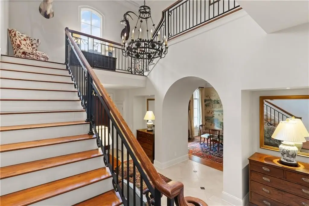 Luxurious Ocean Forest living awaits at 541 Forest Road. This stunning lakeside cottage, with Mizner influences throughout, is made for living and entertaining. The first level plan is highlighted by the two story foyer, which opens to the living room, family room and kitchen. All have lake views, and the kitchen features a center island with sink, Wolf and Sub Zero appliances and loads of custom cabinetry. Behind this space is an oversized laundry and party prep area, with a full size Viking fridge and Sub Zero wine fridge, plus an additional work sink and lots of extra storage. The family room has beamed ceilings and a cozy fireplace, one of three in the home, and has lake views. The dining room is formal and lined with built-ins. The primary bedroom, also with lake views, features a sitting area, an oversized bath with double sinks, shower and soaking tub and possibly the largest closet of any Sea Island cottage. Complete with packing table, built-ins and tall windows for light, this is more a repository than a closet. Upstairs via the beautiful wrought iron staircase, the second level offers another family room with views and four bedrooms – two that share a jack and jill bath and two with full en suite baths. Above the two car garage with storage is an additional suite. Currently serving as an office, this room features pecky cypress accents, the third fireplace and another full bath. Other notable features of the cottage include concrete block construction with stucco coating, clay barrel tile roofing, lakeside patios on both levels, outdoor cooking area and a whole house generator. This is the best of Ocean Forest living in a home that was made for living – come see for yourself at 541 Forest Road.