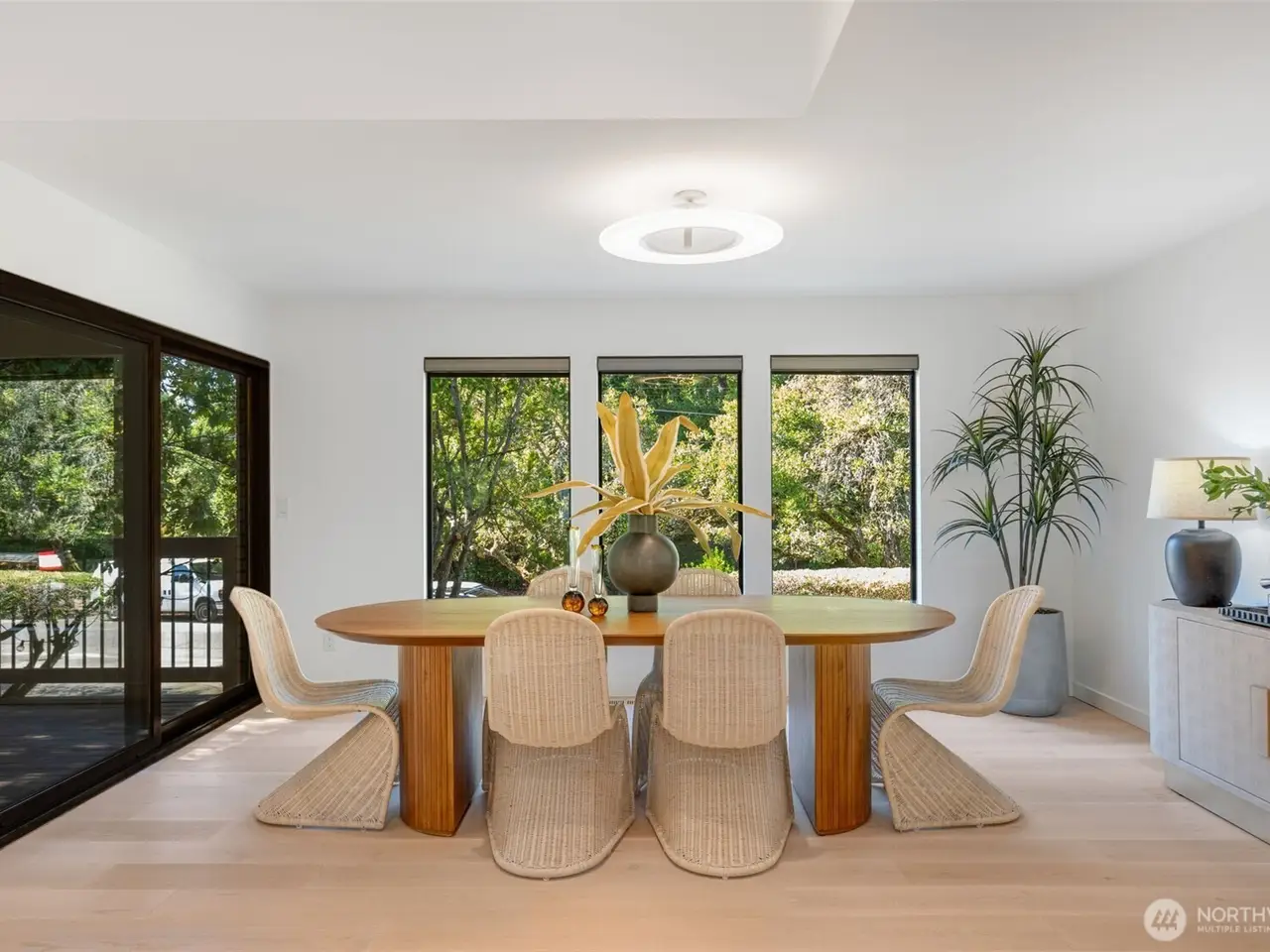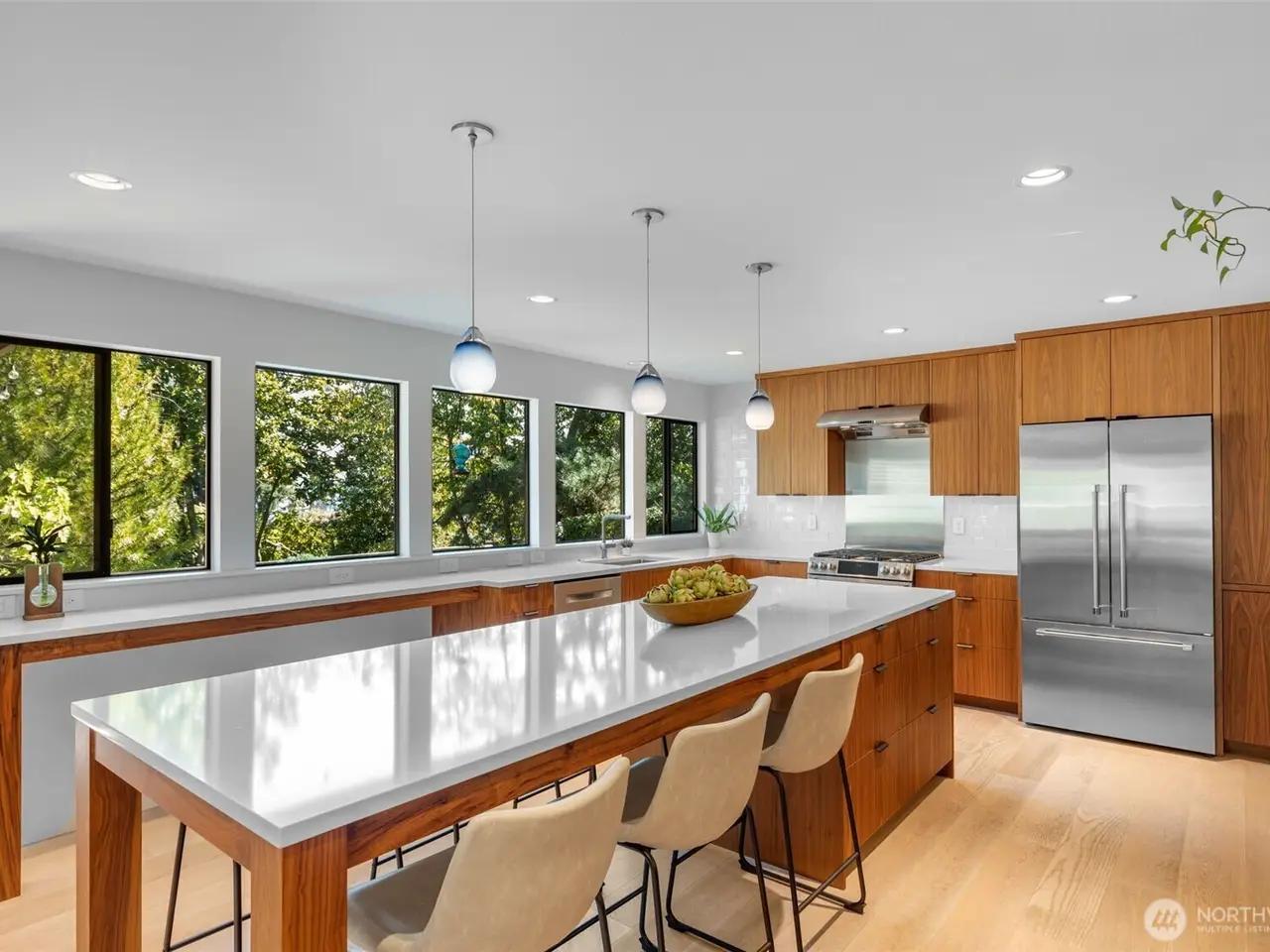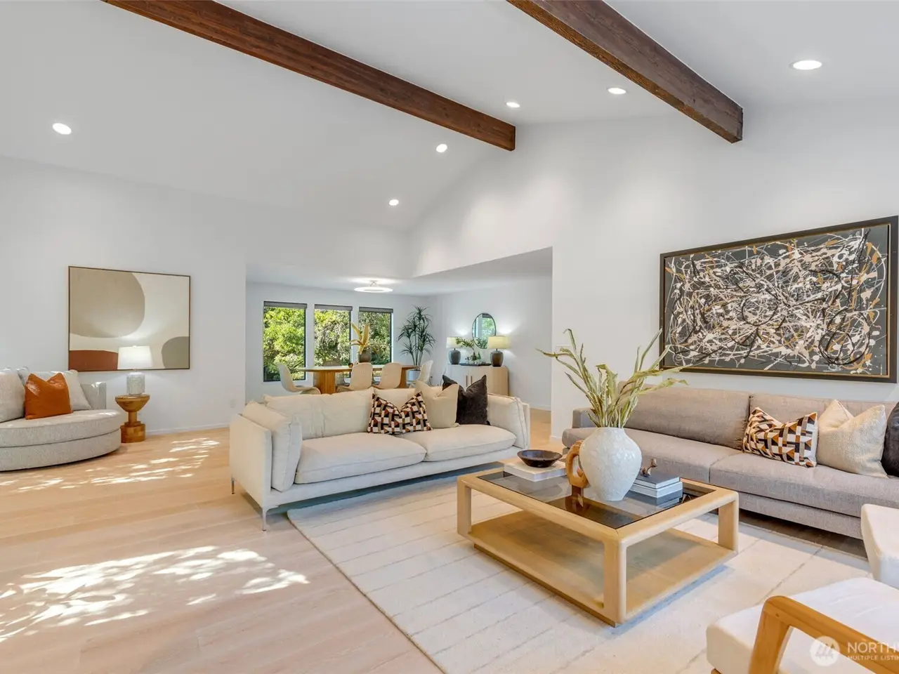 You can have it ALL in this carefully reconstructed Mid Century Marvel with PNW vibes. Its discreet exterior opens to reveal impressive vaulted ceilings, peaceful filtered lake views & all of today's wants, like open chef's kitchen, home gym, 2 car garage & AC. Totally overhauled from roof to sewer, from plumbing + electrical + HVAC systems to all interior surfaces, there's nothing left for you to do! Existing rooms were reconfigured into 4 gracious ensuites w/large attached sitting rooms/offices, a very desirable main floor multi-generational living option. Relax in the private & versatile backyard w/built-in BBQ grill, upper deck, lower patio & level grassy area w/fruit trees + garden space. Eligible for Windermere Beach Club & Security.