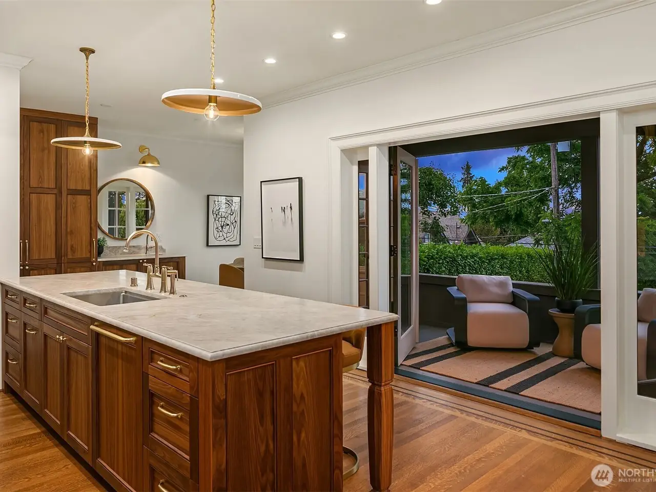 Historic North Capitol Hill residence seamlessly balances timeless charm with modern luxury. Thorough renovation showcases exquisite craftsmanship and careful attention to preserving home’s character. Sun-drenched interior spaces highlighted by views of Lake Washington and Cascades. Expansive living/formal dining area provides the stage for effortless entertaining. Culinary enthusiasts will enjoy open chef's kitchen with premier appliances and finishes. True sanctuary offered by spacious primary bedroom suite including soaking tub. Finished lower level is bright with large media room and guest bedroom suite. Covered patios overlook backyard with high hedges for privacy. Near parks and amenities of North Capitol Hill.