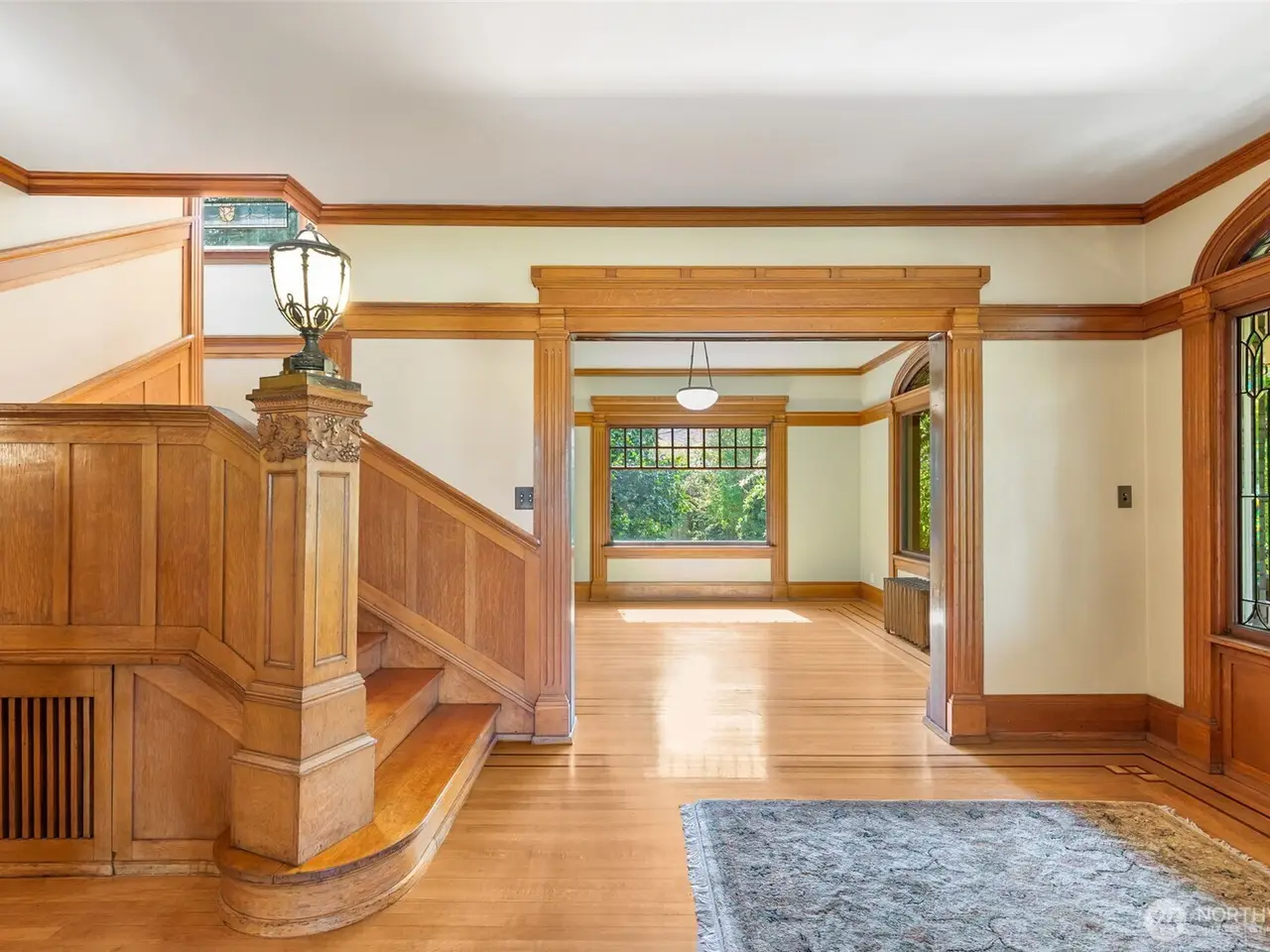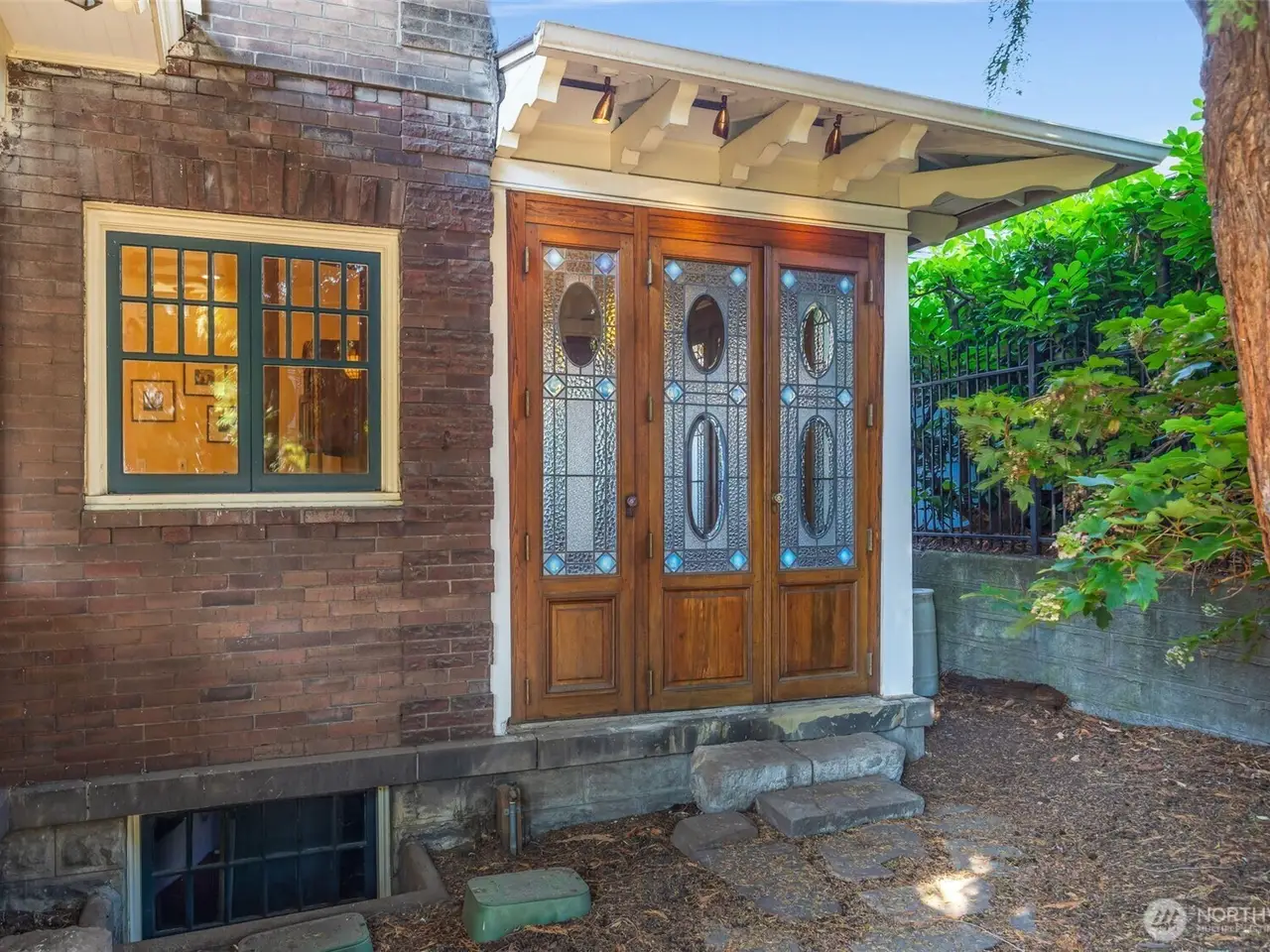 Magical secret gardens surround this historically preserved North Capitol Hill estate. With a 10,000 sq lot of lush plantings, fruit trees and established grass, it's amazing to peek outside the gates and be mere blocks from Seattle's favorite city neighborhood. Built in 1912 as the JW Bullock residence and lovingly maintained since, this special house glows with history and love. Main floor features excellent details; light wood moulding, gorgeous stained glass pocket doors and original lighting. Lower level is established 2 bed ADU. Upper level has incredible outdoor deck, 3 generous bedrooms including a primary suite with sitting room and 1/2 bath. Top floor with 3 more rooms. 2 car detached garage +2 EV Chargers in wide driveway.