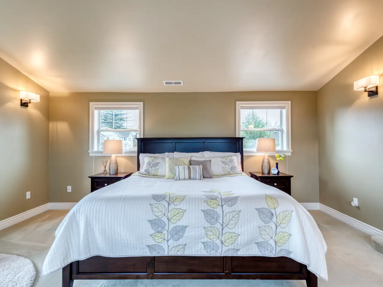 Dramatic primary suite with five-piece bath