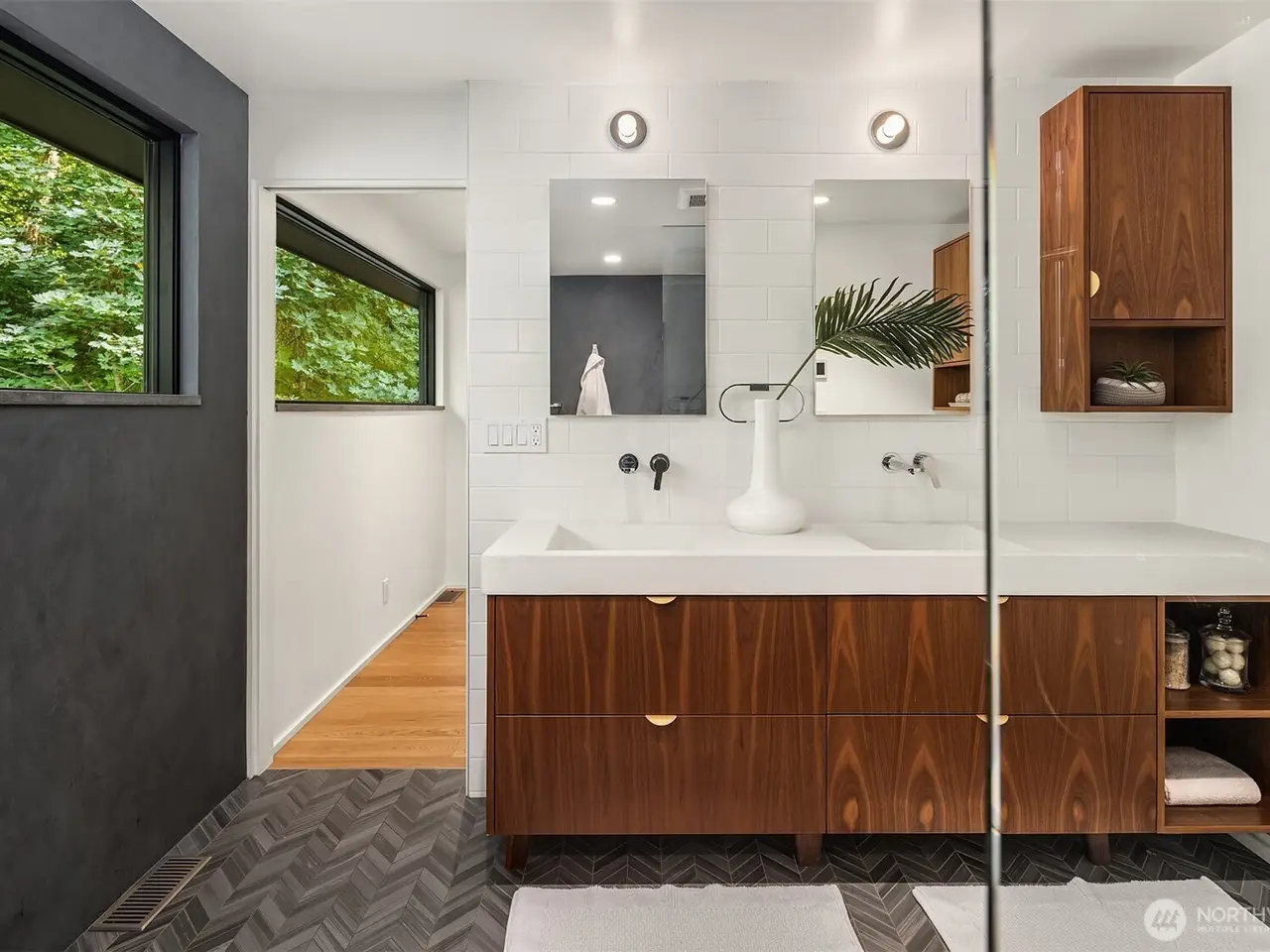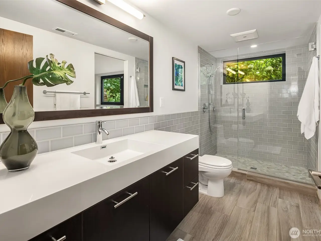 Nestled along a lush greenbelt between Magnolia Blvd and Perkins Lane, this Palm Springs-inspired midcentury modern has been reimagined with a studs out remodel in 2019. Inside, every detail is thoughtfully designed—from custom cabinetry with hidden coffee station and integrated charging ports to a dramatic wall of floor-to-ceiling windows that seamlessly connect interior living spaces to lush outdoor gardens with year-round blooming interest. Outside, bird enthusiasts will enjoy visits from the eagles, owls and Cooper hawks before retreating into the spa-like primary suite and sounds of the babbling brook just outside. BLISS! Just down the street, enjoy Elliott Bay beach walks and waterfront exploration. Come visit this magical setting.