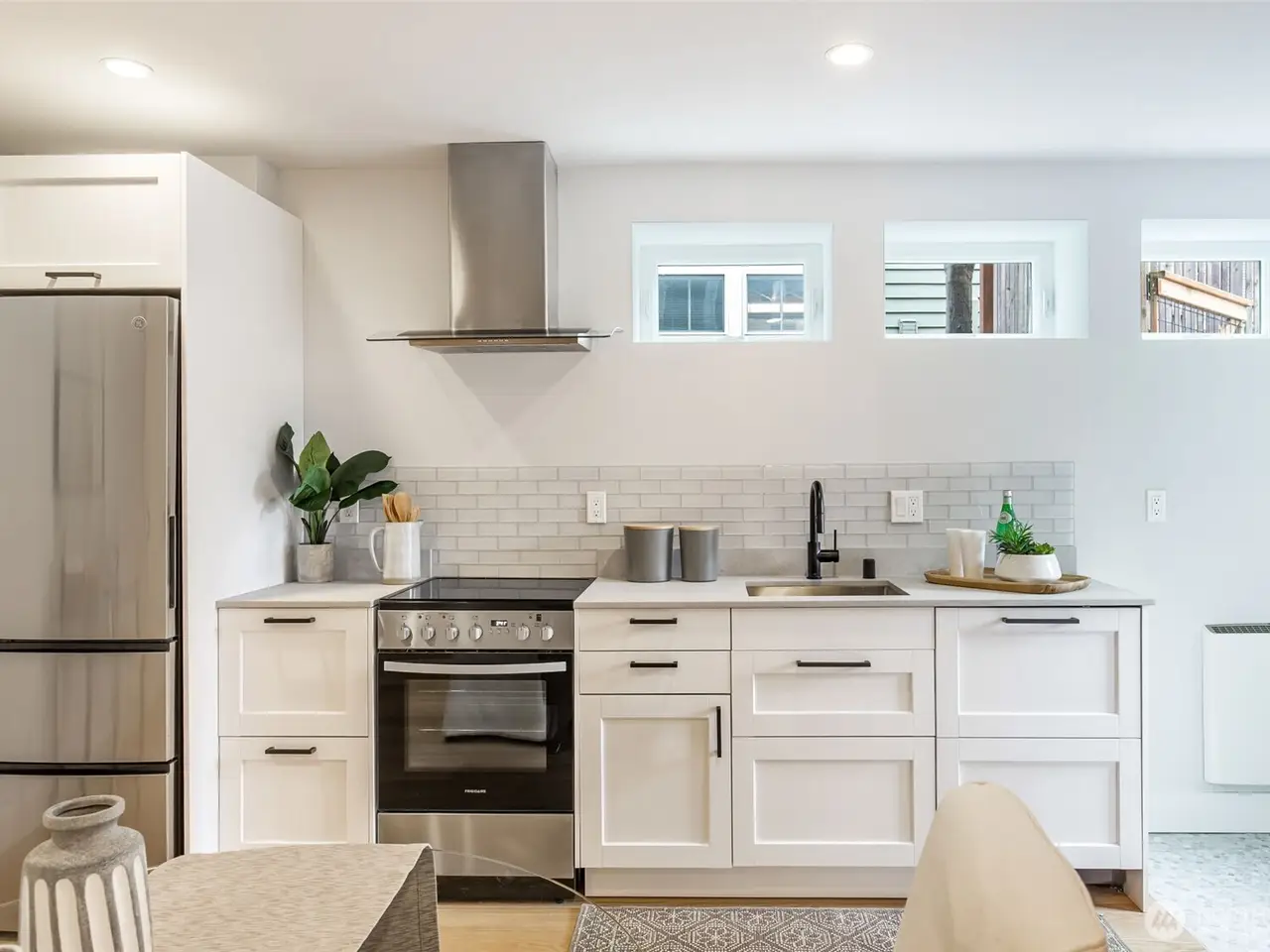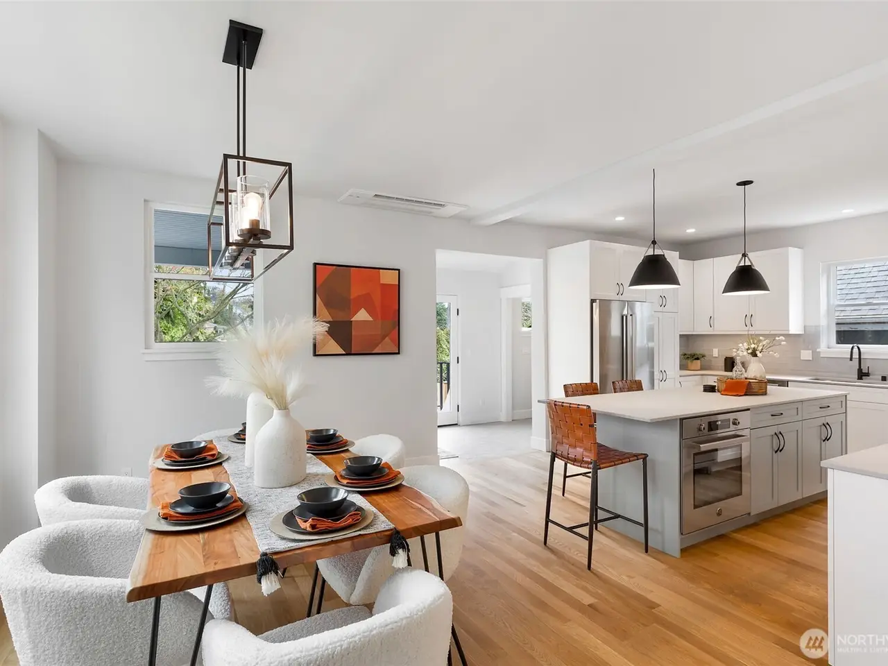 Serenity. A re-imagined 4-level classic QA home. A custom build showcasing expertise in sustainable construction & design: modern & clean w/architectural integrity & soul. Natural light graces white oak floors, designer tile & cabinetry. Chef's kitchen: Bertazzoni appliances & a grand island. 4 beds + flex room + 2 more for spreading out. 3 bedrooms (relaxing primary suite) upstairs. Next level: vaulted space for WFH/media/play/gym, etc. Garden suite: 4th bed, 2nd kitchen + den; use for life or income. Fenced yard (4,800sf street-to-alley lot) w/grass & patio. Enjoy 3 car off-street parking or build permitted garage/DADU! Moments to Rodgers Park & Queen Anne Ave: restaurants, shops & calm hometown vibes. Car charger + Solar being installed.
