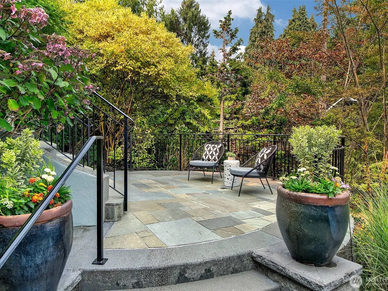 Stately, well maintained 1920s Colonial combines captivating views with ease of access! Take the stairs from Crescent or better yet, park in the two-car garage in the private alley and find just a few steps lead to a sunny backyard, patio and directly into the kitchen with eating nook and timeless finishes. Upstairs, three bedrooms and two bathrooms including a primary suite with balcony to showcase storybook PNW lake, mountain and territorial vistas. The comfortable lower level hosts a large family room, guest suite, storage, laundry and utilities. There is additional storage in the attic for all of your keepsakes. Interlaken Park is at your doorstep, and Volunteer Park 4 blocks west this is where the city and nature harmoniously unite.
