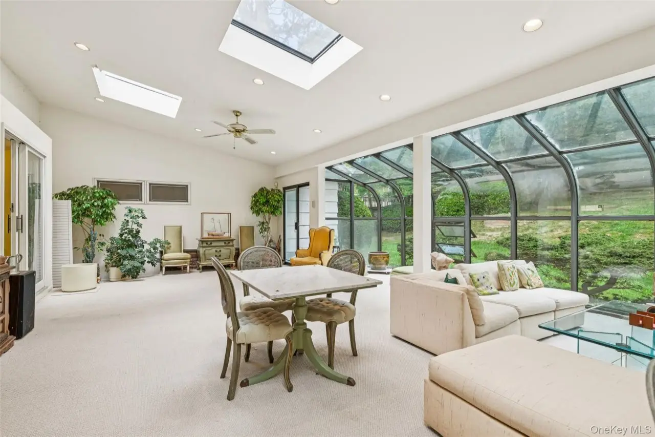 Located in the highly sought-after Country Estates at East Hills, this expanded ranch offers an exceptional opportunity to craft the home of your dreams. With spacious interiors, a versatile layout, and a picturesque setting, this residence is ready to be reimagined. The sun-filled living room, highlighted by a striking picture window, creates a warm and inviting atmosphere. A formal dining room sets the stage for memorable gatherings, while the eat-in kitchen provides plenty of room for casual meals and everyday living. The oversized sunroom is a true standout-flooded with natural light and offering panoramic views, it seamlessly connects the indoors with the outdoors for year-round enjoyment. The primary suite serves as a private retreat with its own ensuite bath, complemented by three additional generously sized bedrooms. Among them is an impressive guest suite featuring a bedroom, sitting room, and office-perfect for extended stays or flexible living arrangements. The finished basement expands the home's possibilities, ideal for a media room, game space, or lounge. Outdoors, nearly three-quarters of an acre of private grounds provide a serene backdrop for entertaining, play, or quiet relaxation. Set within the award-winning Roslyn School District and the vibrant East Hills community, this home represents a rare opportunity to create a custom sanctuary in one of Long Island's most desirable neighborhoods. The potential is endless-bring your vision and make it your own.